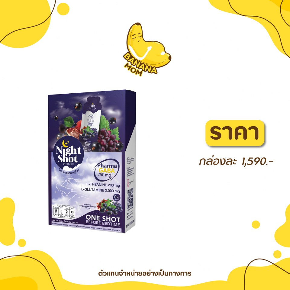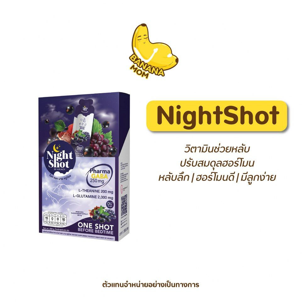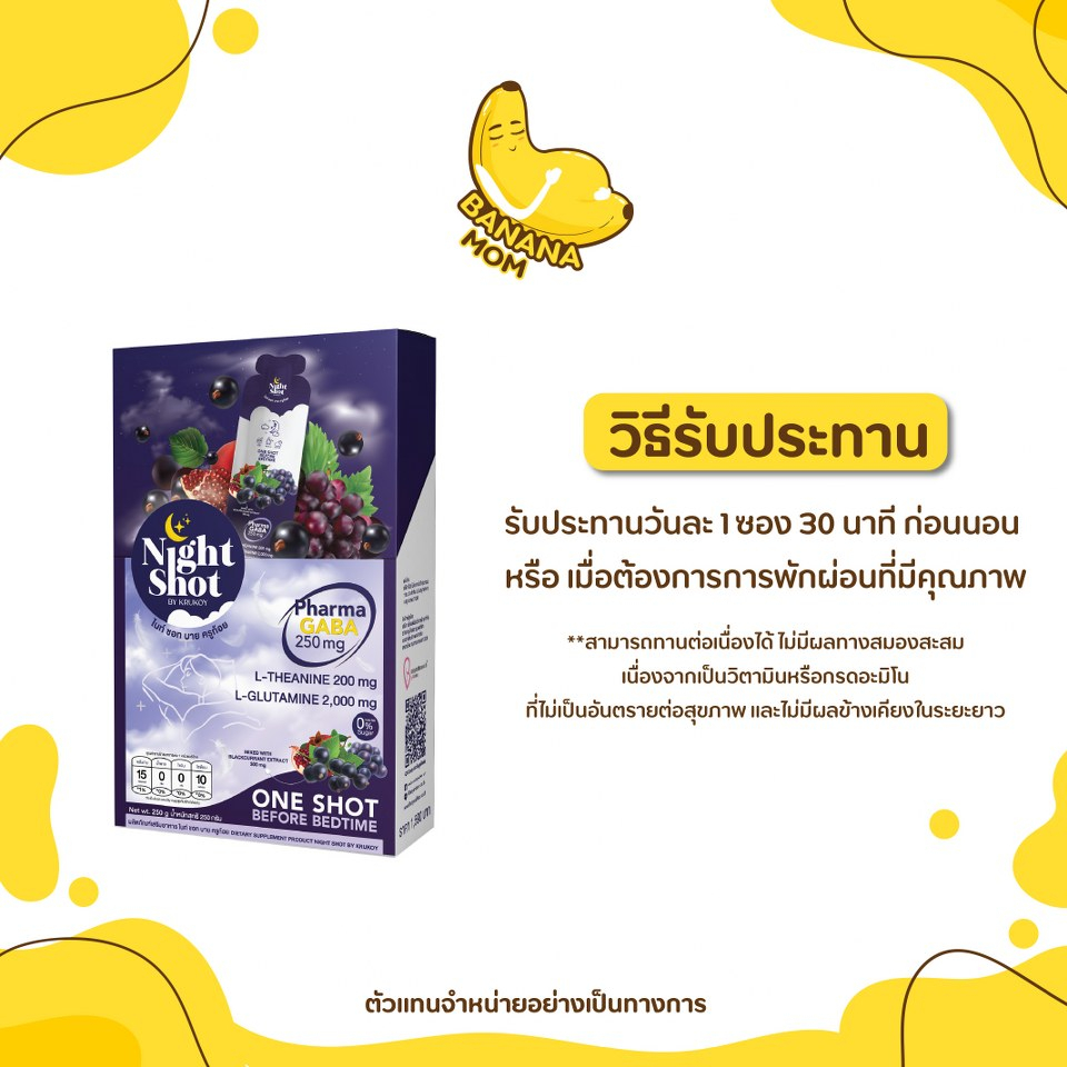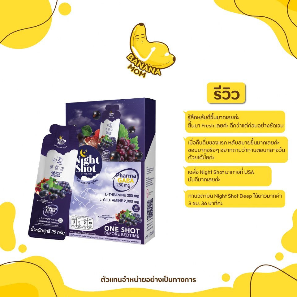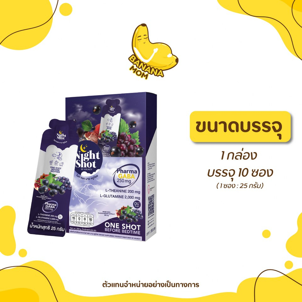 ?Bananamom | Night Shot | 1 กล่อง 10 ซอง | อาหารเสริม นอนหลับ หลับดี ผ่อนคลาย บานาน่ามัม ครูก้อย