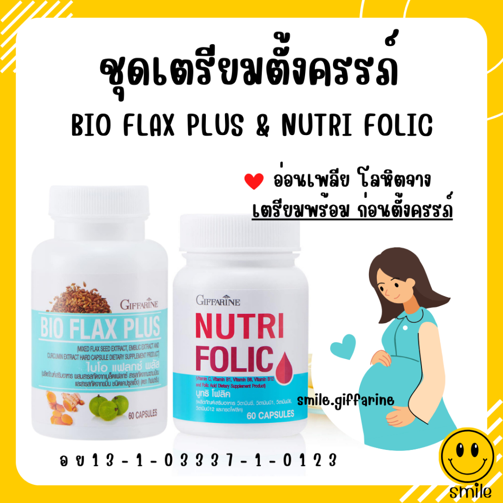 [ส่งฟรี] โฟลิค เตรียมตั้งครรภ์ ปรับฮอร์โมน มีบุตรยาก โฟลิก บำรุงเลือด เลือดจาง กิฟฟารีน NUTRI FOLIC / BIO FLAX PLUS