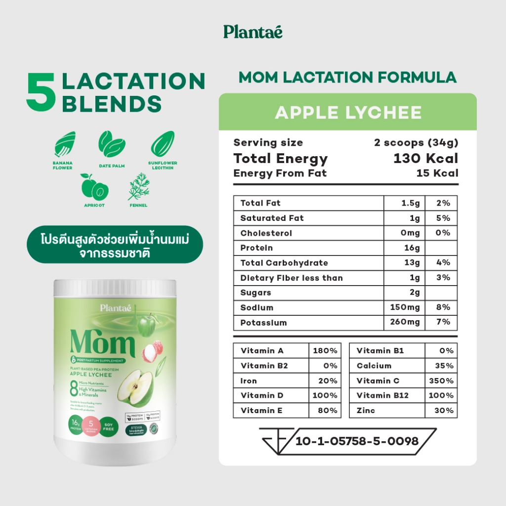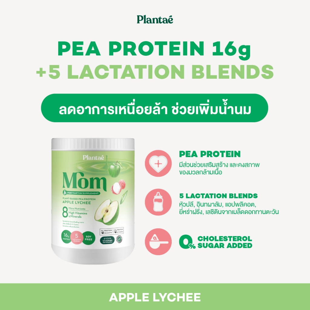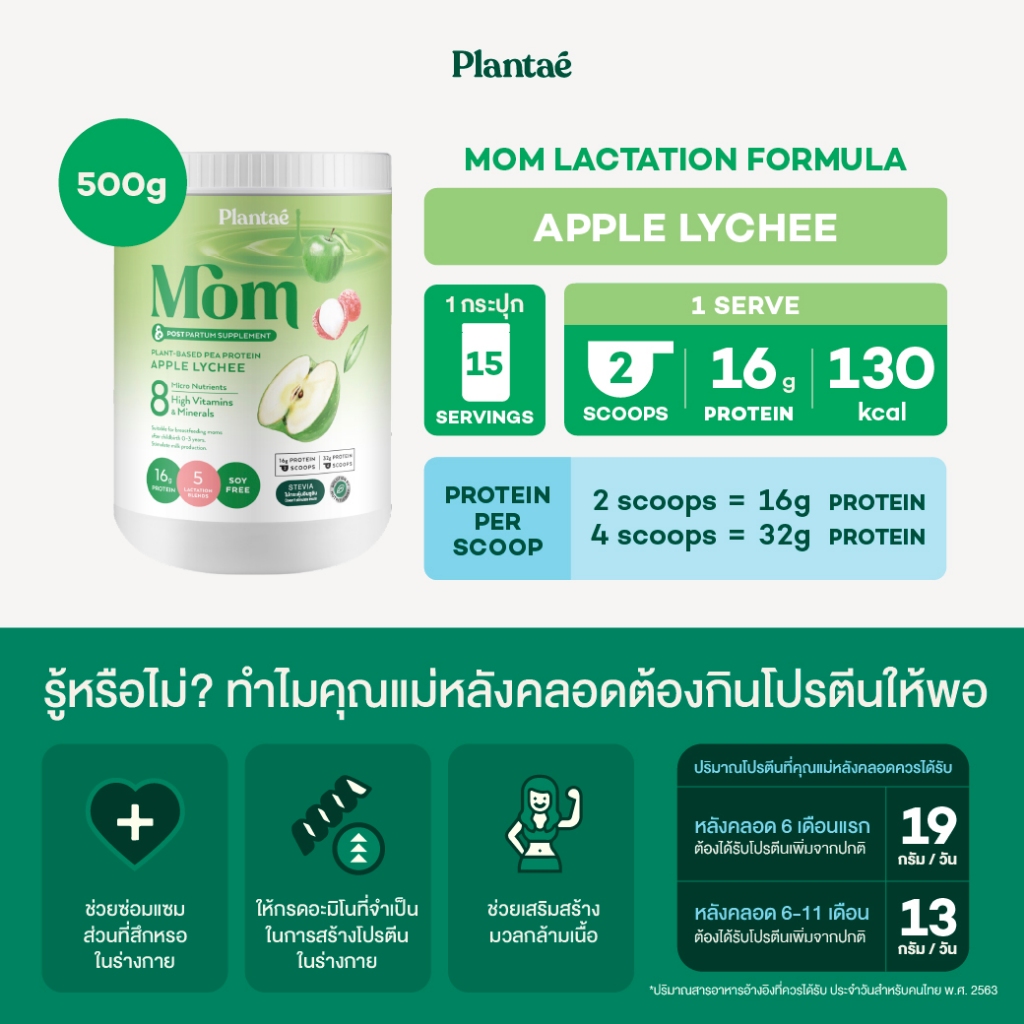 Plantae Mom Lactation Formula : รส Apple Lychee กระปุก 500g แม่หลังคลอด เพิ่มน้ำนม โปรตีนจากพืช plant based แพลนเต้