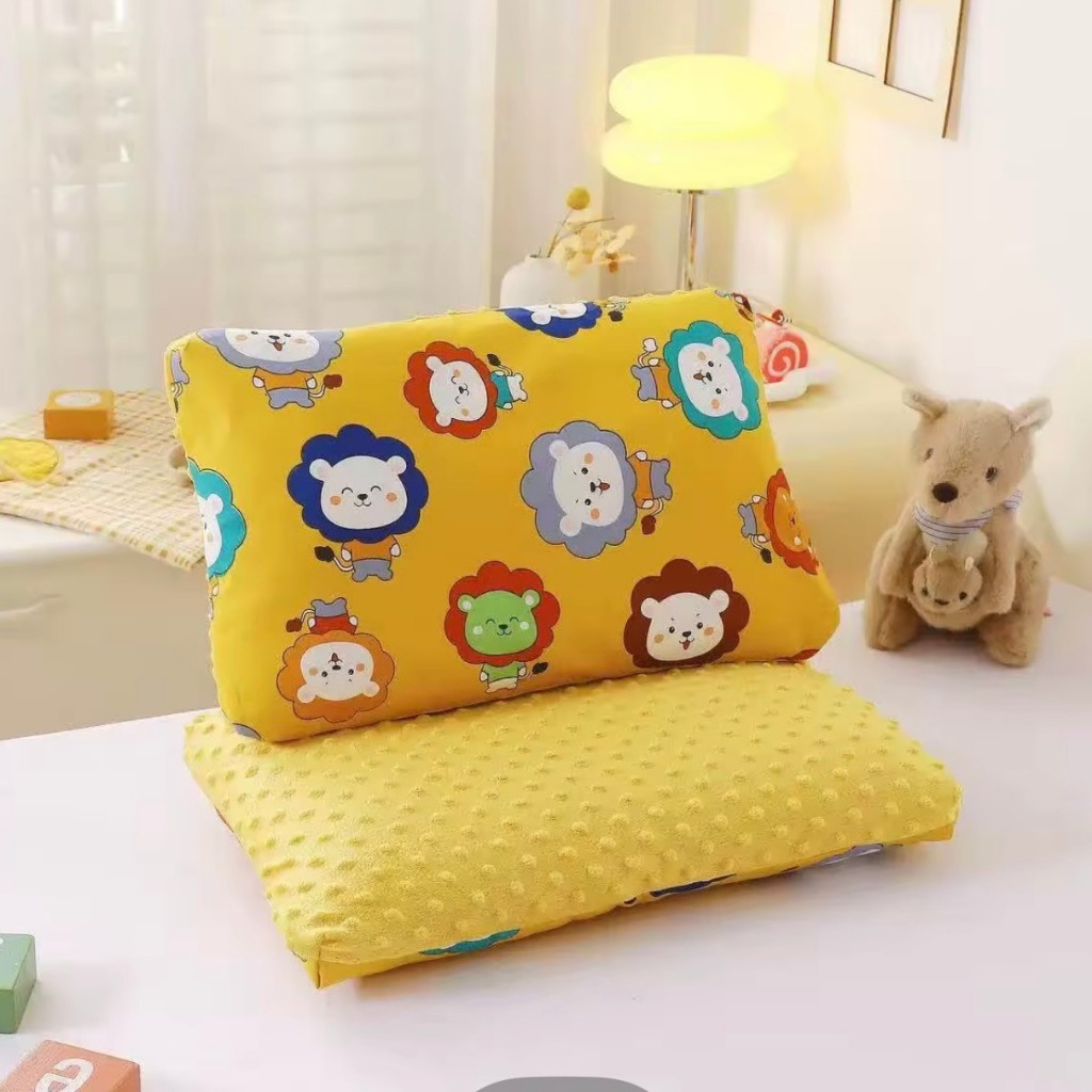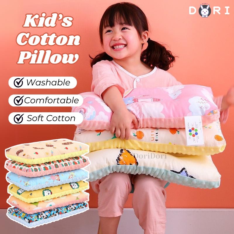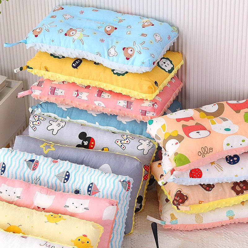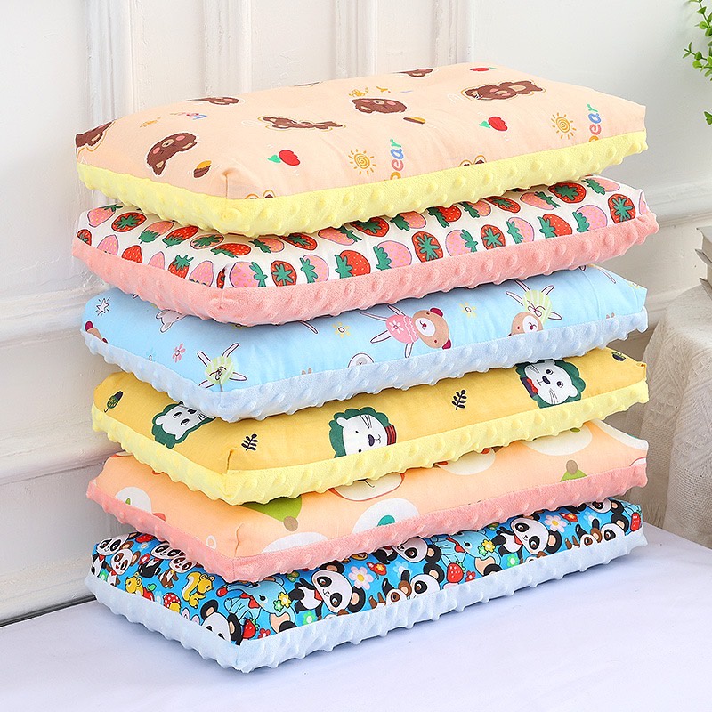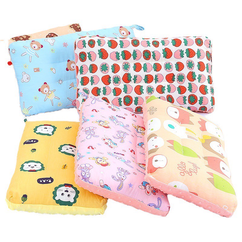 หมอนเด็ก 100% ผ้าฝ้ายนุ่ม ลายการ์ตูน หมอนเด็กกำมะหยี่ ป้องกันศีรษะแบน