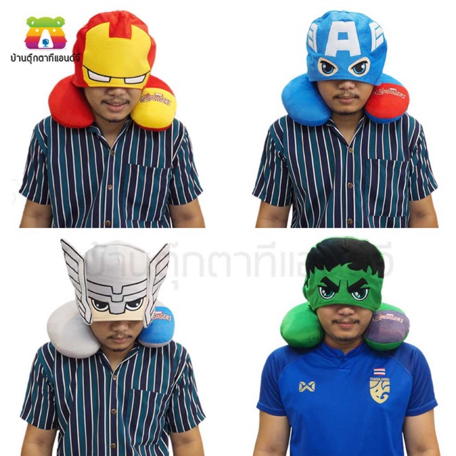 หมอนรองคอ Avengers มีหมวก อเวนเจอร์ส กัปตันอเมริกา/ไอรอนแมน/ธอร์/ฮัลค์ ลิขสิทธิ์แท้