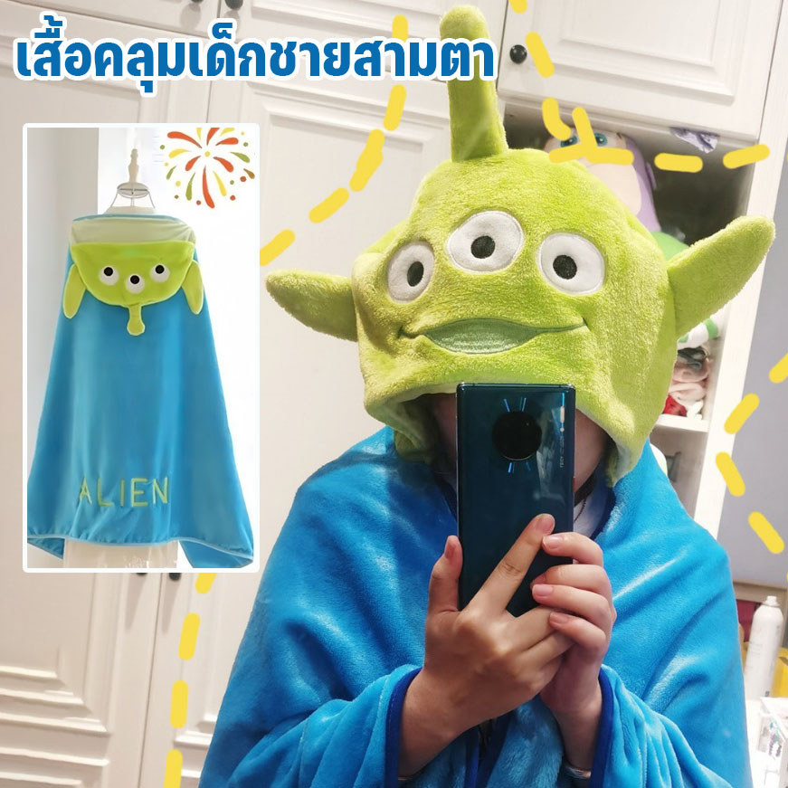 เสื้อคลุมสัตว์ประหลาดสามตาสุดน่ารัก น่าเอ็นดู เสื้อคลุมแอร์ ผ้าห่มขนนุ่มมีฮู้ดสำหรับใช้ในบ้าน