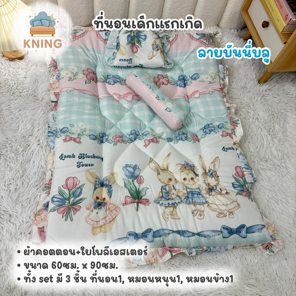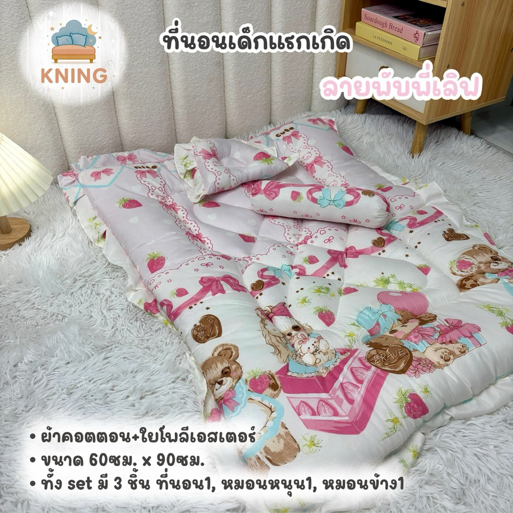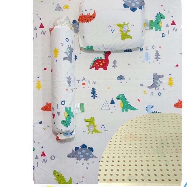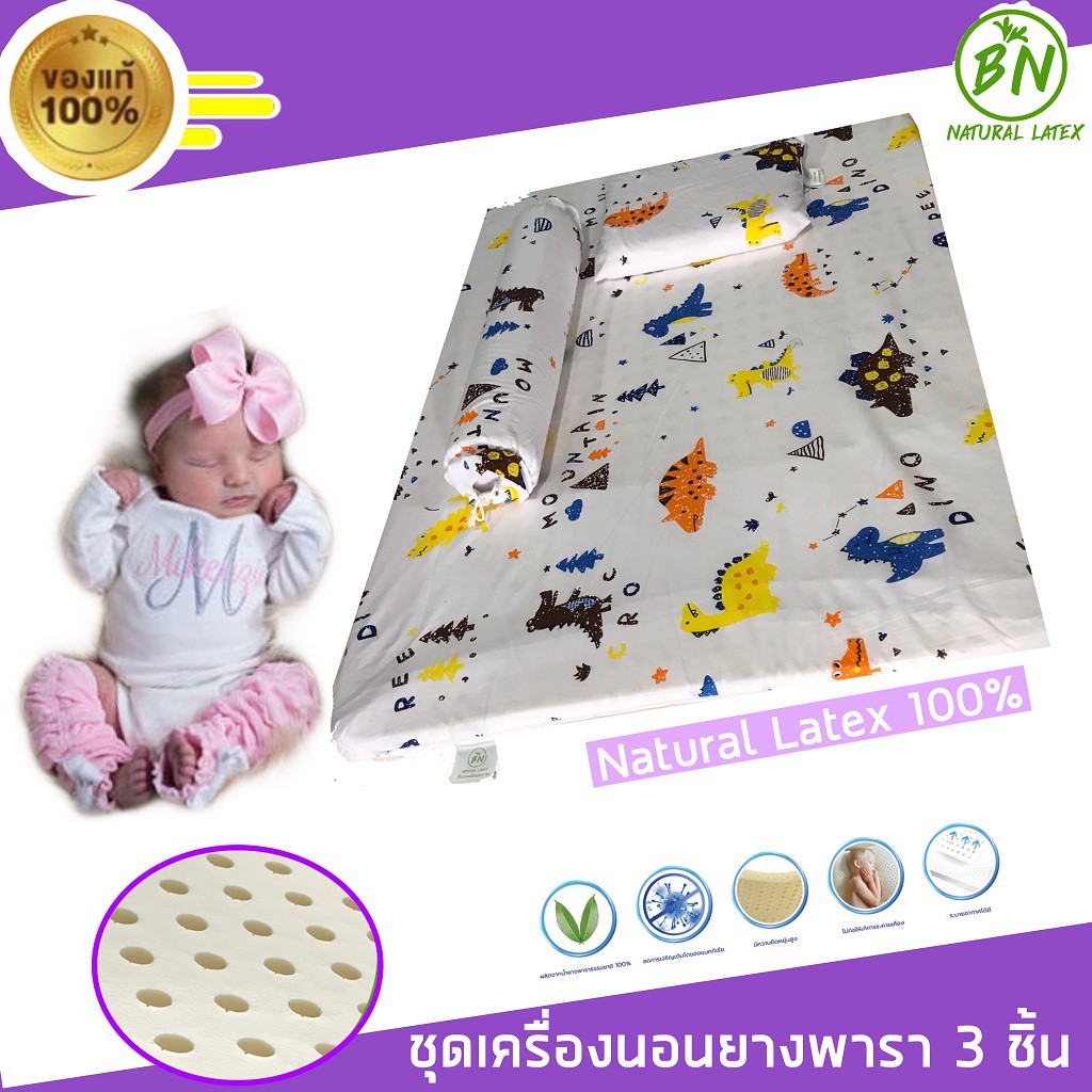ที่นอนเด็กแรกเกิด-5ขวบ ชุดเครื่องนอนเด็ก3ชิ้น ยางพาราแท้ 100%ปลอกผ้า2 ชั้นถอดซักได้ ไม่มีกลิ่นฉุน