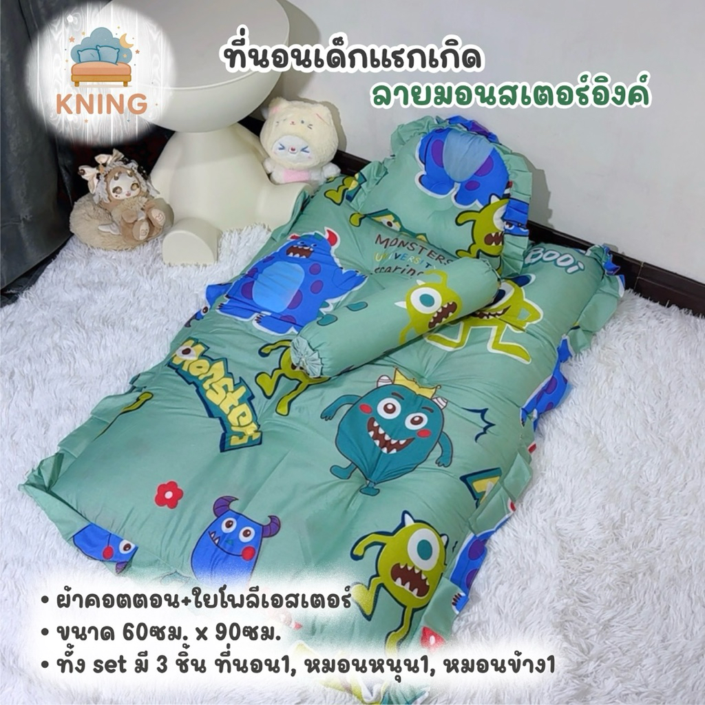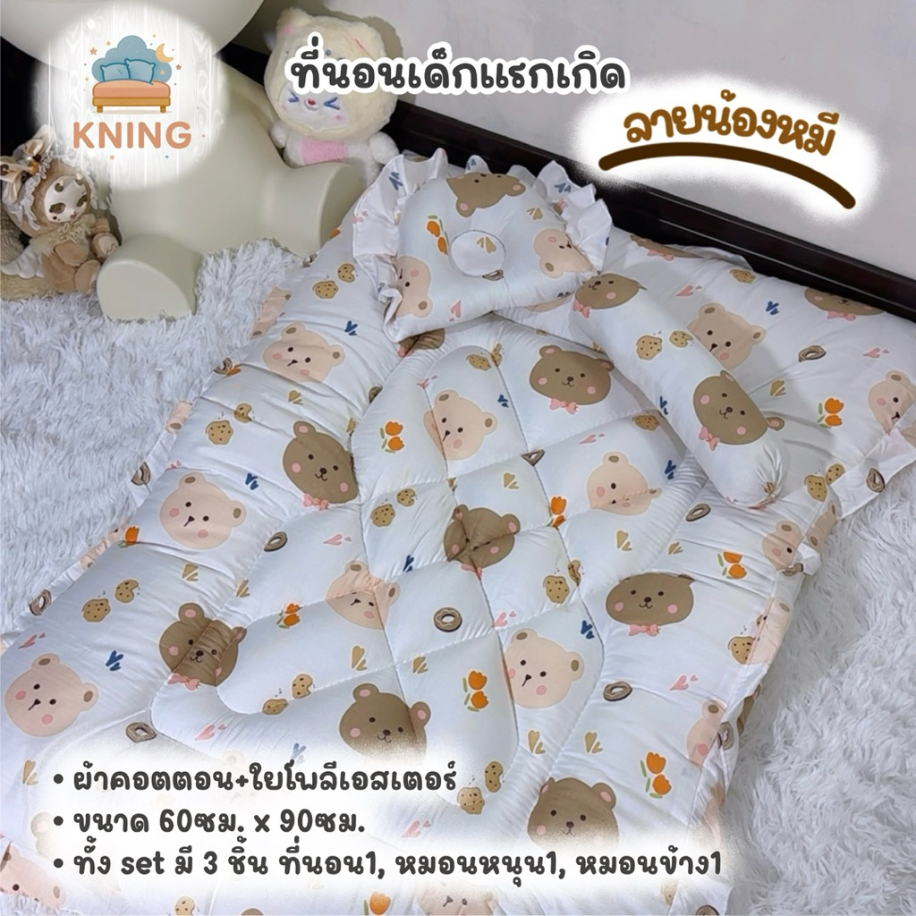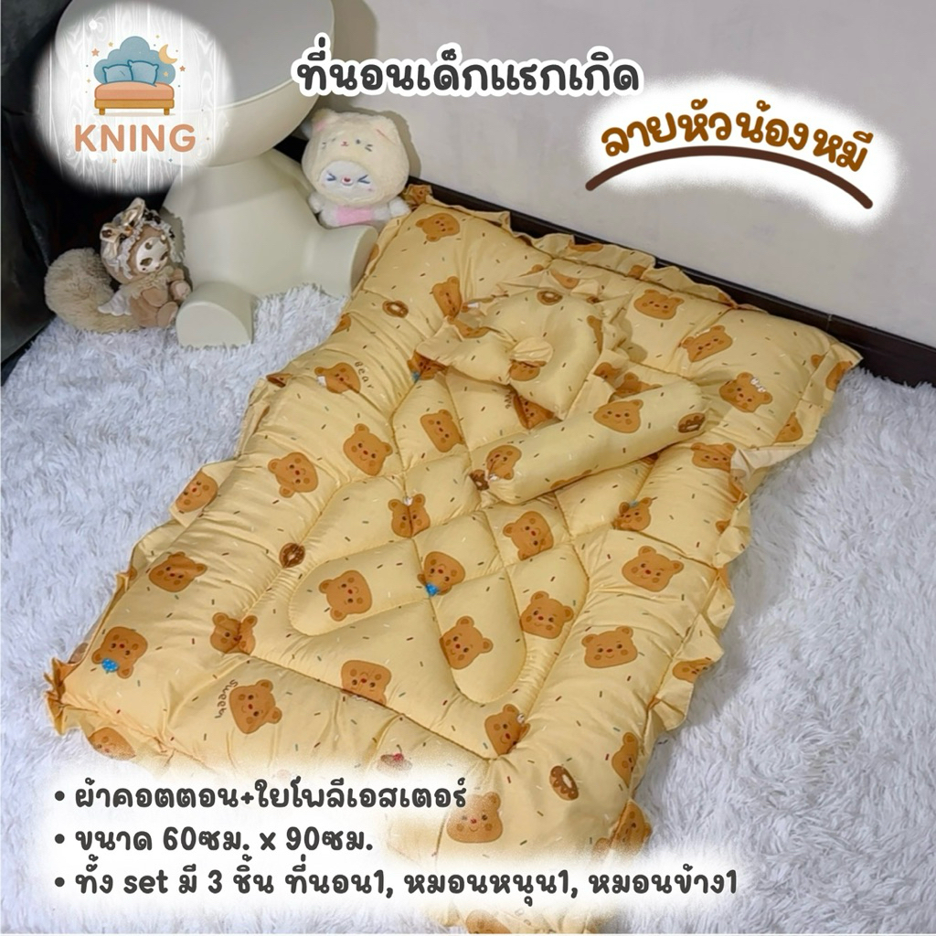 ที่นอนเด็กแรกเกิด-5ขวบ ชุดเครื่องนอนเด็ก3ชิ้น ยางพาราแท้ 100%ปลอกผ้า2 ชั้นถอดซักได้ ไม่มีกลิ่นฉุน