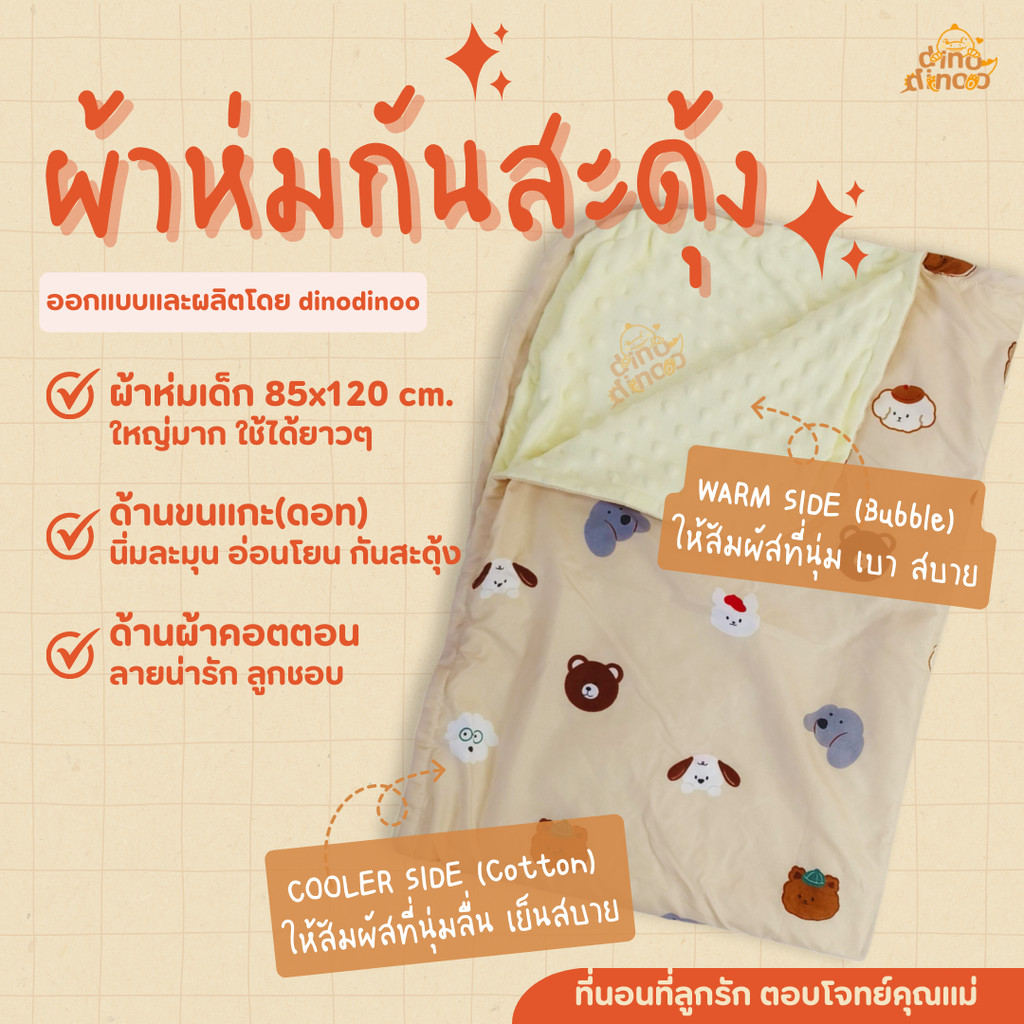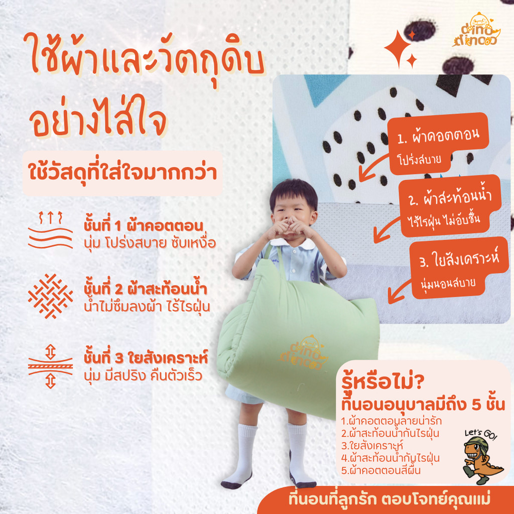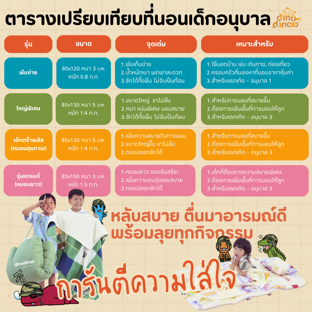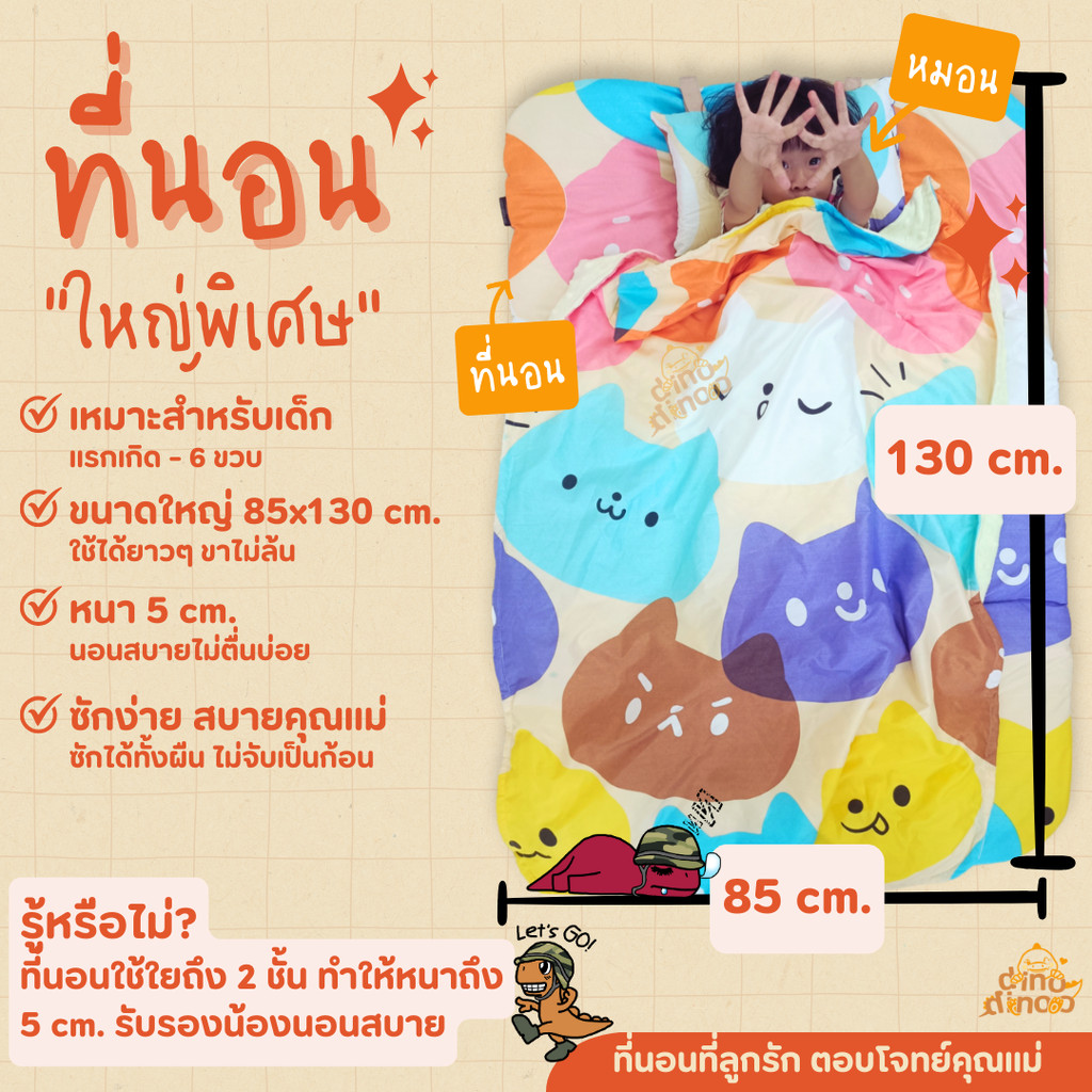 ที่นอนเด็กอนุบาล รุ่น ใหญ่พิเศษ ผ้า DinoSoft คอตตอน สั่งซื้อผ้าห่มเพิ่มได้✨? 85X130x5 cm ไปโรงเรียน DINODINOO