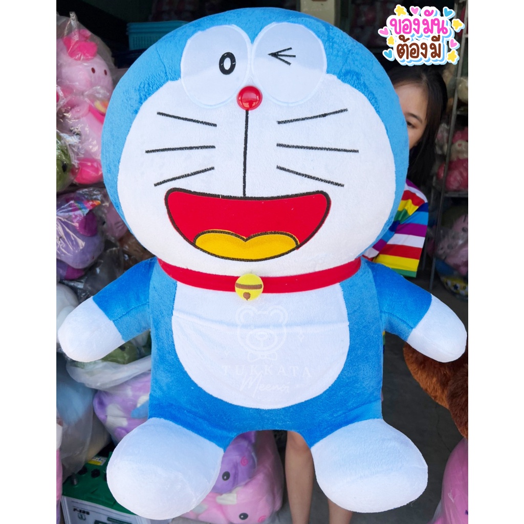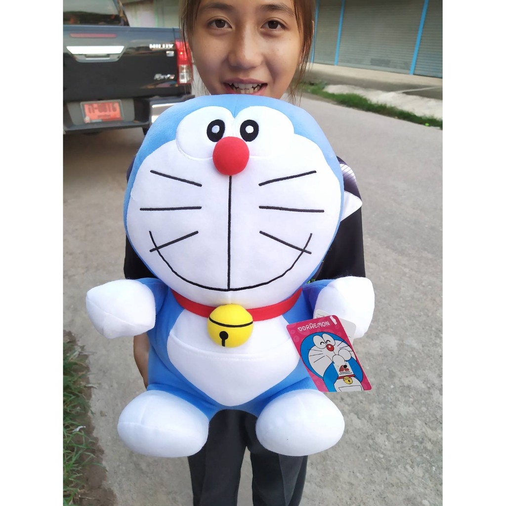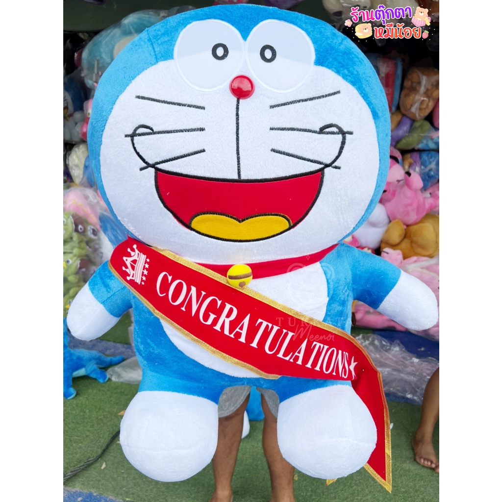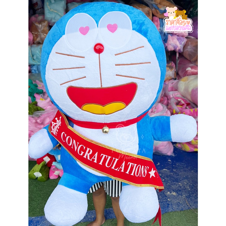 โดเรม่อนตัวใหญ่หน้าก้าลม ขนาด 35 นิ้ว แบบขนนุ่มใหม่ ลื่น ผ้าเงาสวย เพิ่มปักกระพรวนเฉพาะร้านเรา