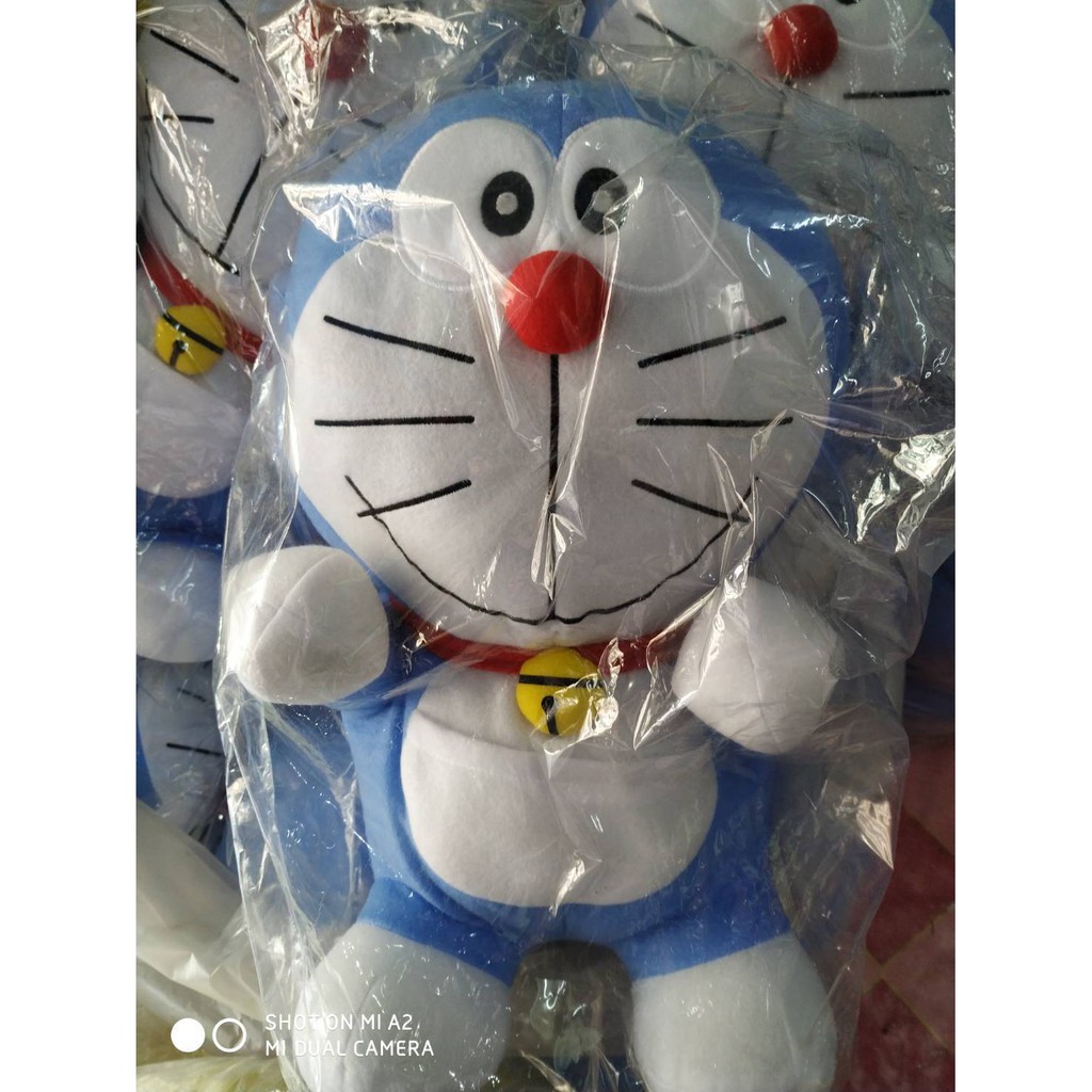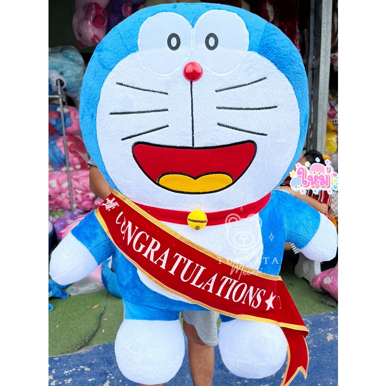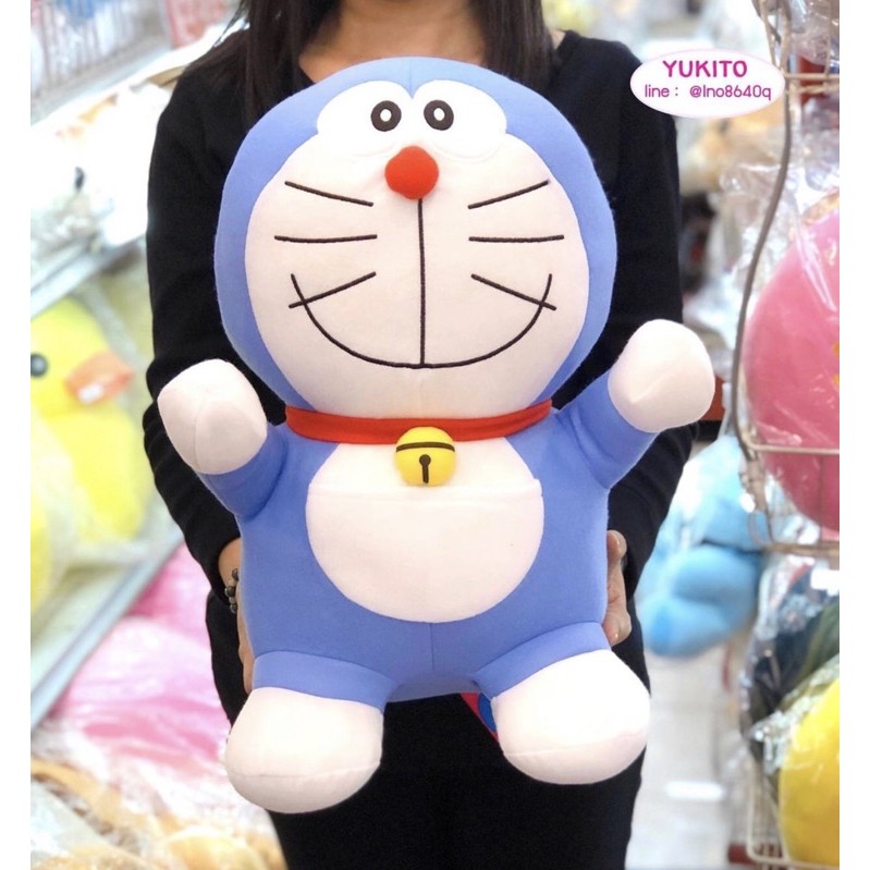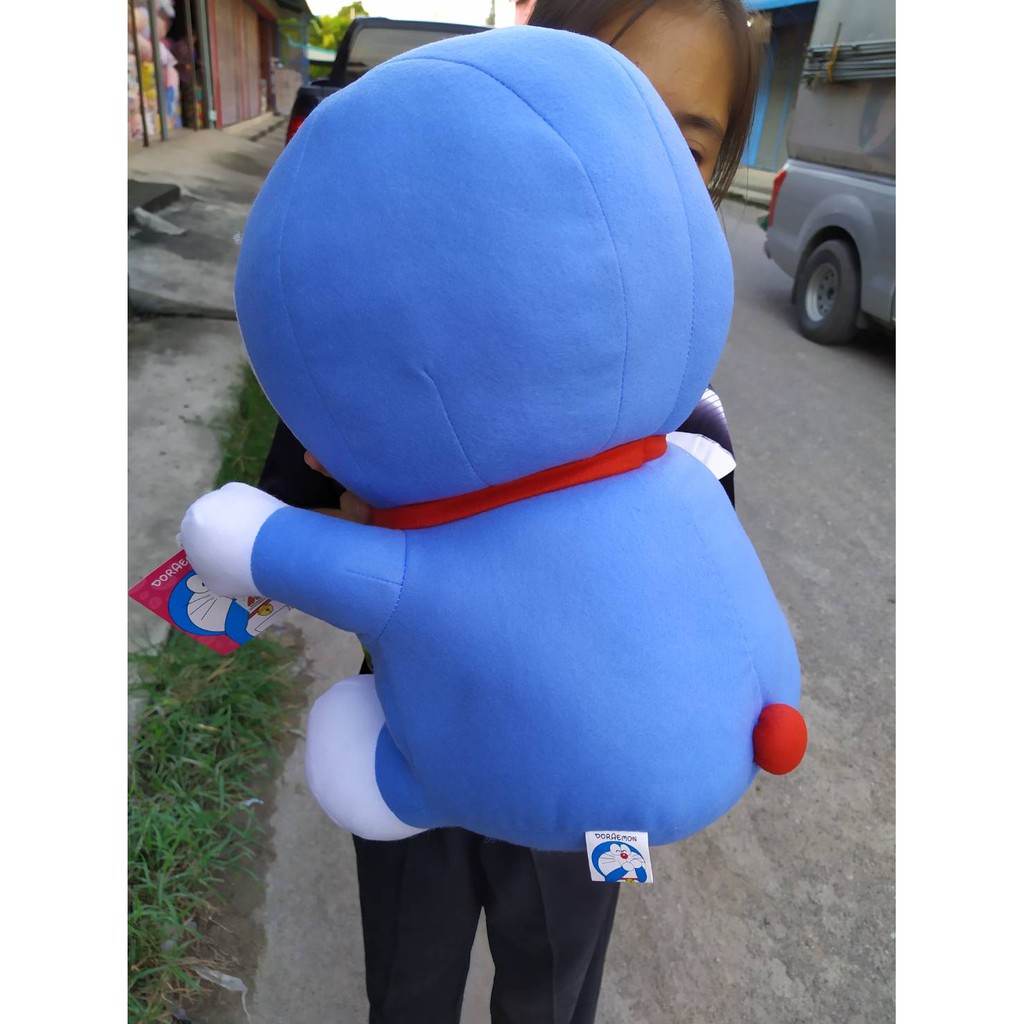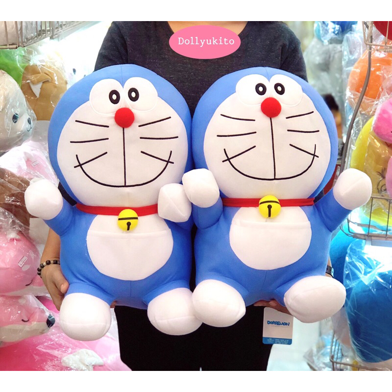โดเรม่อนตัวใหญ่หน้าก้าลม ขนาด 35 นิ้ว แบบขนนุ่มใหม่ ลื่น ผ้าเงาสวย เพิ่มปักกระพรวนเฉพาะร้านเรา