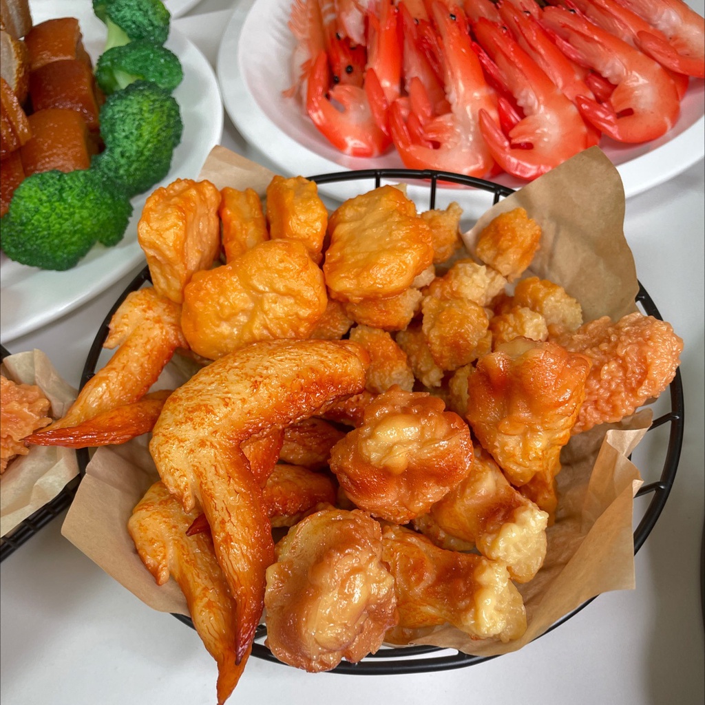 อาหารปลอมรุ่นLots ไก่ทอดประดิษฐ์อาหารตะวันตกขนมขบเคี้ยวรุ่นจําลองปีกไก่ปลอม French Fries Market ร้านอาหารจอแสดงผลตกแต่งการถ่ายภาพ Props