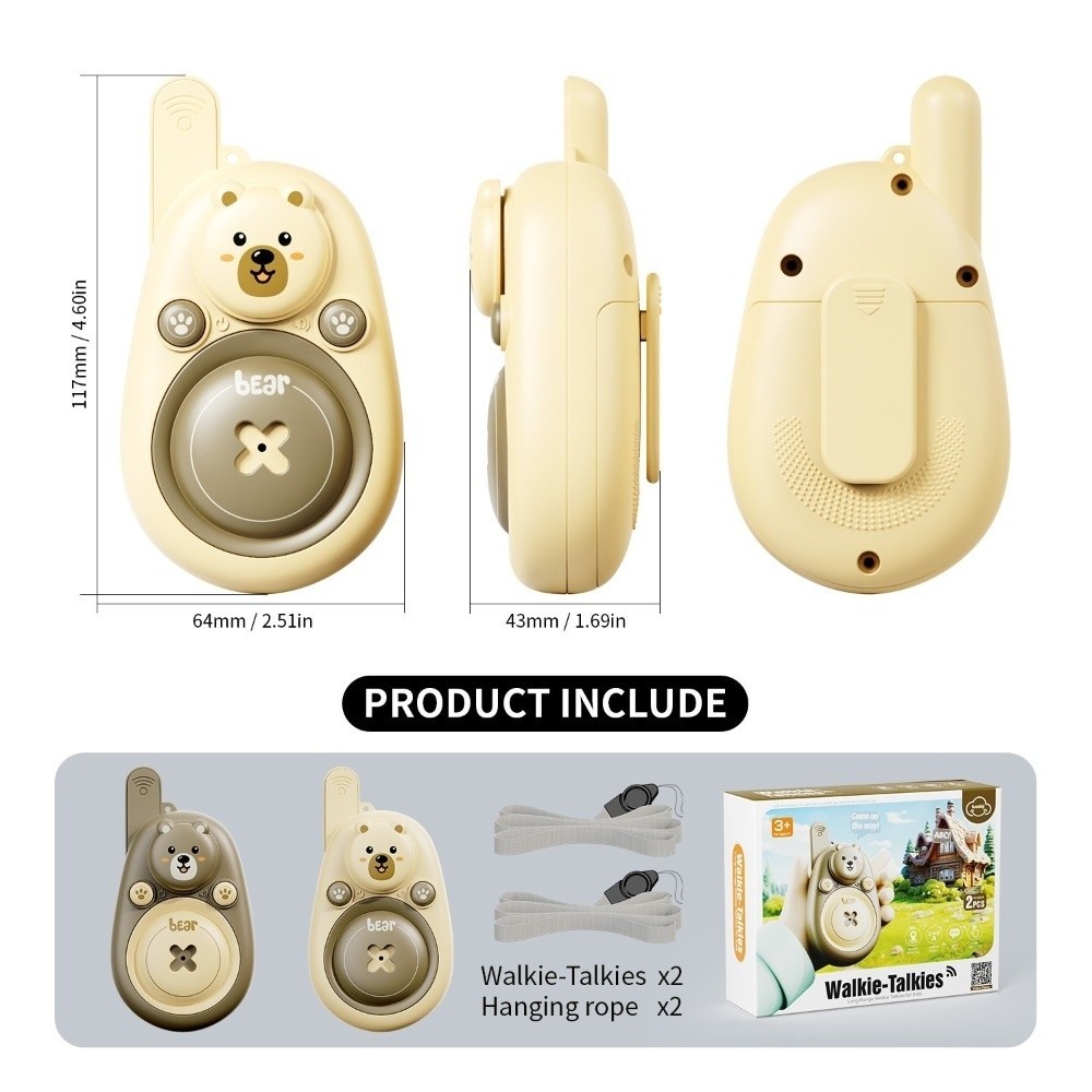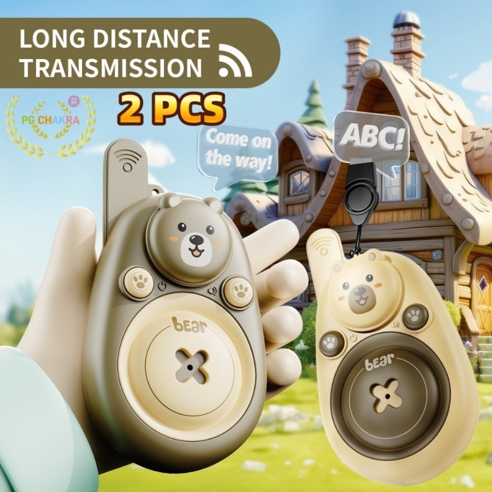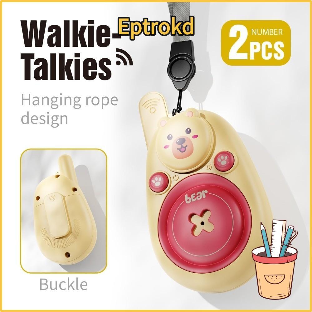 EPTRO 2 ชิ้นวิทยุเครื่องส่งสัญญาณของเล่น,การ์ตูนหมี Interactive Kids Walkie Talkies, Boost Development Long Range พร้อม Lanyard Remote Intercom Outdoor Camping