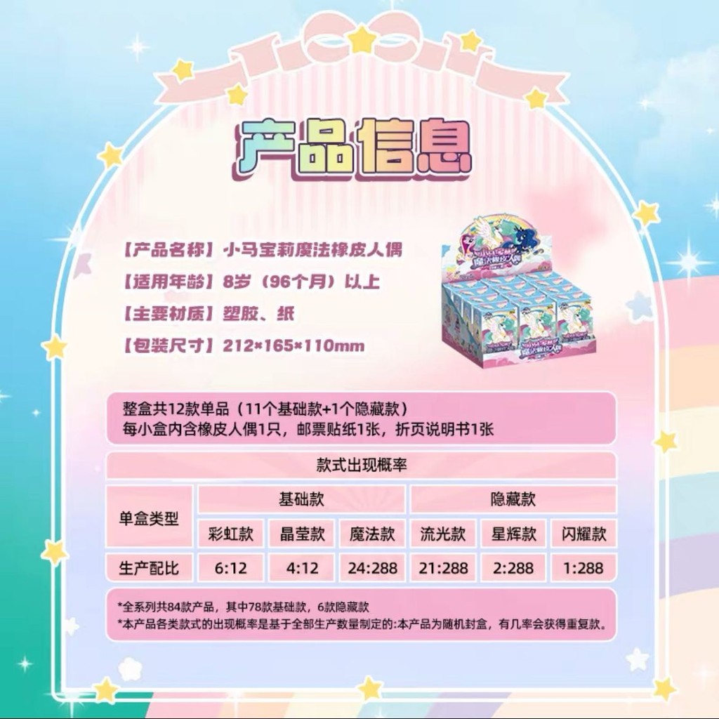 [peng] ของแท้ Original My Little Pony Magic Mini ตุ๊กตายางตุ๊กตากล่องปริศนา Shining Clouds การ์ตูนทิเบต