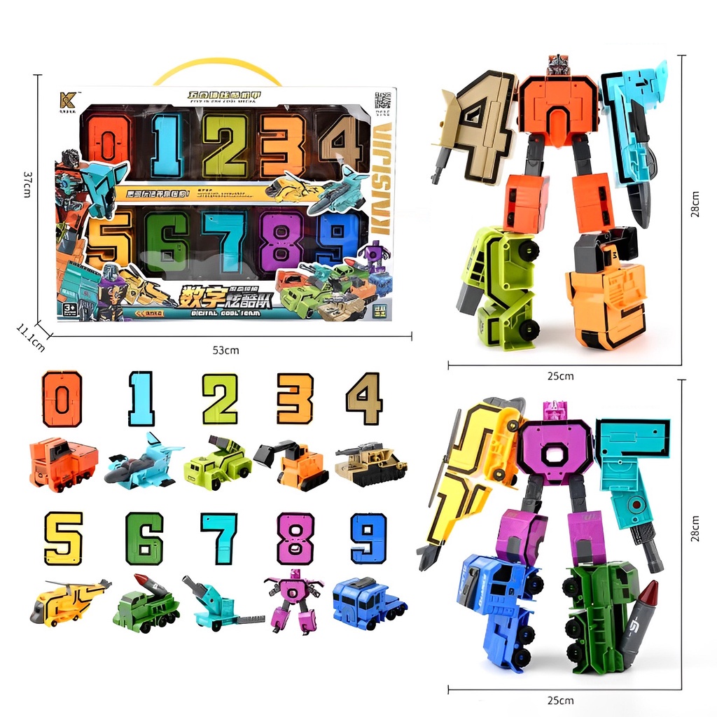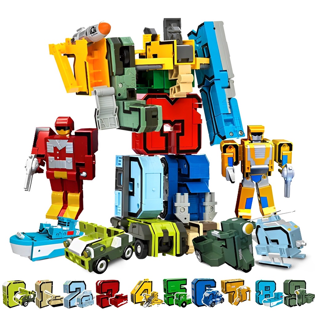 ชุดหุ่นยนต์แปลงร่างตัวเลข 0-9 ของเล่นสําหรับเด็ก 10 ชิ้น