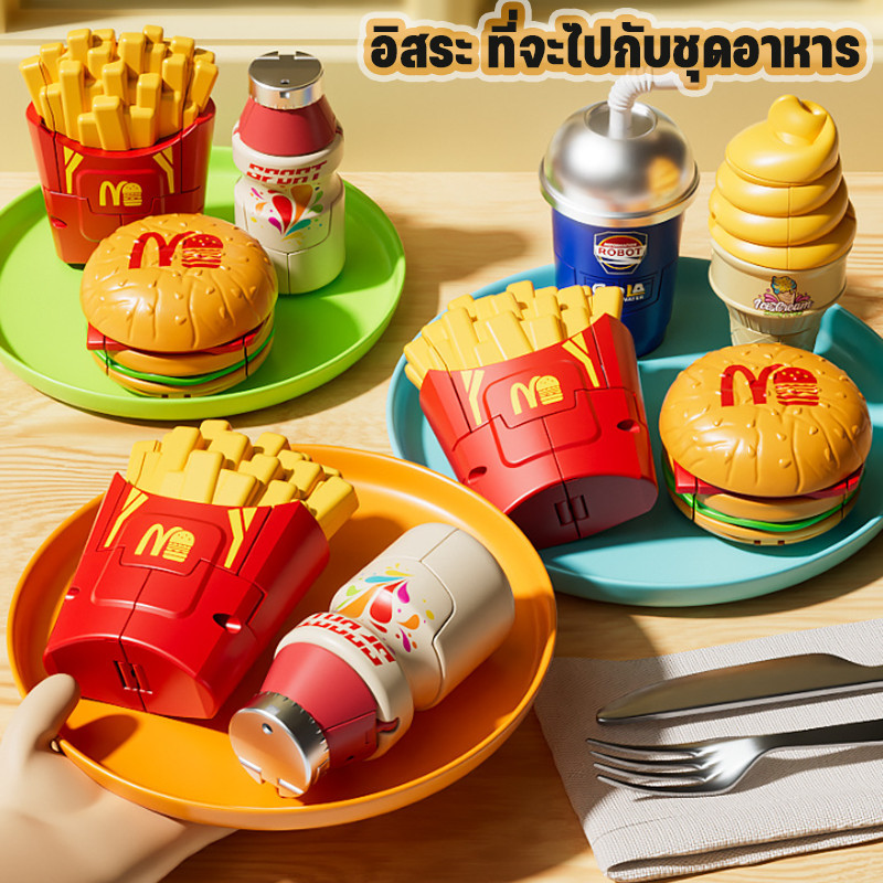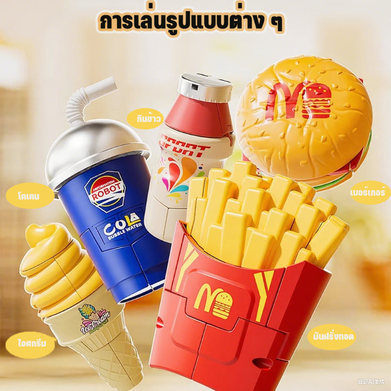 หุ่นยนต์แปลงมันฝรั่งทอด จำลองไอศกรีม-เฟรนช์ฟรายส์-แฮมเบอร์เกอร์ ขนาดมินิสำหรับเด็ก จำลองไอศกรีม ของเล่นเด็ก