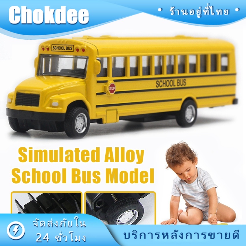 ร้านคนไทย! รถโมเดลเหล็ก รถบัสโรงเรียน school bus ของเล่น ยาว 14.2CM