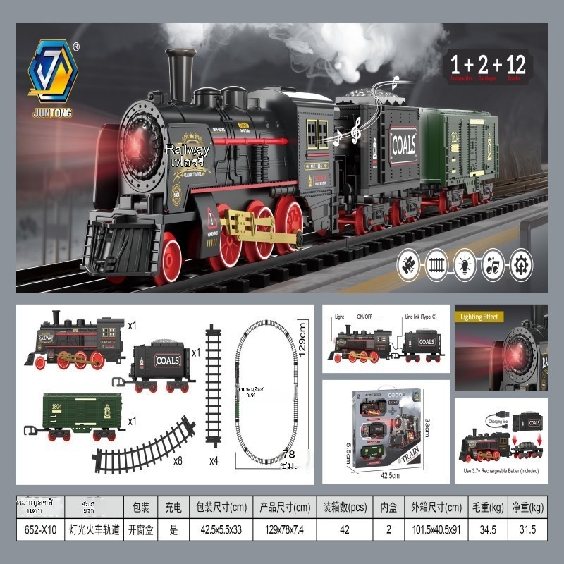 รถไฟไอน้ำจำลอง รางไฟฟ้า ควบคุมรีโมทสัมผัส ของเล่นเด็กชาย 7-14 ปี ความเร็วสูง