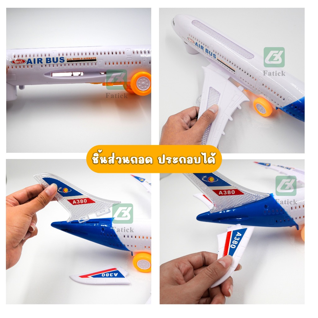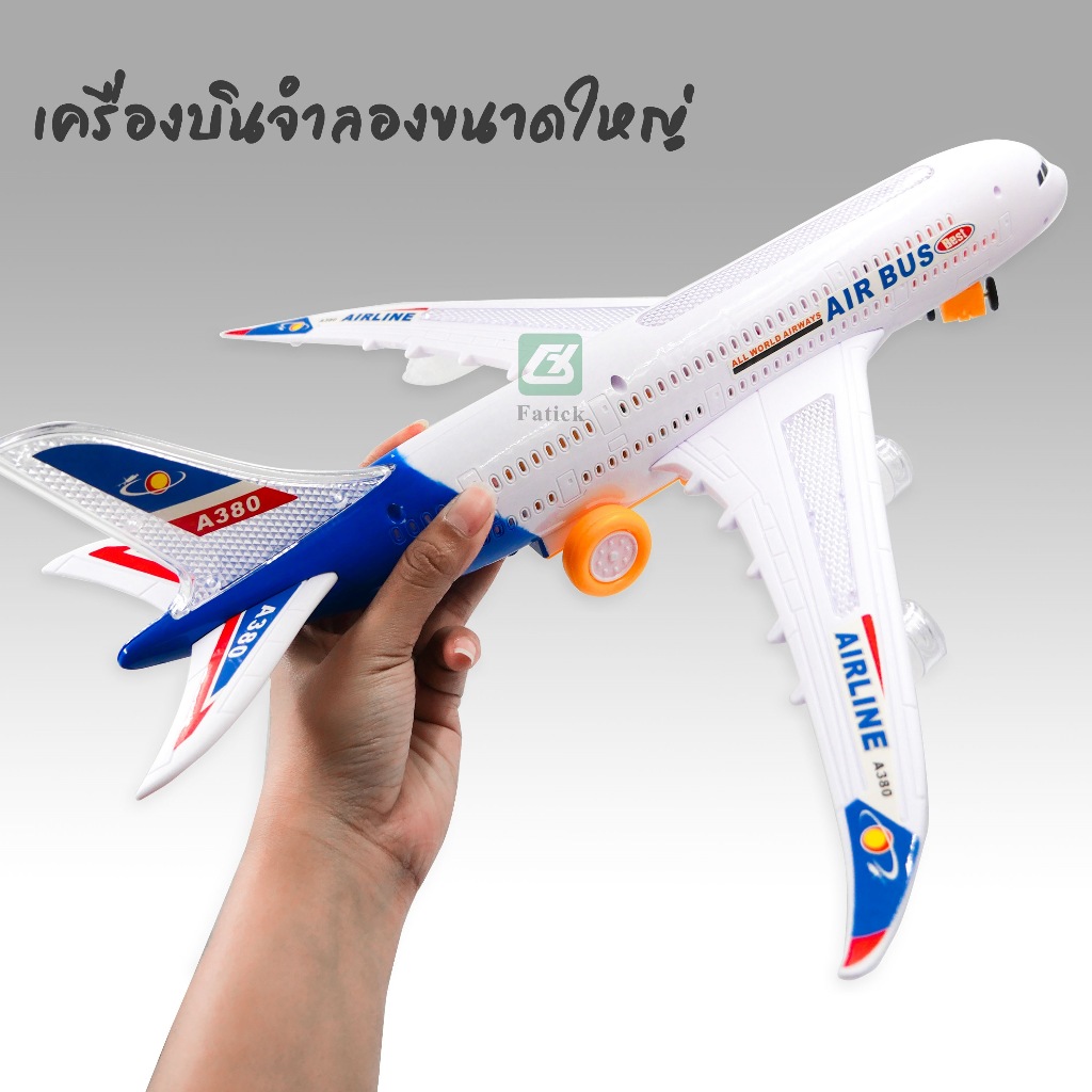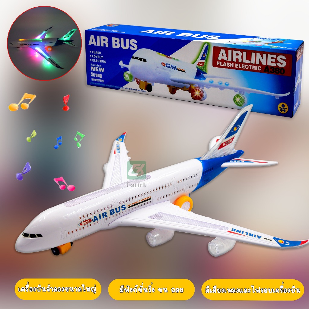 เครื่องบินของเล่น เครื่องบินจำลอง Air Bus A380 วิ่งชนแล้วถอย มีเสียง มีไฟ ลำใหญ่