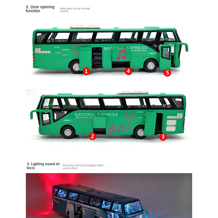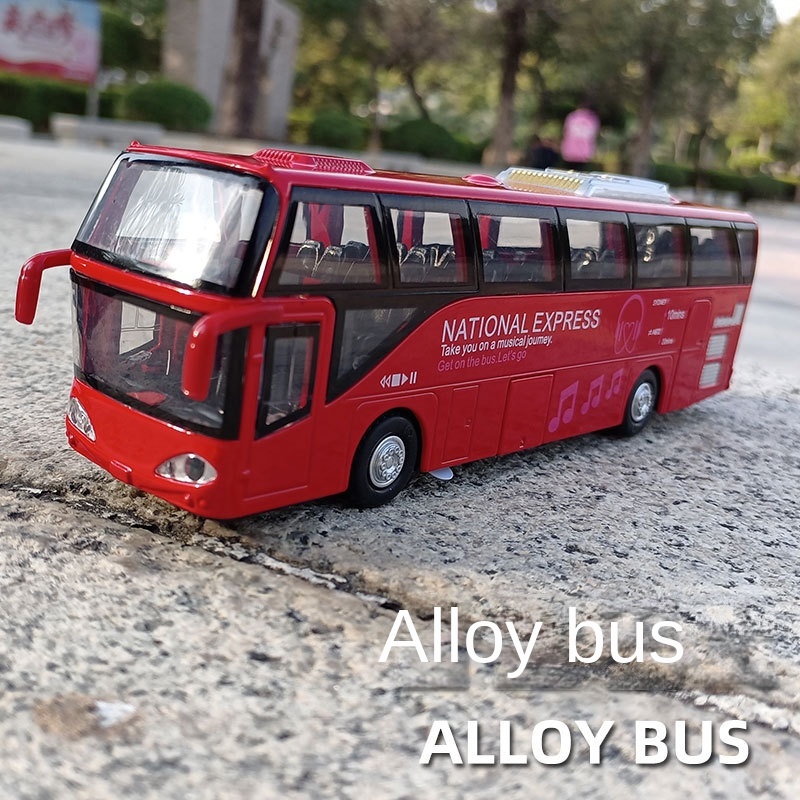 โมเดลรถบัสผู้โดยสาร โลหะผสม มีเสียง และไฟ แบบสร้างสรรค์ ของเล่นสําหรับเด็ก
