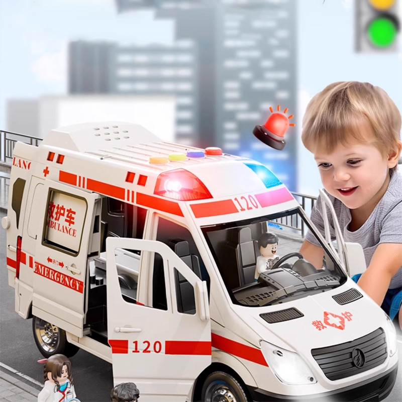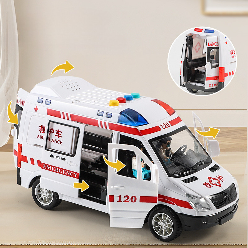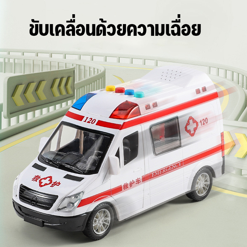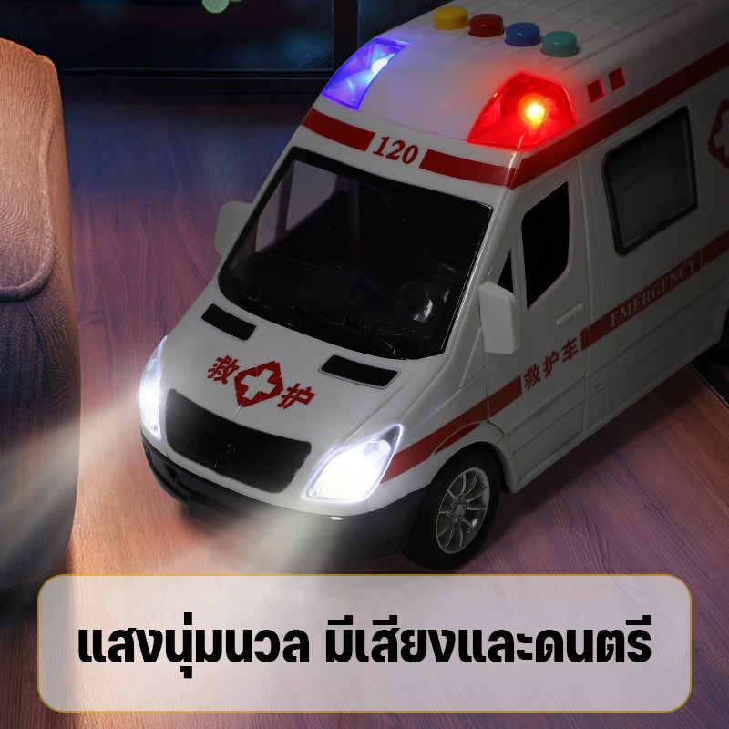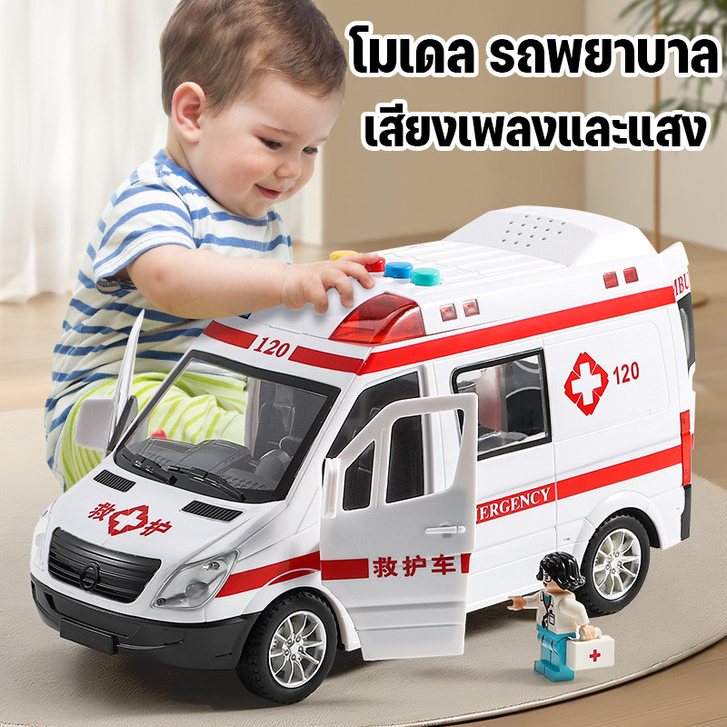 โมเดล ของเล่นจำรอง รถพยาบาล วิ่งได้ มีเสียง มีไฟ ประตูเปิดได้ 5 ประตูขนาดใหญ่ สินค้าพร้อมส่งจากไทย