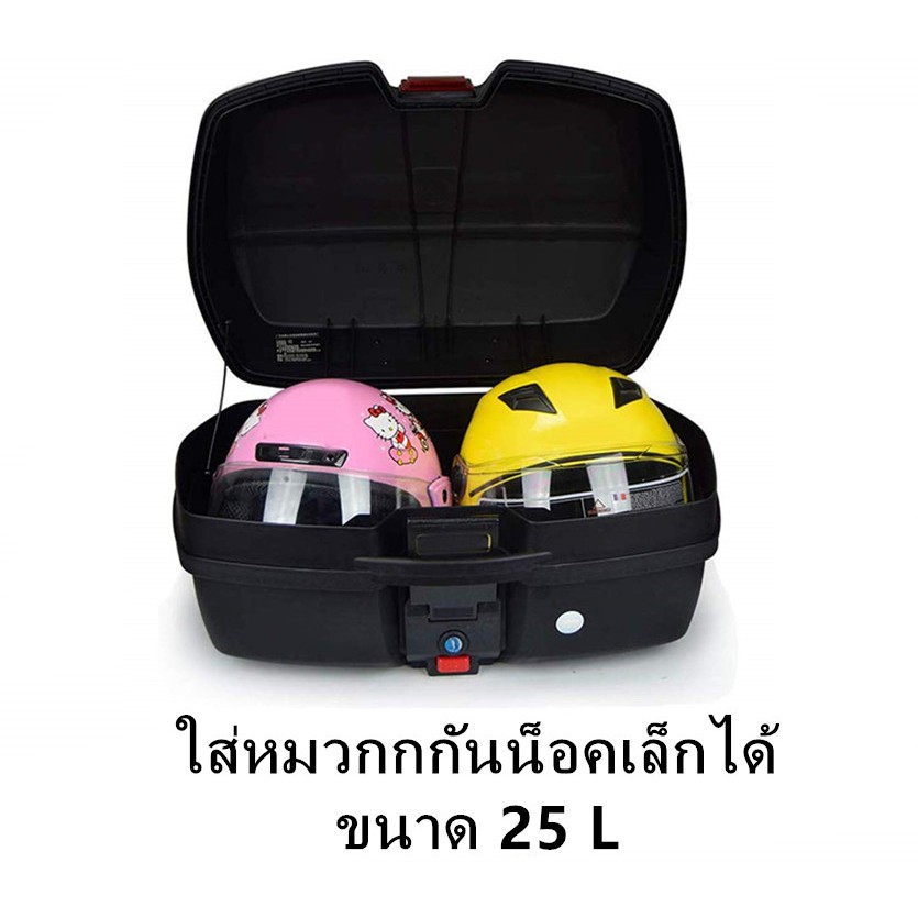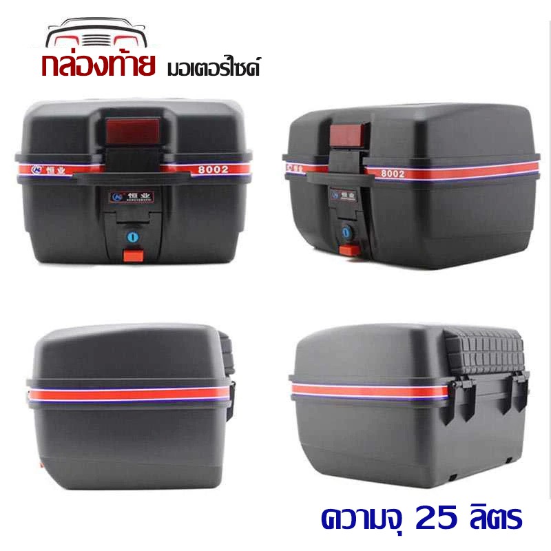 (A86)กล่องท้ายรถ กล่องหลัง กล่องเก็บของท้ายรถมอเตอร์ไซค์ ความจุ 25ลิตร สำหรับติดรถมอเตอร์ไซค์ สีดำ มีแถบสีแดง(สีดำ)
