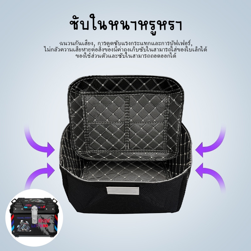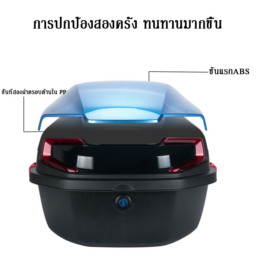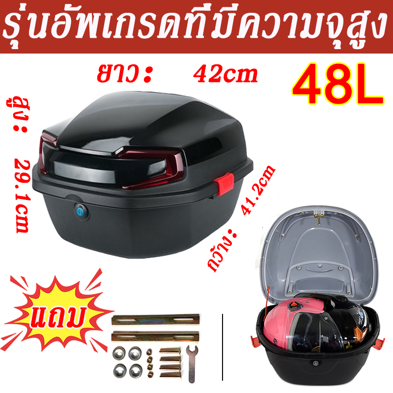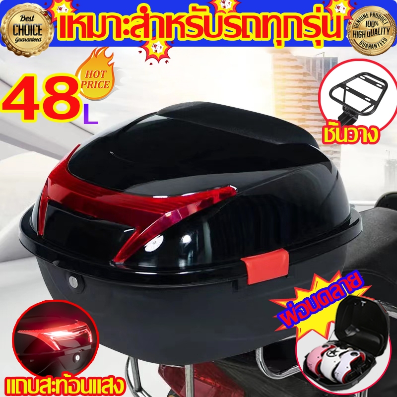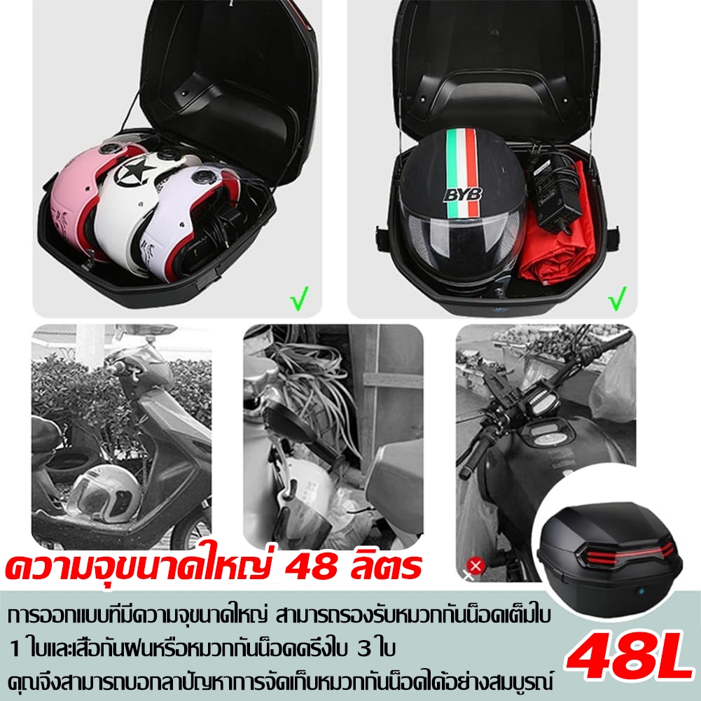 【ฟรี อุปกรณ์เสริม】กล่องท้ายมอไซค กล่องท้ายมอเตอร์ไซค์ กล่องท้ายรถ กระเป๋าติดมอเตอร์ไซค์มีแถบสะท้อนแสง 48L สองชั้นเพิ่มคว