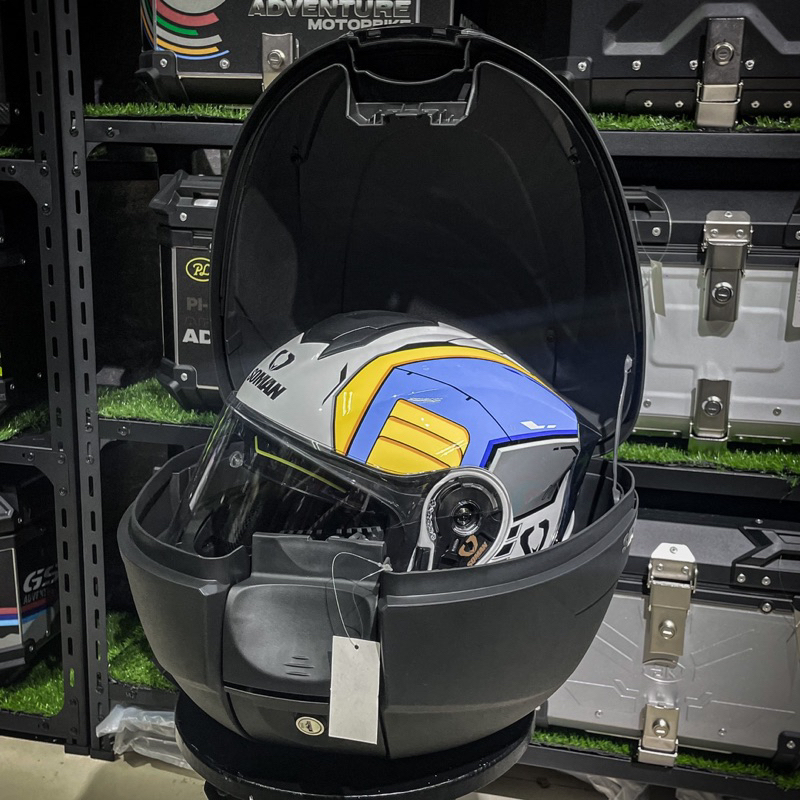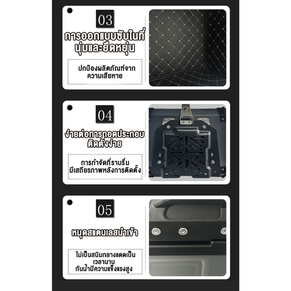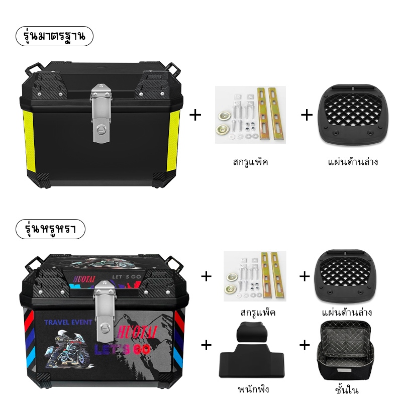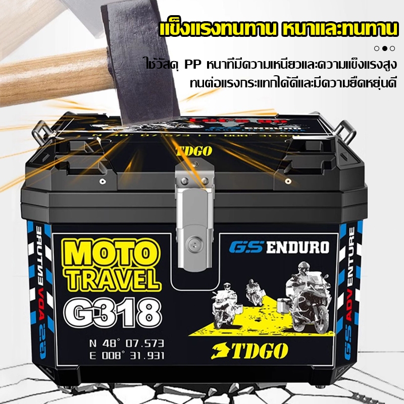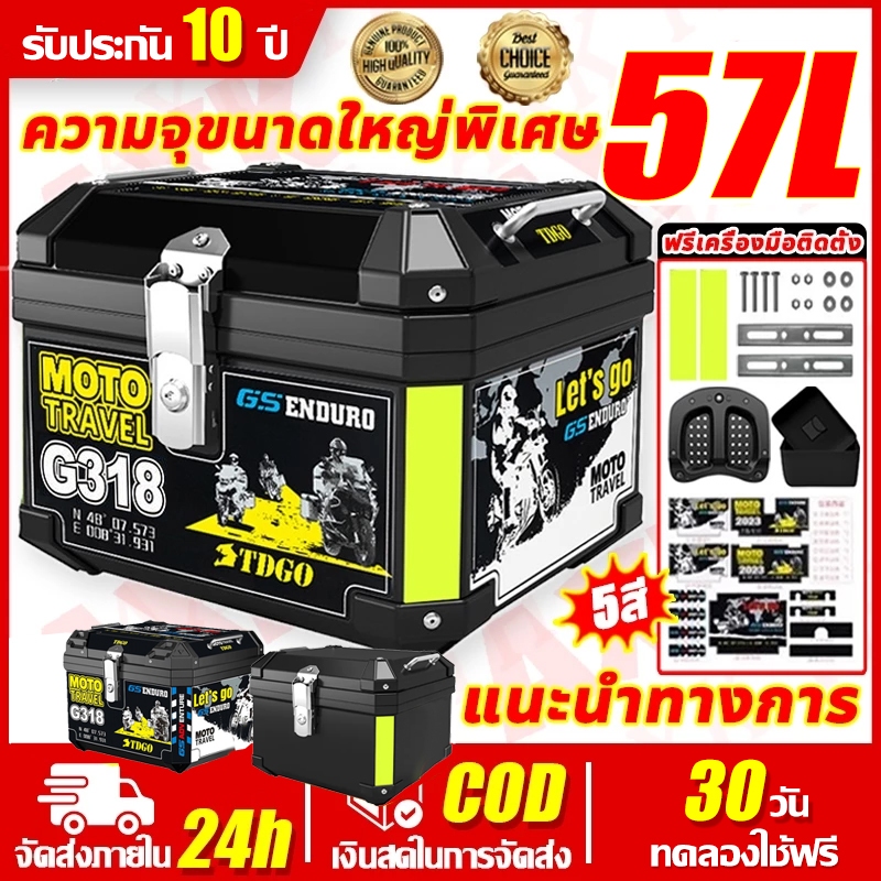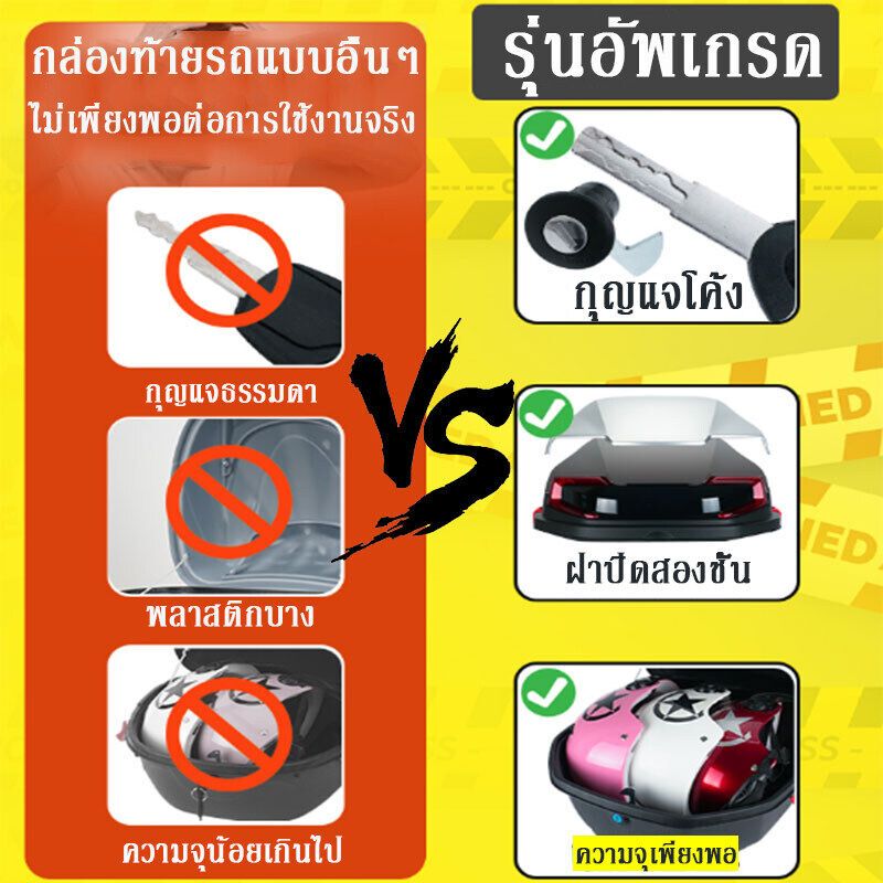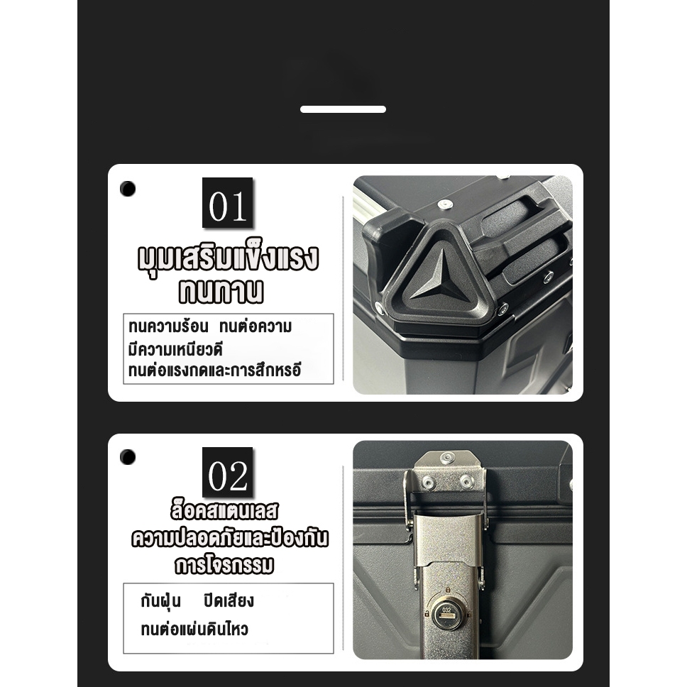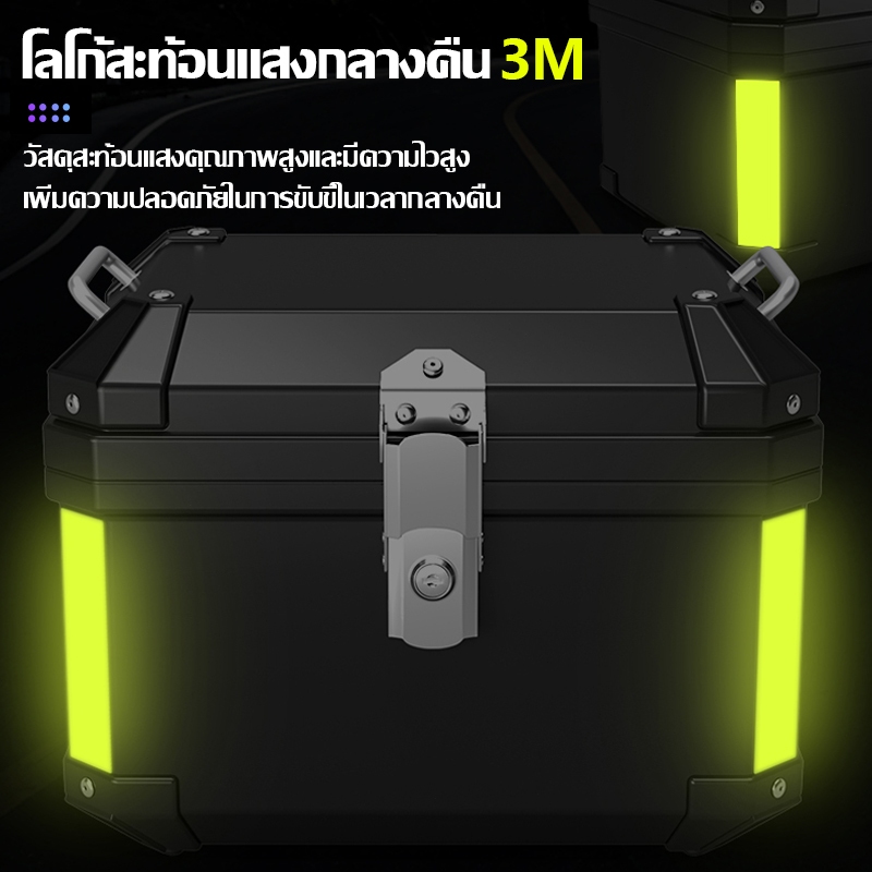 ? เหมาะสำหรับรถมอเตอร์ทุกรุ่น?รุ่นหนากล่องเก็บรถมอเตอร์ไซค์ กล่องท้ายมอเตอร์ไซค์ กล่องหลัง กล่องเก็บของ 50L/57L ไม่สามารถทําลายและทุบได้ ฟรีแถบสะท้อนแสง เครื่องมือติดตั้ง กล่องท้ายรถ