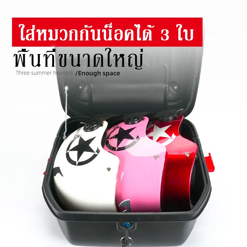 50/57L?ไม่สามารถทําลายและทุบได้? ฟรีแถบสะท้อนแสง เครื่องมือติดตั้ง กันน้ำ ทนทาน แข็งแรง กล่องเก็บรถจักรยานยนต์ป้องกันสนิม กล่องเก็บรถมอเตอร์ไซค์ กล่องท้ายมอเตอร์ไซค์ ปิ๊บหลังมอไซค์ Honda