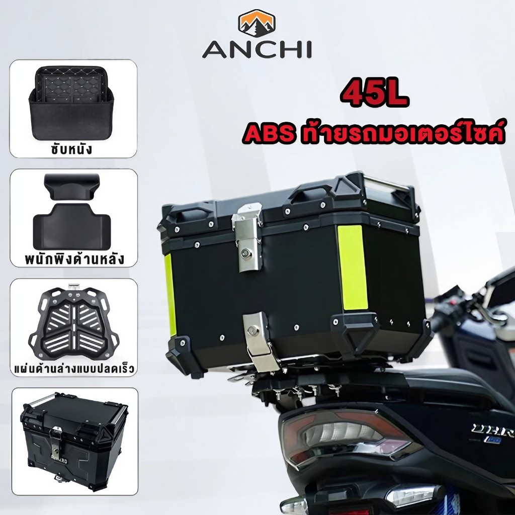 Anchi กล่องท้ายมอเตอร์ไซค์ กระบะท้ายอลูมิเนียมมอเตอร์ไซค์ กล่องหลัง ABS วัสดุ/วัสดุอะลูมิเนียม 45L กันน้ำ