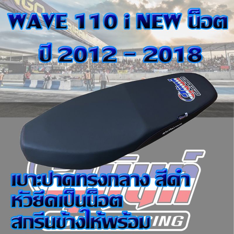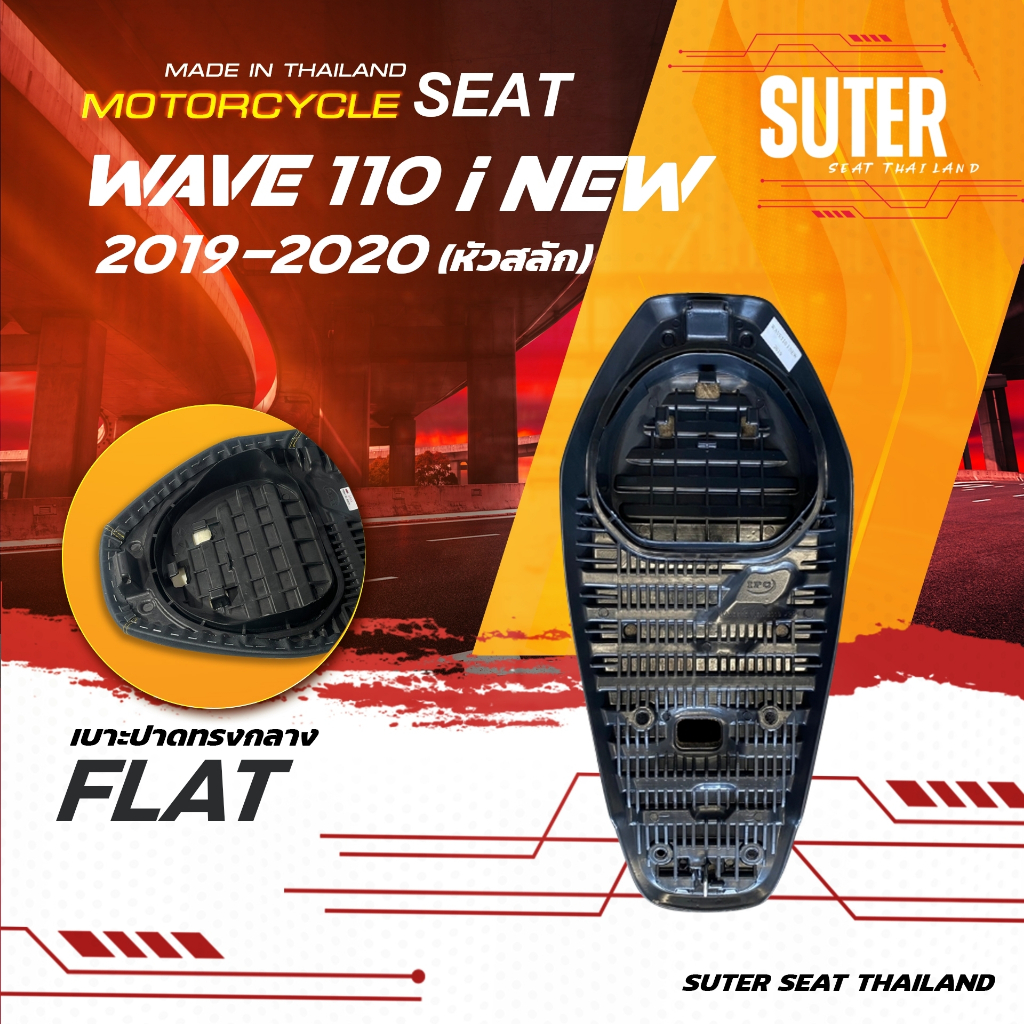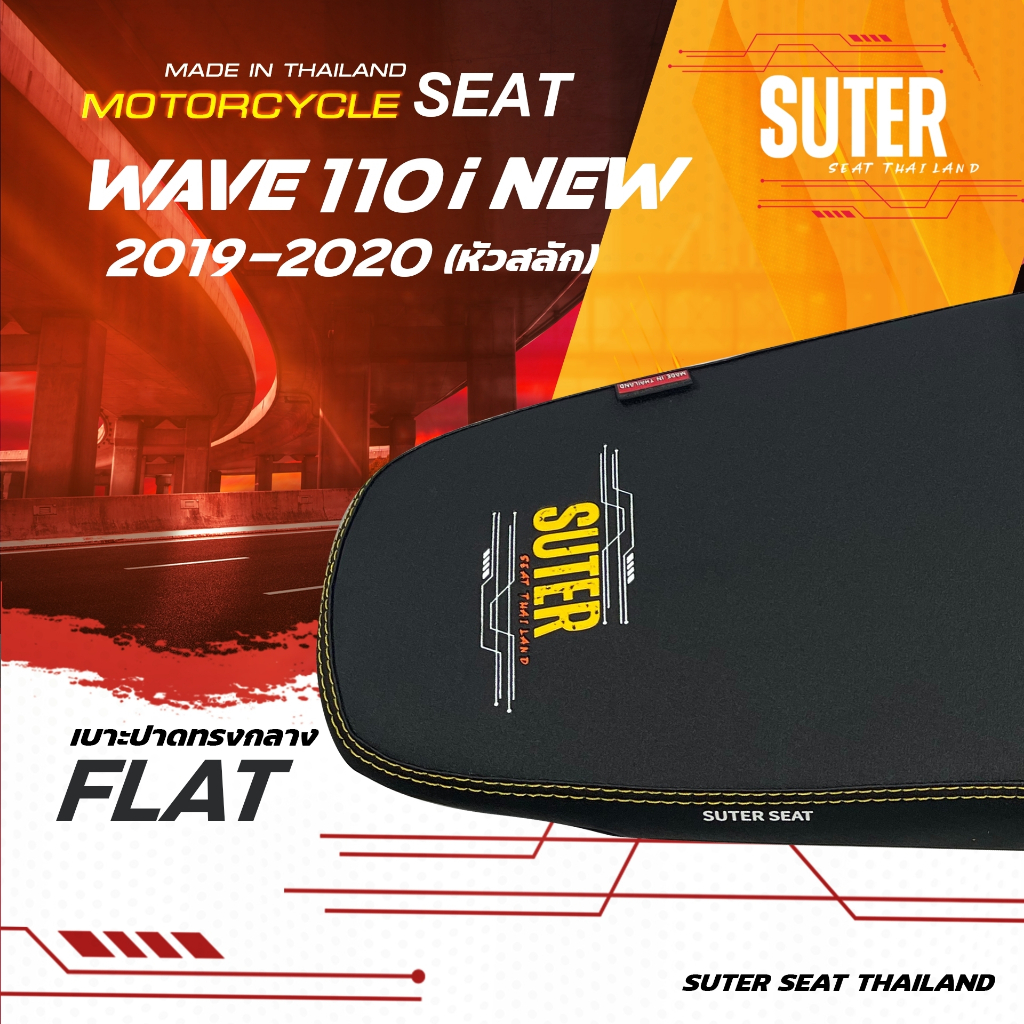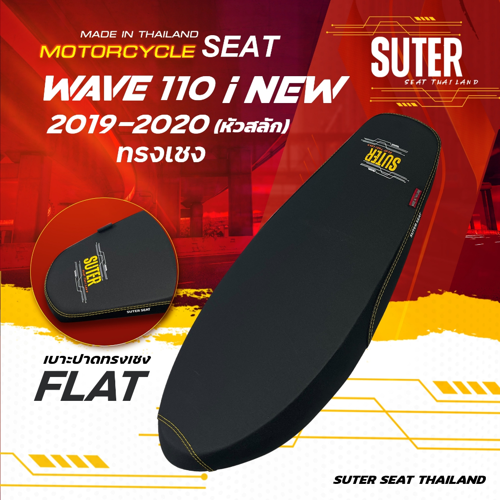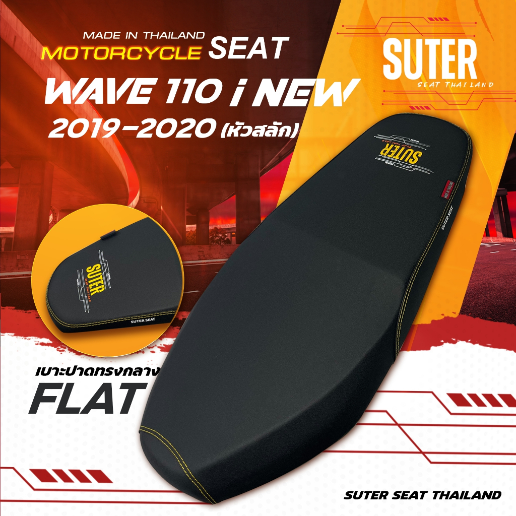 เบาะ WAVE 110 I NEW รุ่นปี 2019-2020 (หัวสลัก) เบาะมอเตอร์ไซค์ SUTER Seat Thailand ผ้าเรดเดอร์ด้ายเหลืองทอง