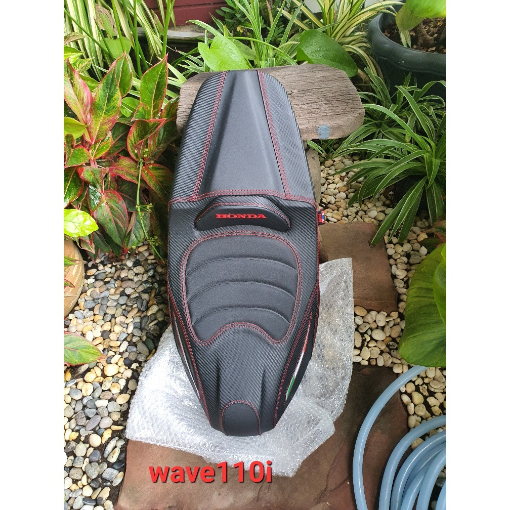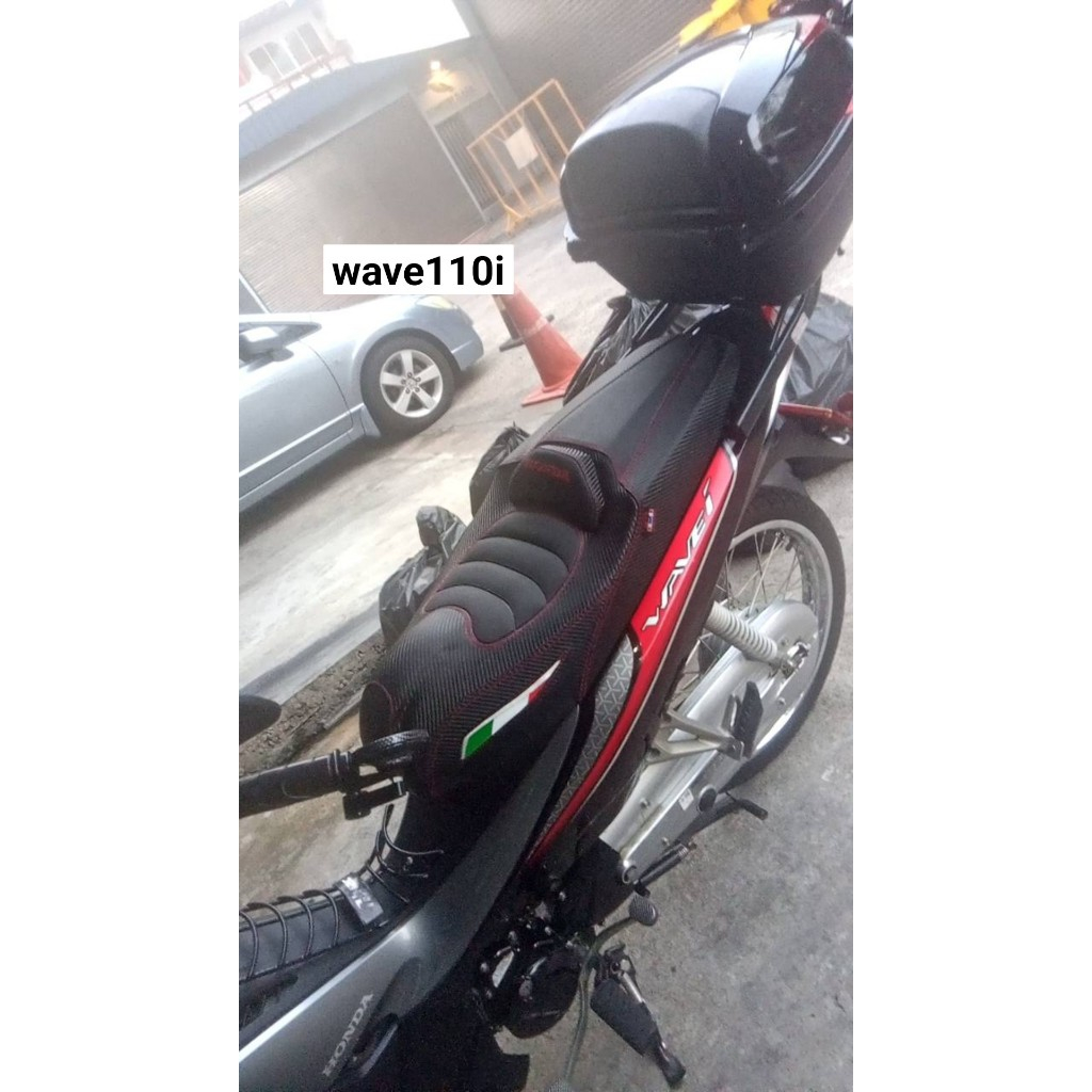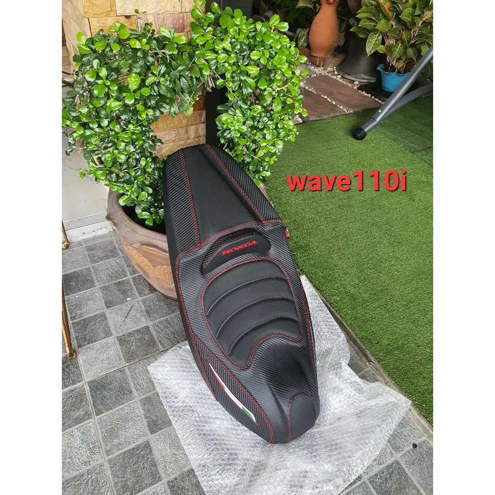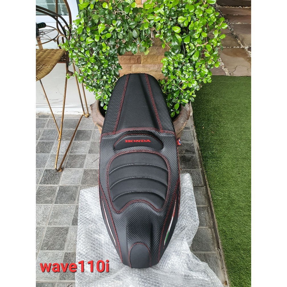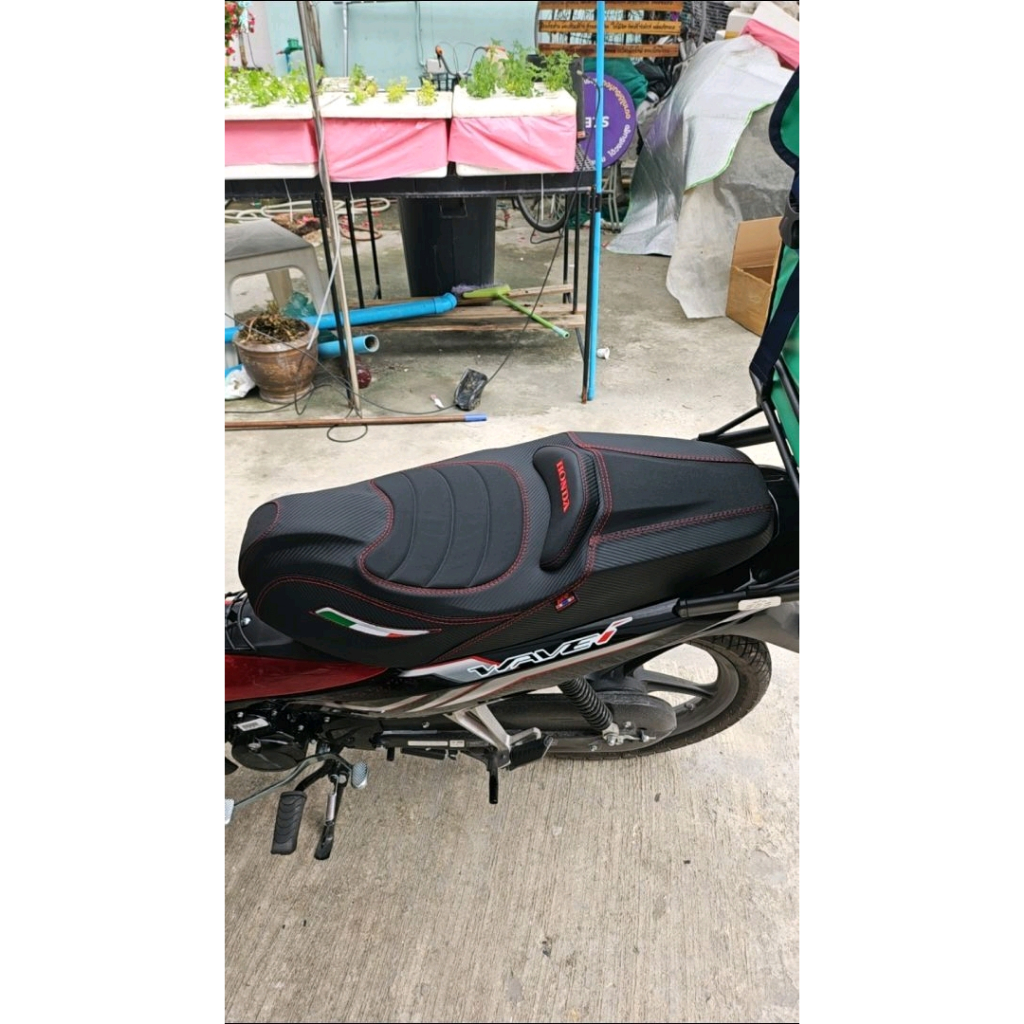 เบาะ WAVE 110 I NEW รุ่นปี 2019-2020 (หัวสลัก) เบาะมอเตอร์ไซค์ SUTER Seat Thailand ผ้าเรดเดอร์ด้ายเหลืองทอง