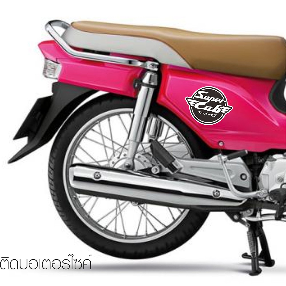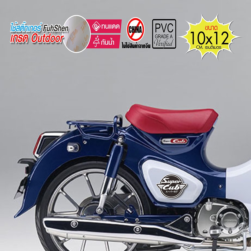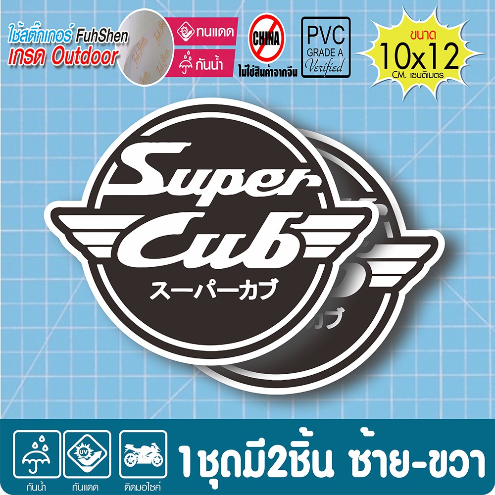 (1ชุด 2ชิ้น) สติ๊กเกอร์ Honda Super CUB สำหรับติดด้านข้าง หรือบังลม สีดำ มีขอบขาวตามแบบ (★ตัดคอม★) ขนาด10×12 ซ.ม.