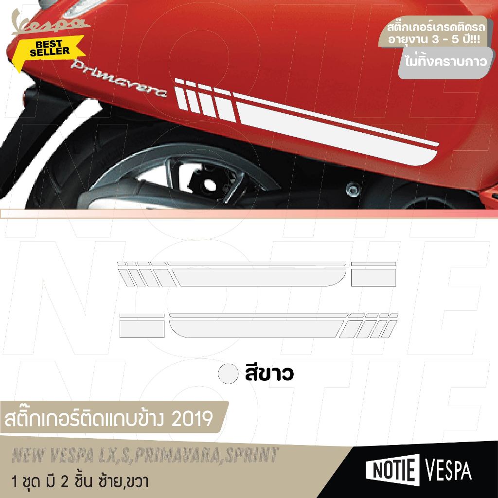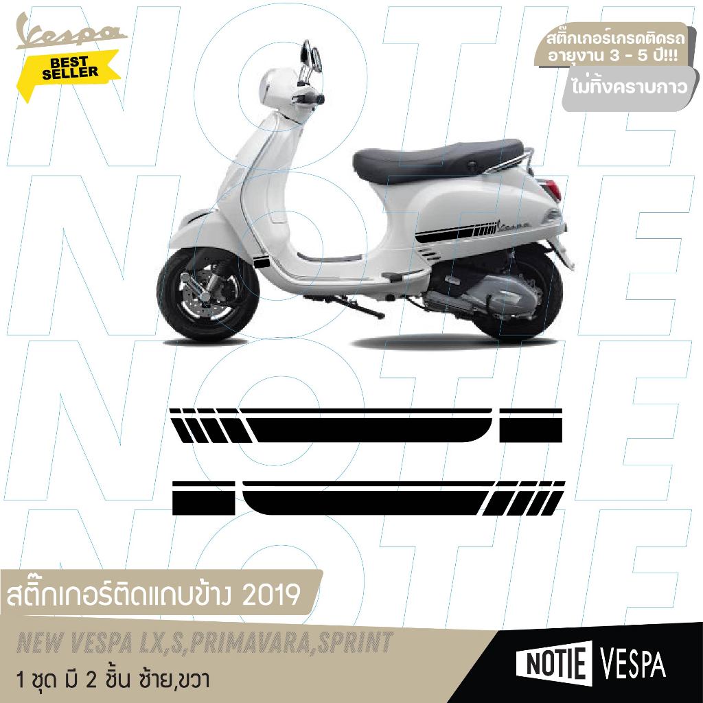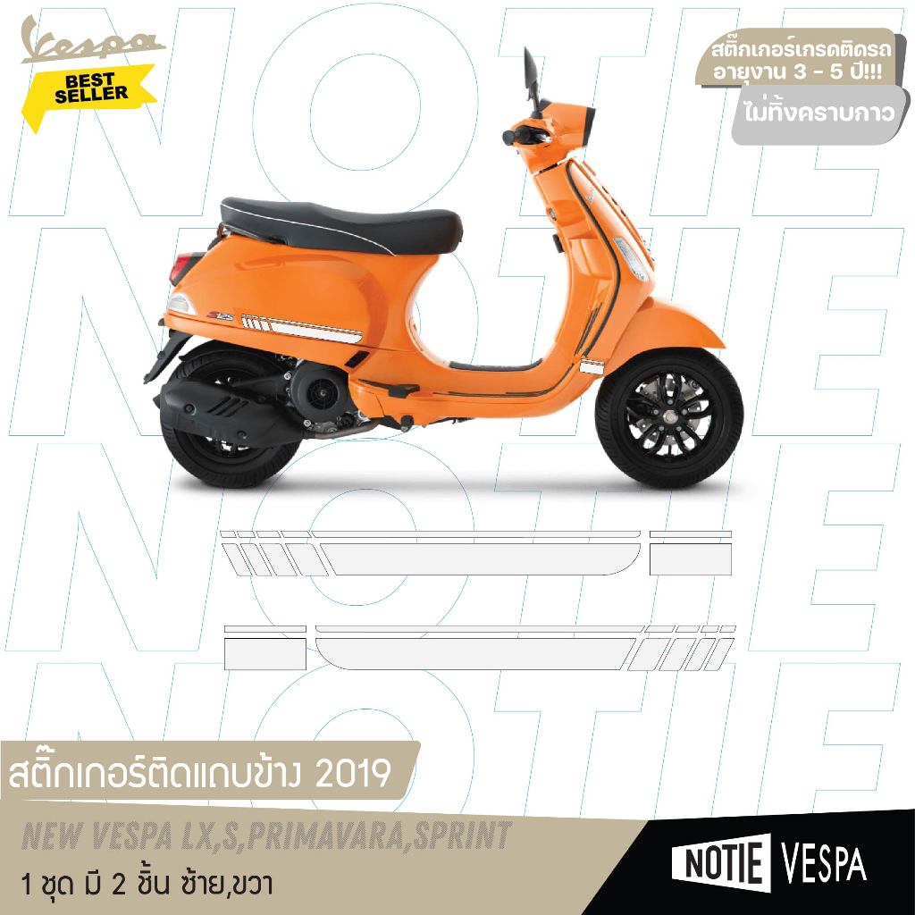 (ส่งฟรี) สติ๊กเกอร์ติดแถบข้างรุ่น 2019 มี 2 ชิ้น(ซ้ายขวา) New Vespa Sticker Notie vespa shop
