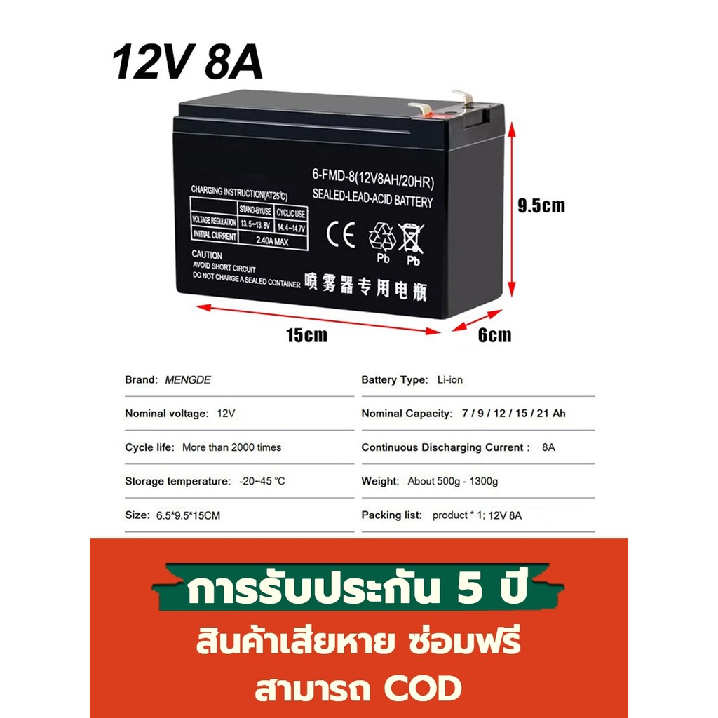 ?รับประกัน 1 ปี?แบตเตอรี่ 12v 4.5ah/7ah/8ah แบตเตอรี ใส่เครื่องพ่นยา UPS ไฟฉุกเฉิน เครื่องมือเกษตร