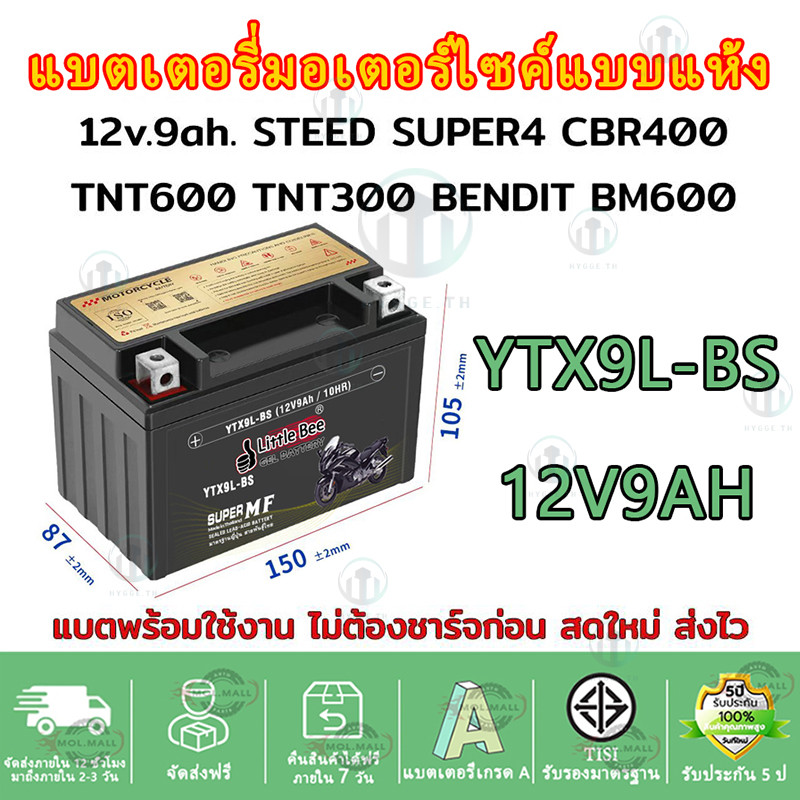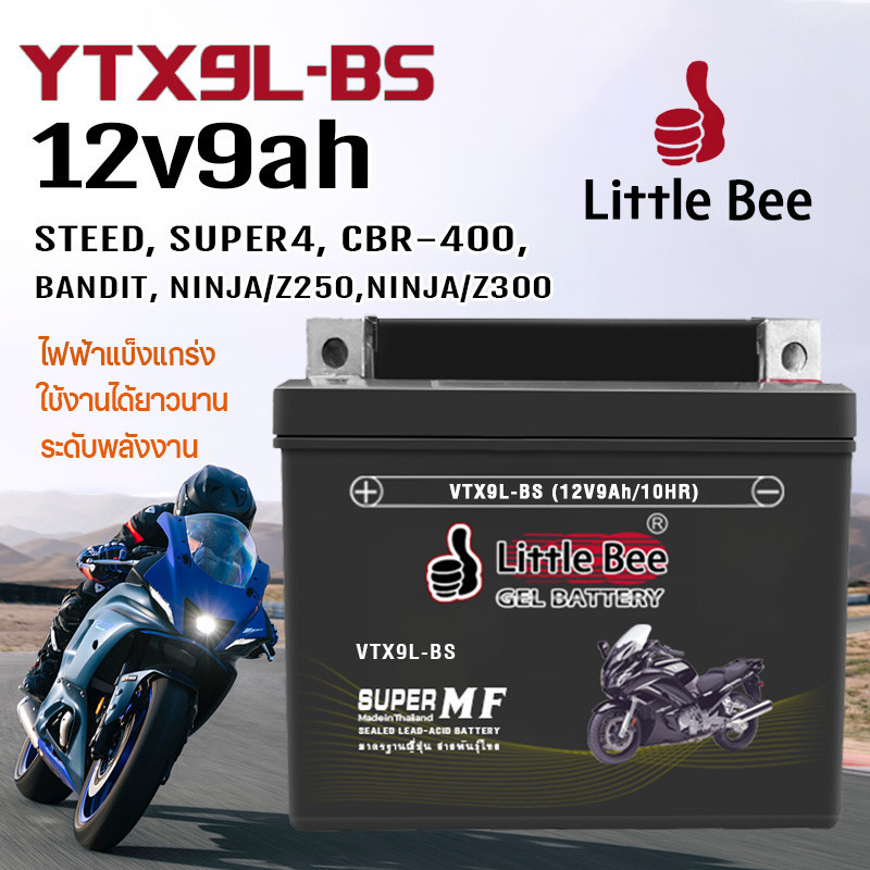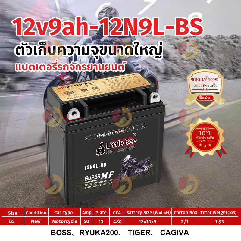 ?รับประกัน1ปี?แบตรถมอเตอร์ไซค์ แบตเตอรี่ รุ่น 12N9L-BS (12V 9AH) แบบแห้ง (สำหรับรถจักรยานยนต์) -แบตแห้ง ห่อกันกระแทก