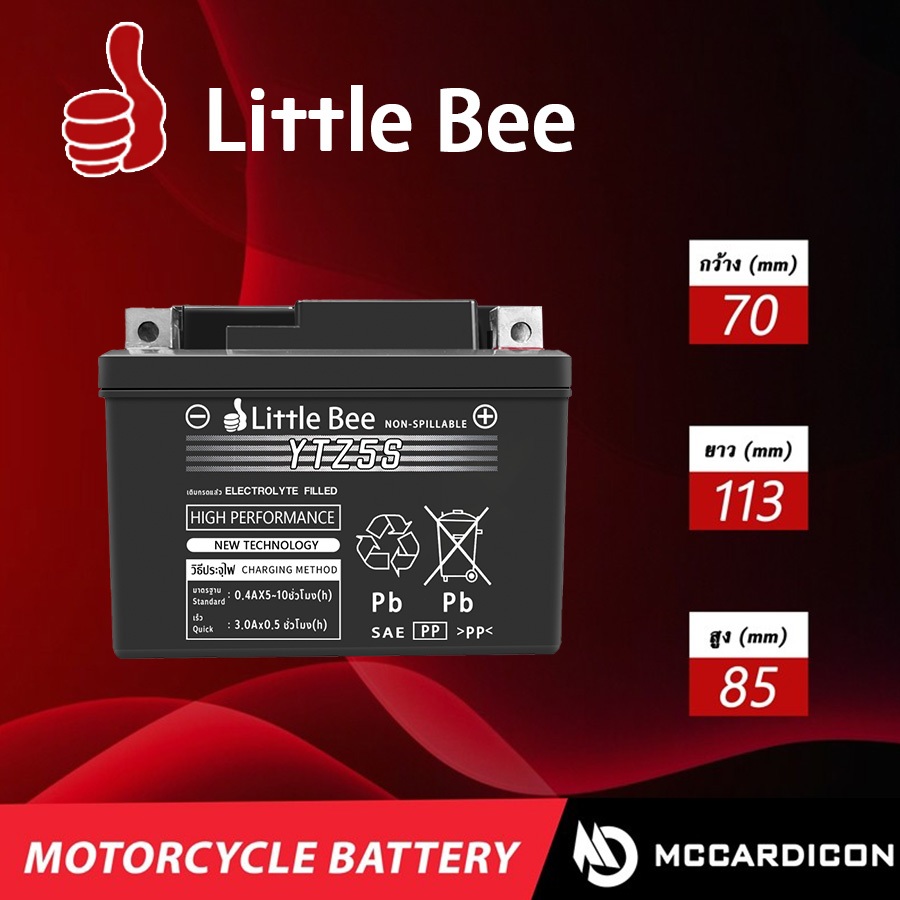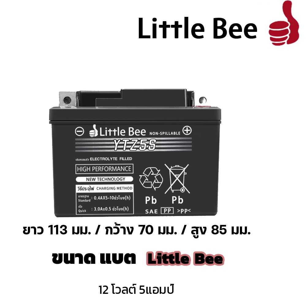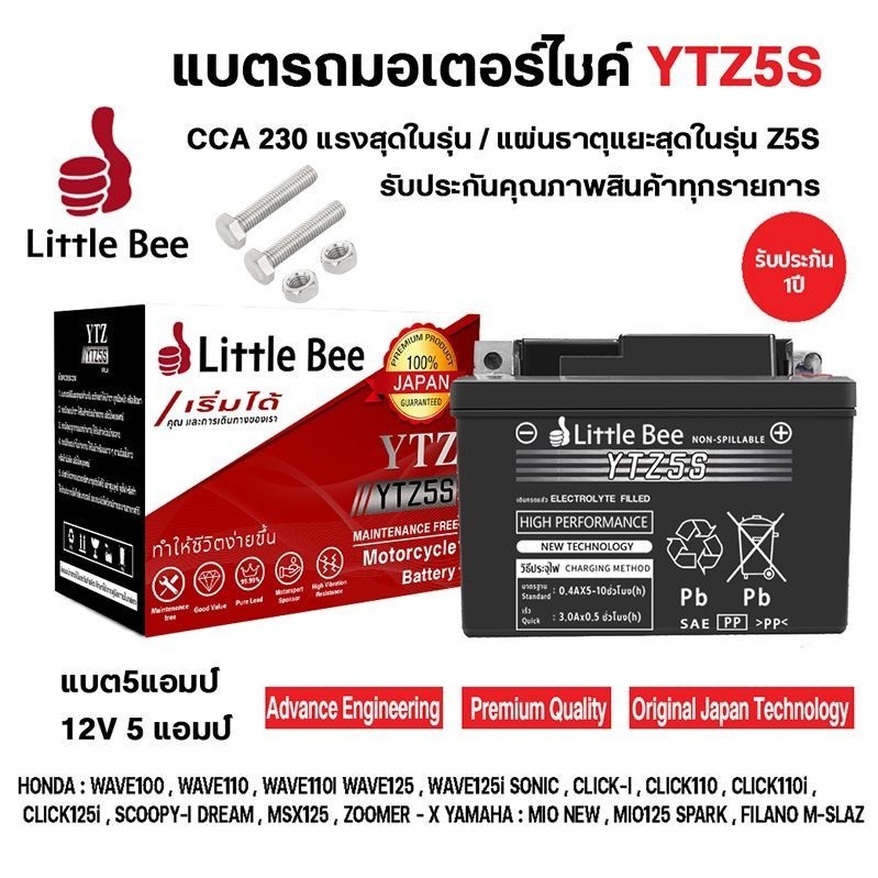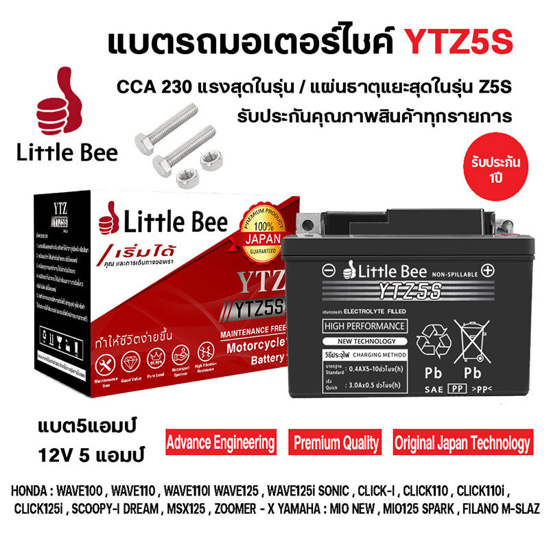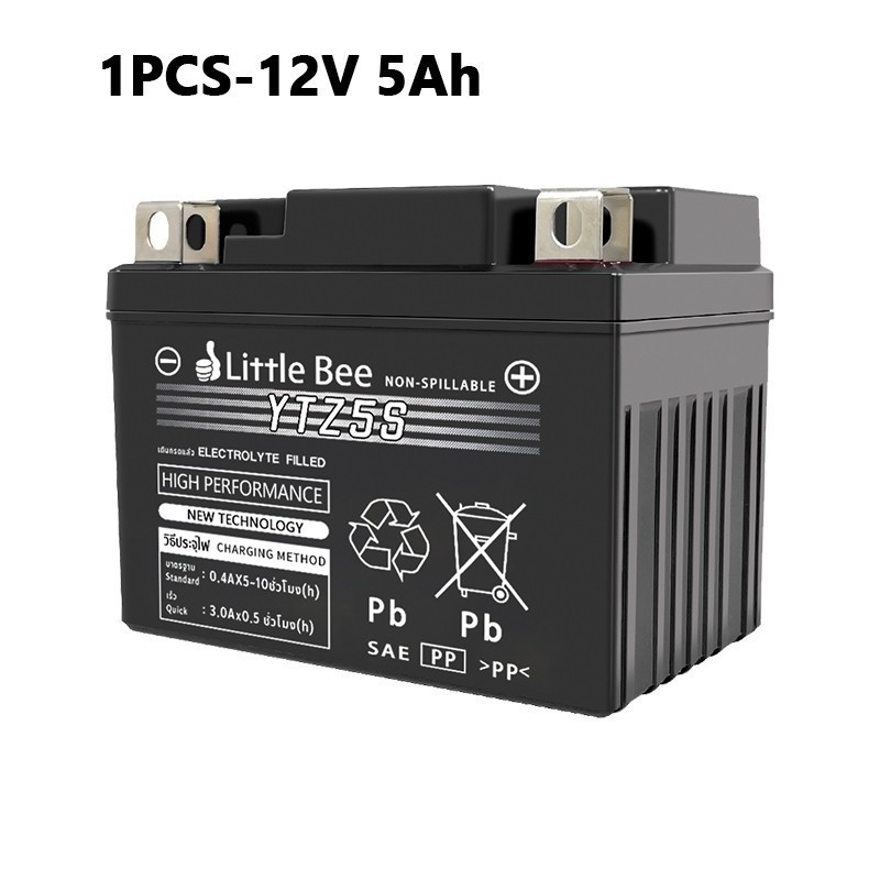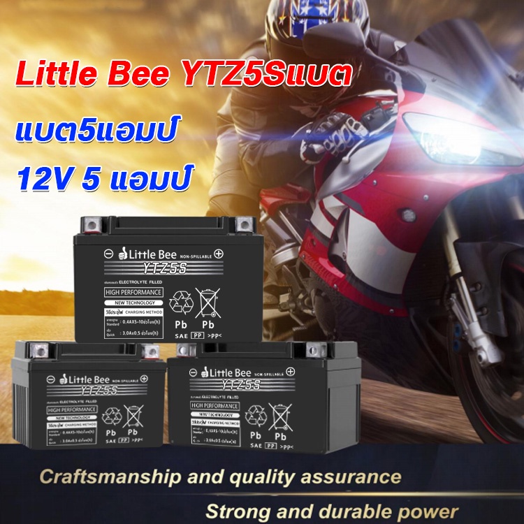 【รับประกัน 1ปี】แบตเตอรี่ 12V 5AH แบต เวฟ110i แบตรถมอเตอร์ไซค์ Little Bee YTZ5S แบตแห้ง ห่อกันกระแทก