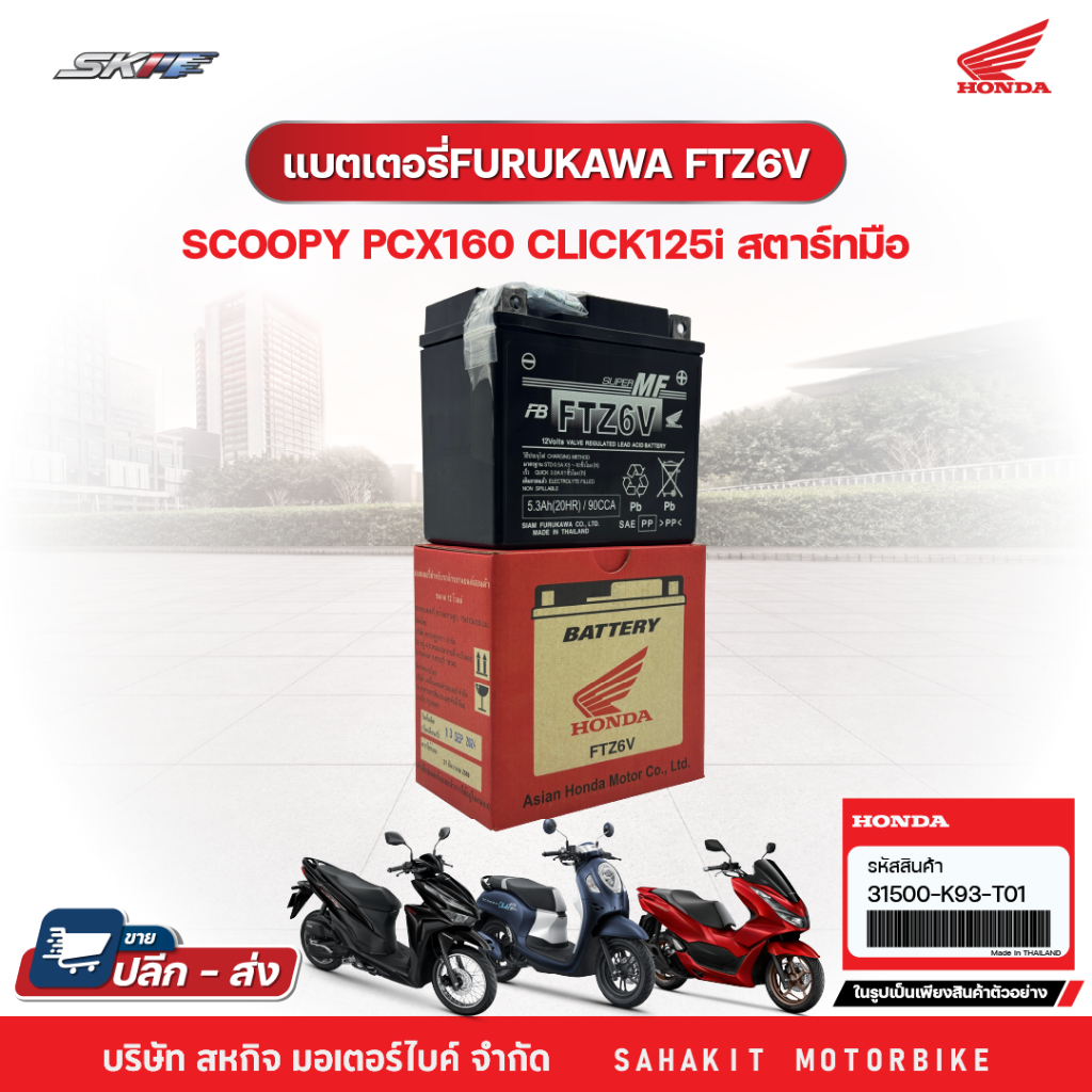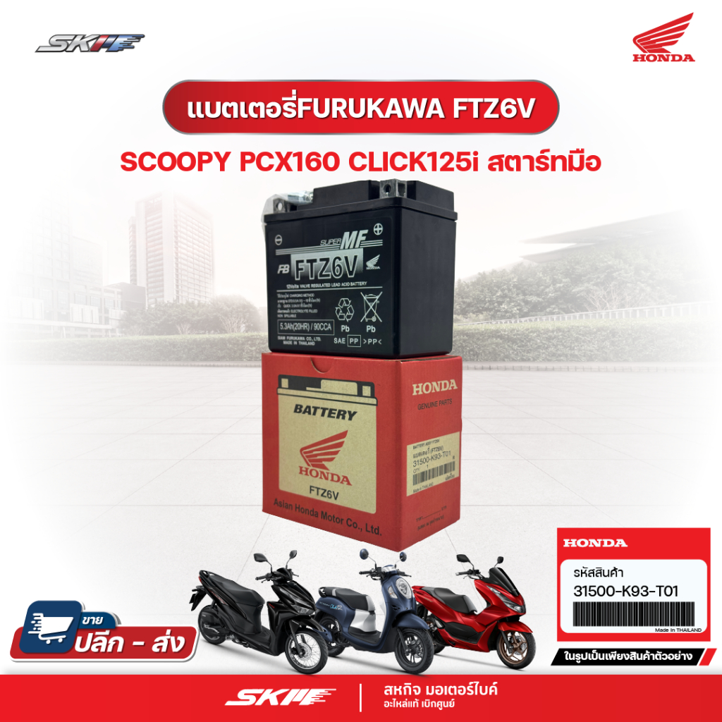 แบตเตอรี่ FURUKAWA FTZ6V สำหรับรุ่น SCOOPY,PCX160,Click 125 แท้ศูนย์ (31500-K93-T01)