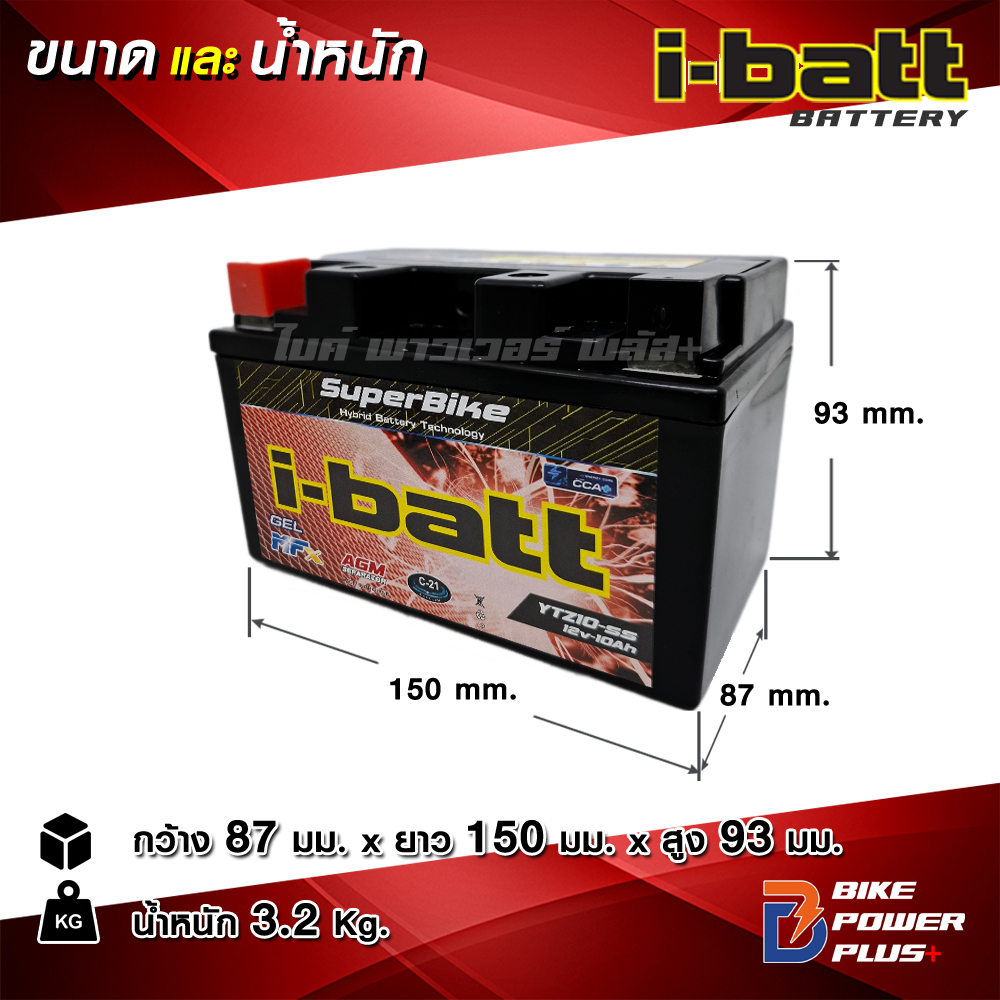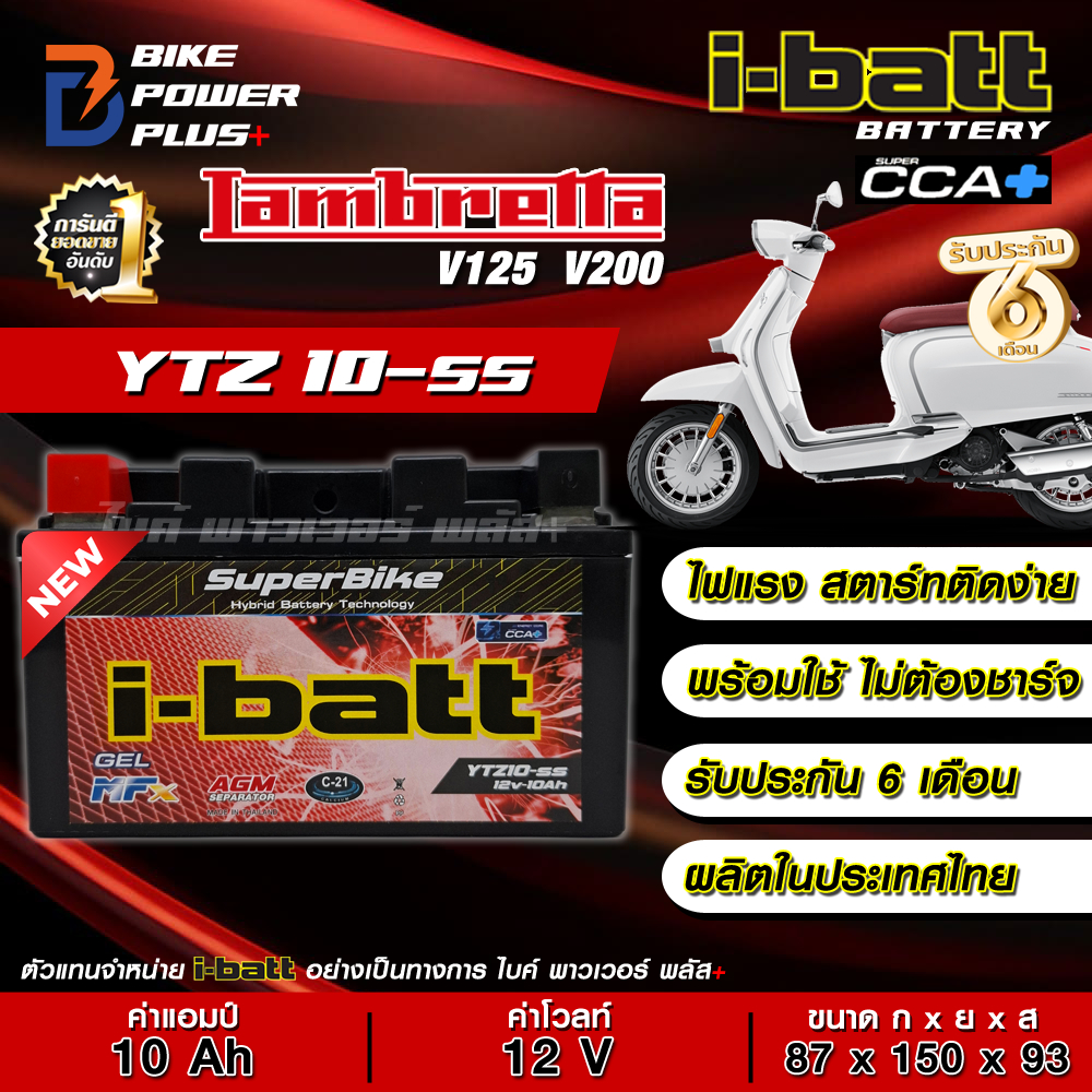 แบตเตอรี่ LAMBRETTA V150 / V200 ยี่ห้อ i-Batt รุ่น YTZ10-ss ขนาด 12V/10Ah **สินค้าผลิตใหม่เดือน 12/2025**