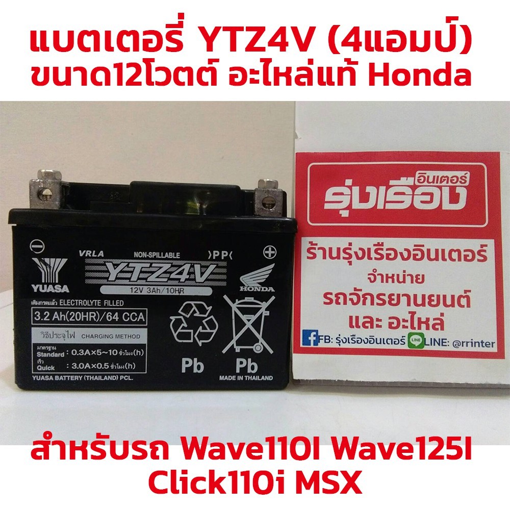 แบตเตอรี่ YTZ4V (4แอมป์) ขนาด12โวตต์ อะไหล่แท้ Honda รหัส 31500-KVB-T02