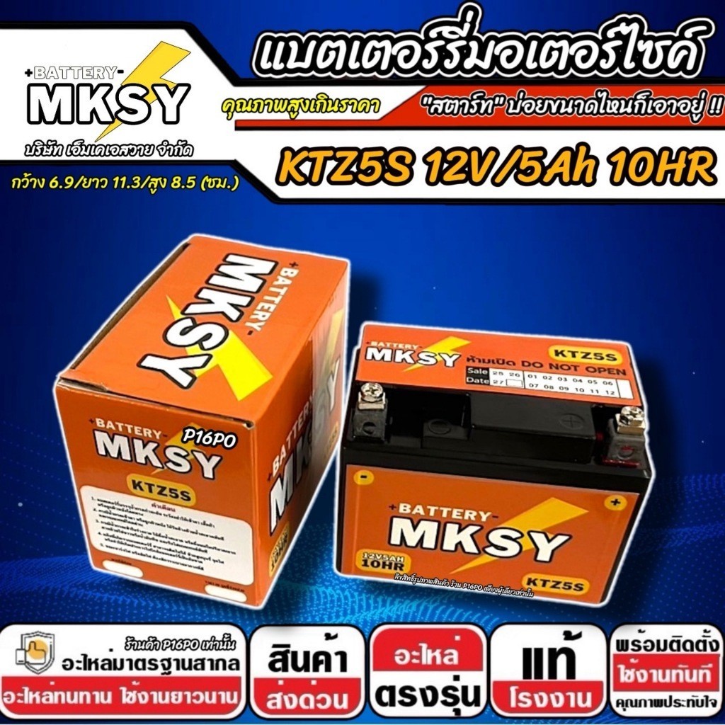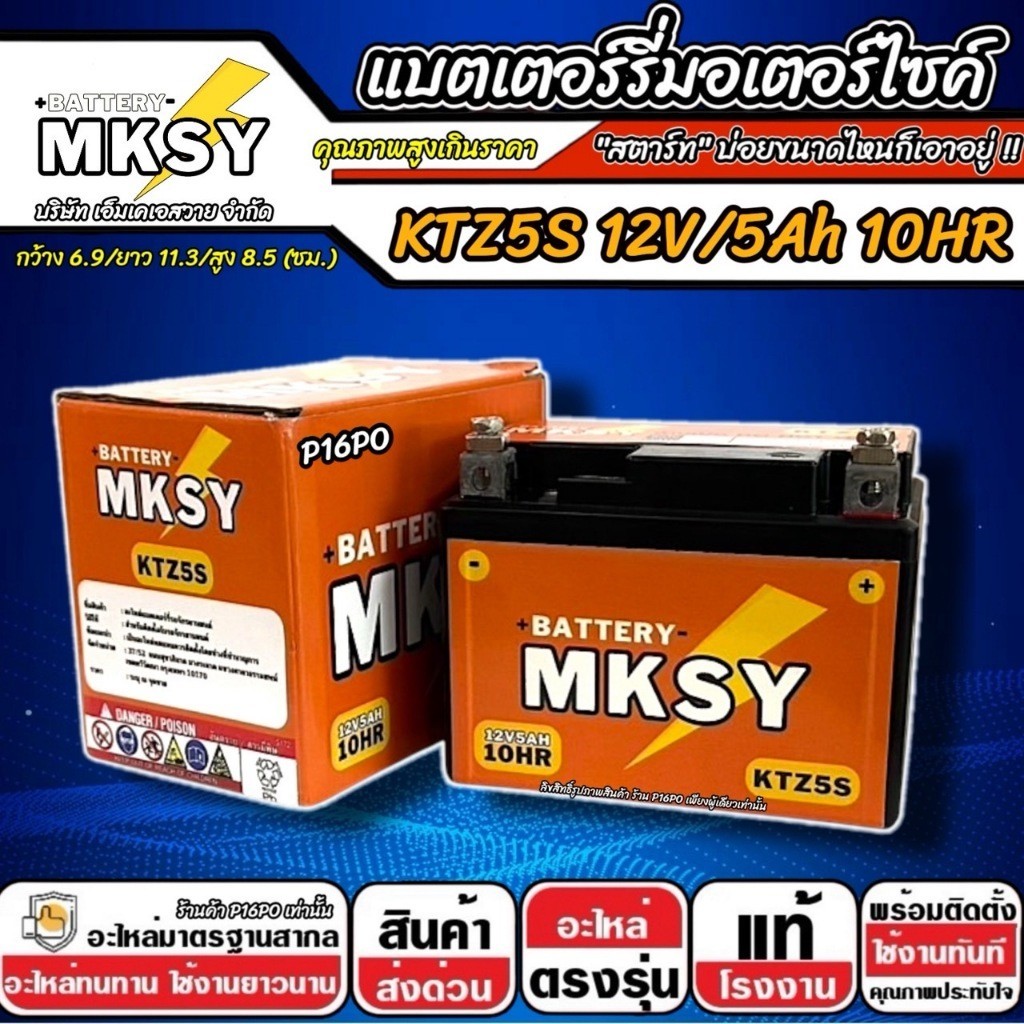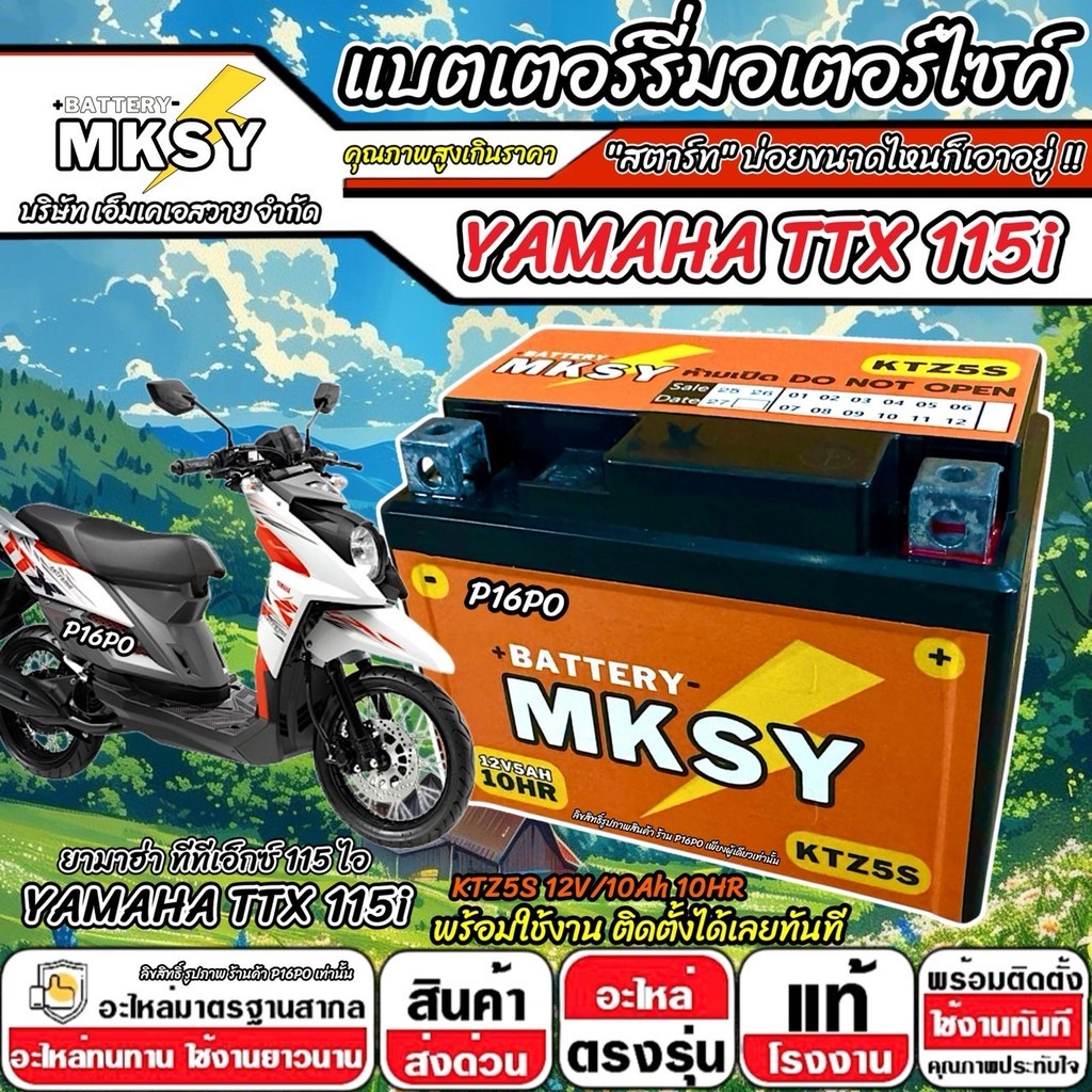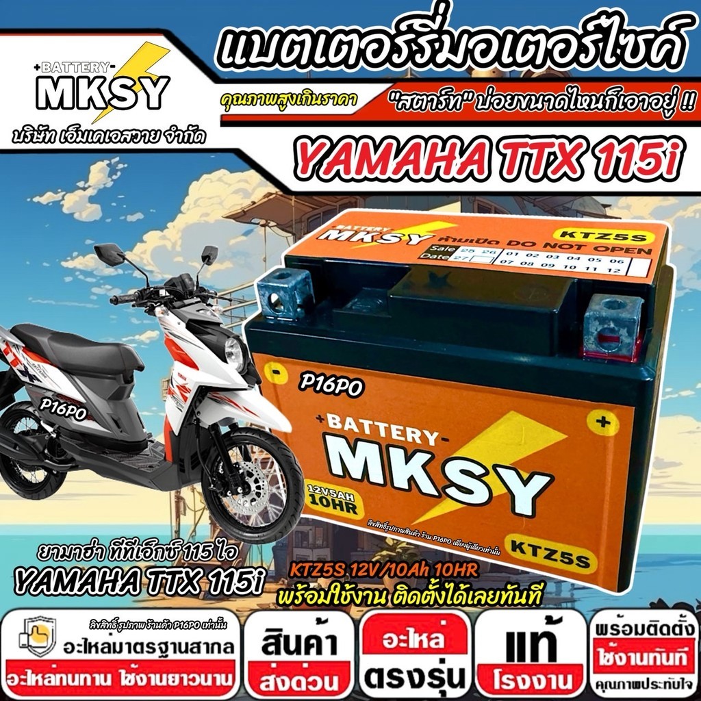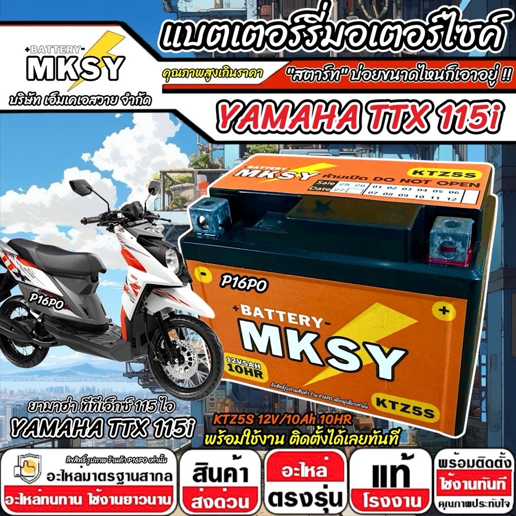 แบตเตอรี่ Yamaha TTX 115i ทุกรุ่นหัวฉีด ยามาฮ่า ทีทีเอ็กซ์ 115 ไอ ทุกรุ่น ttx115 MKSY 12V.5Ah/ KTZ5S คุณภาพสูง SP16
