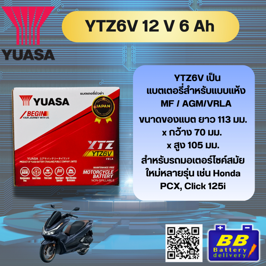 แบตเตอรี่ ลิเธียมฟอสเฟต Lifepo4 12V 6.5Ah ใช้กับรถ 100-400cc อายุยาวนานกว่าแบตทั่วไป (มีวงจรบาลานซ์)
