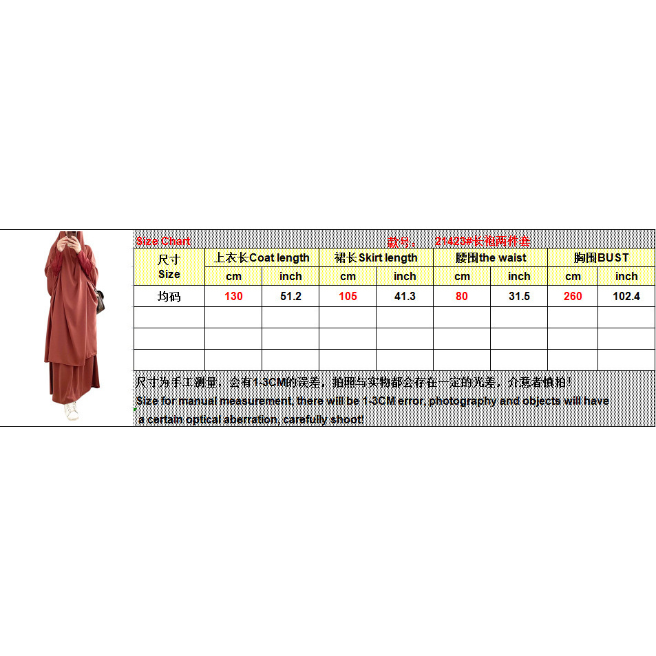 ชุดเดรสกระโปรงสําหรับสตรีชาวมุสลิมแขนยาว 2ชิ้น เดือนรอมฎอน ชุดสวดมนต์ Fashion Khimar Muslim Sets Prayer