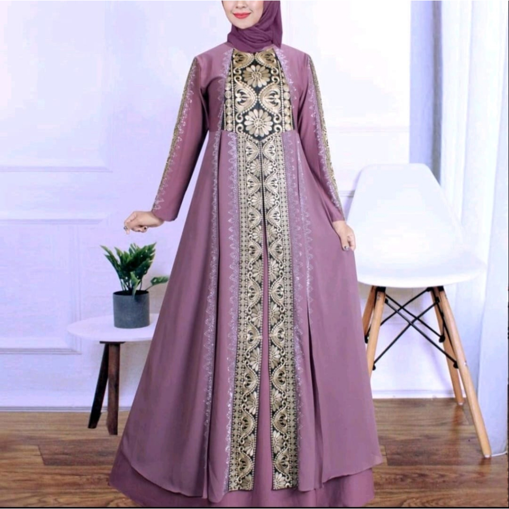 Gamis Abaya ตุรกี/ Abaya อาหรับ Jersey ผสม Ceruti เย็บปักถักร้อย Mote Swarosky ตุรกีรุ่น 1162 MATAHARI