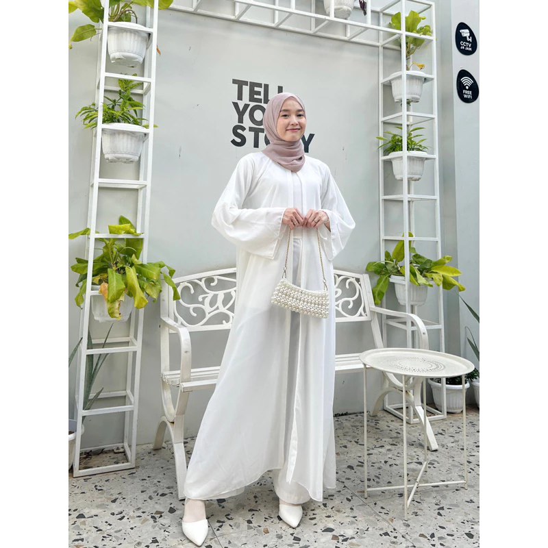 ชุดเดรส Abaya แบบเรียบ สีขาว สําหรับชาวมุสลิม