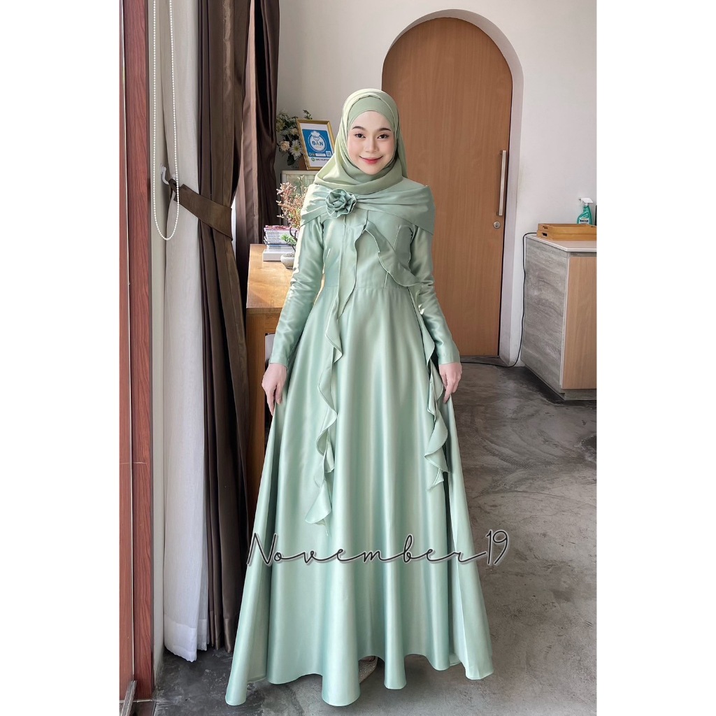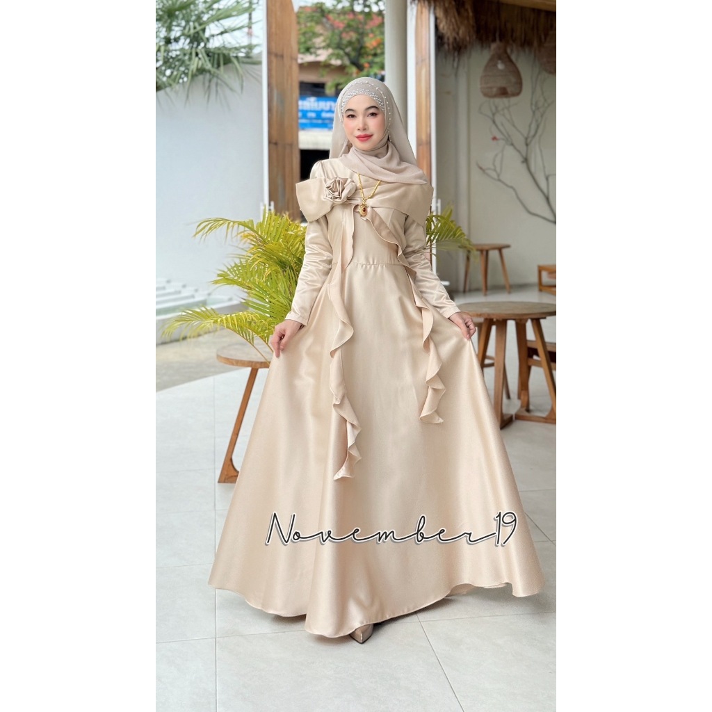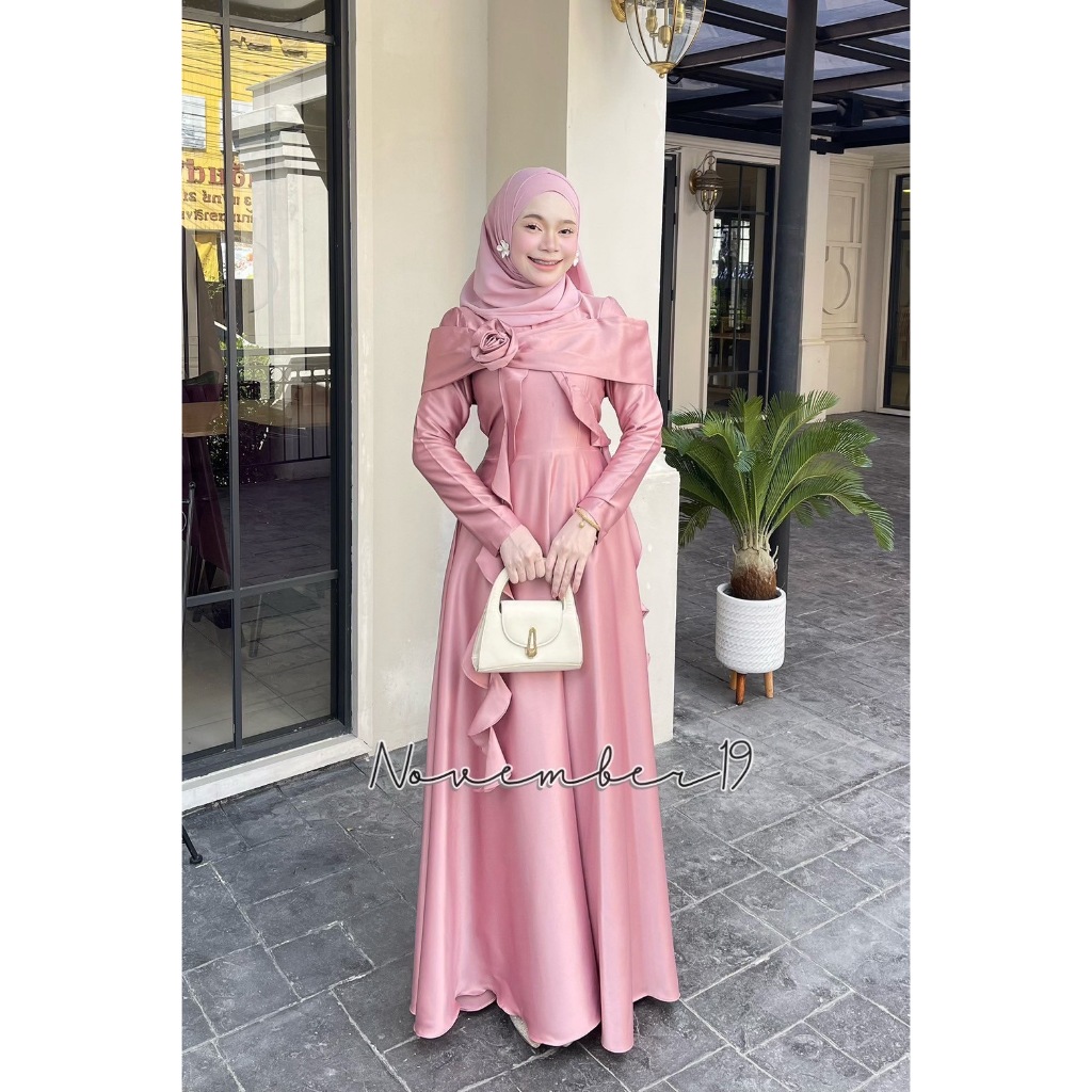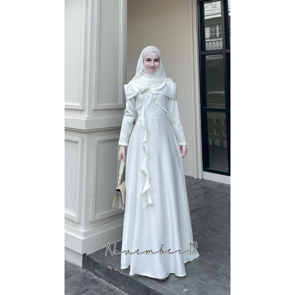 ชุดอิสลามสวยๆใส่ออกงาน ชุดเดรสมุสลิม รุ่นกุหลาบทรงบาน ชุดใส่รายอ ชุดใส่นิกะห์ ชุดเจ้าสาวอิสลาม