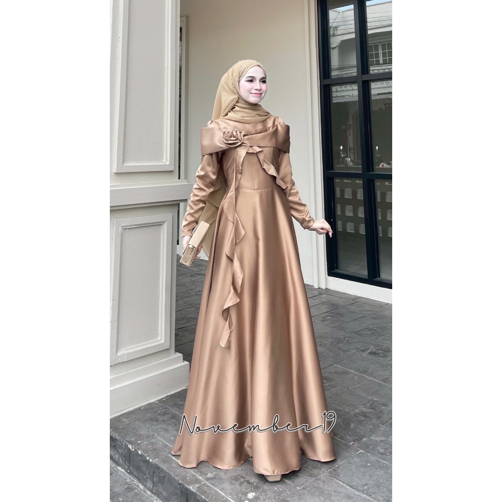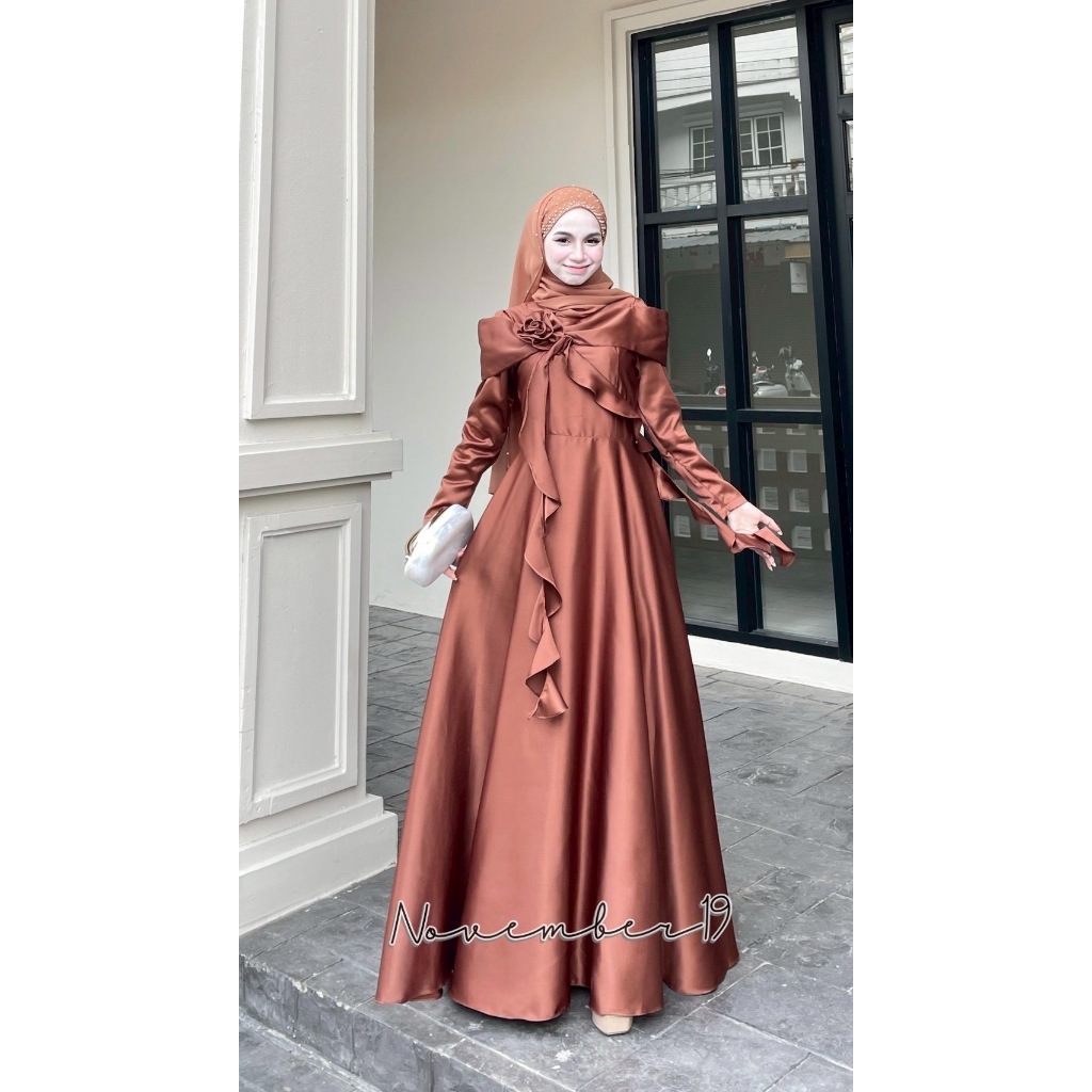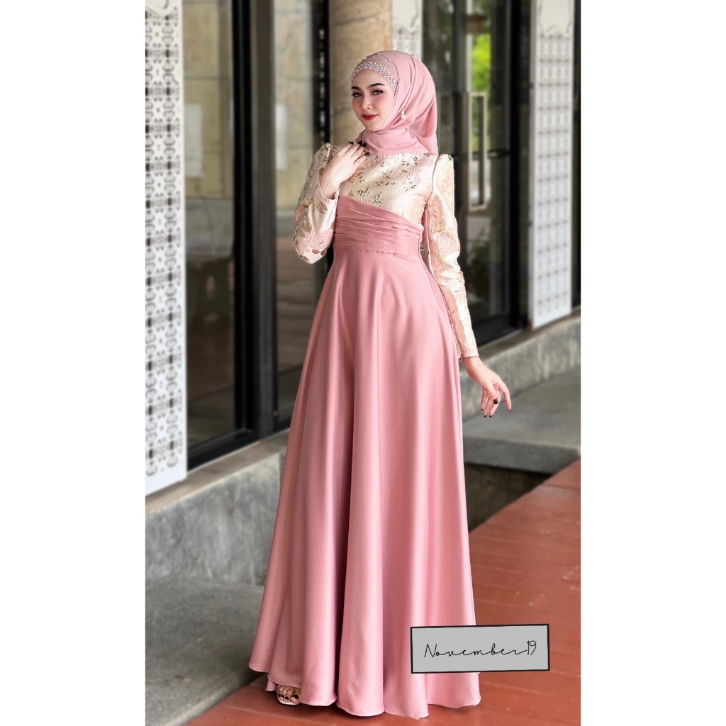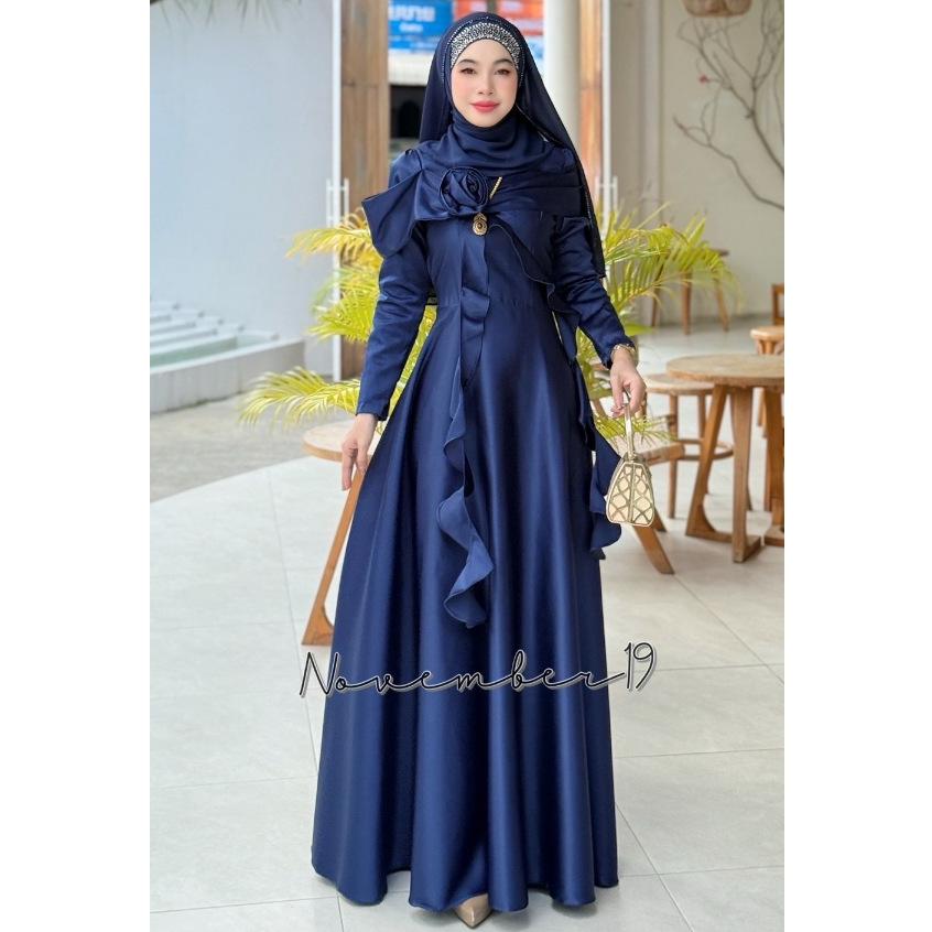 ชุดอิสลามสวยๆใส่ออกงาน ชุดเดรสมุสลิม รุ่นกุหลาบทรงบาน ชุดใส่รายอ ชุดใส่นิกะห์ ชุดเจ้าสาวอิสลาม