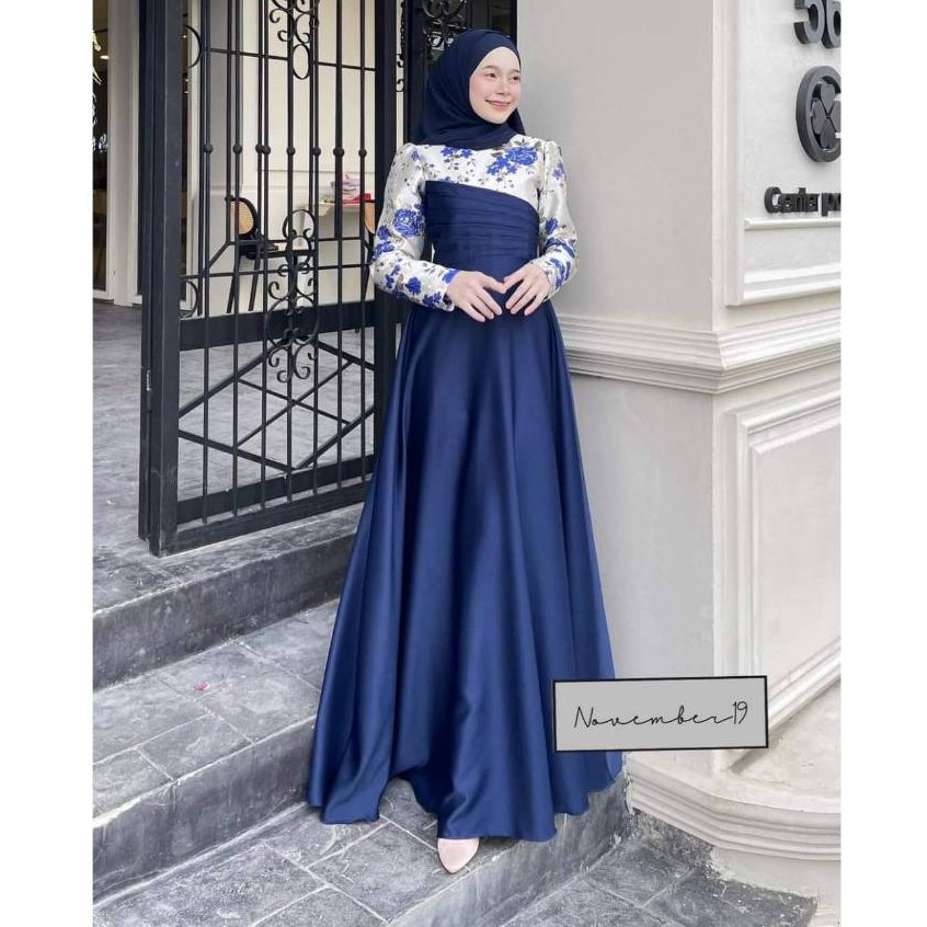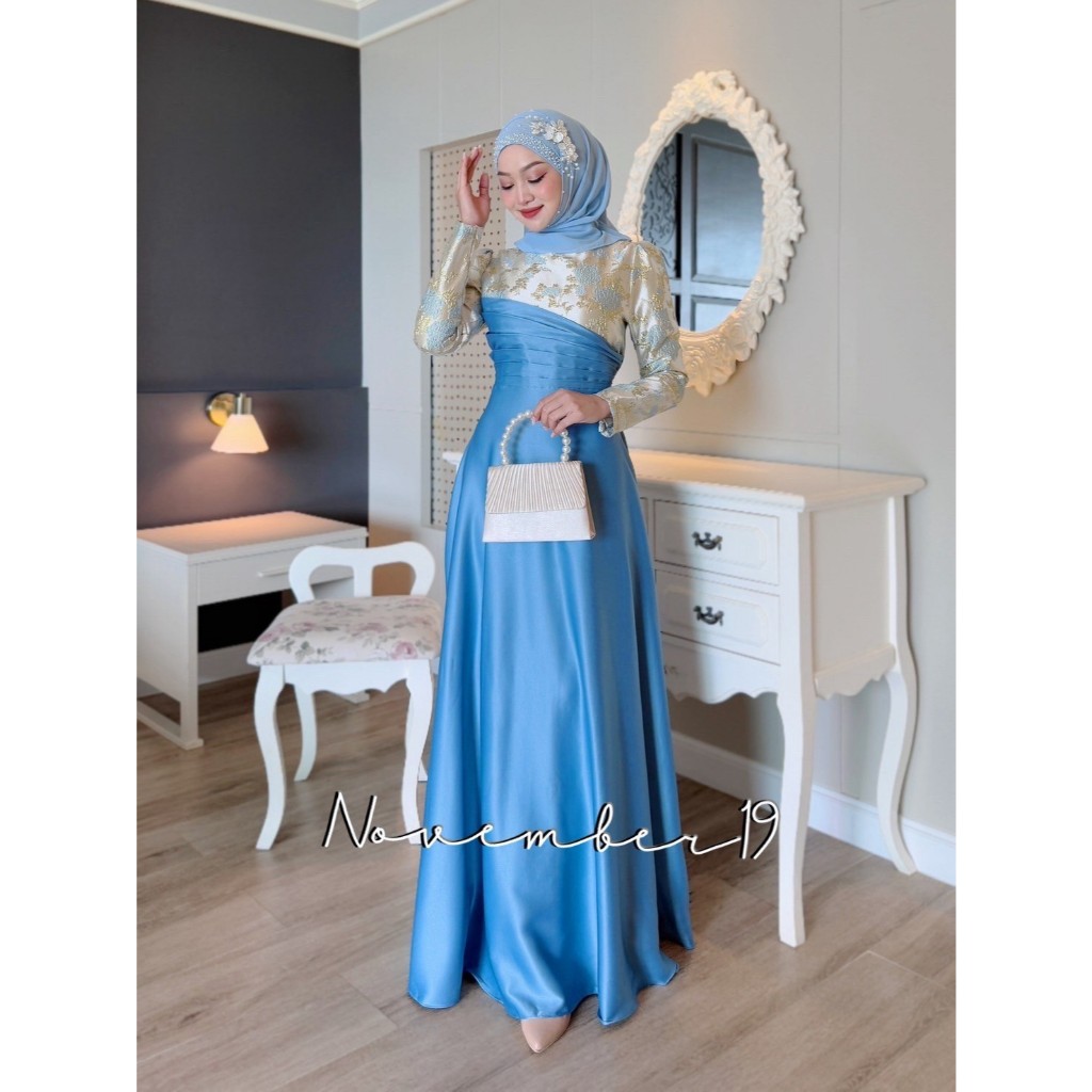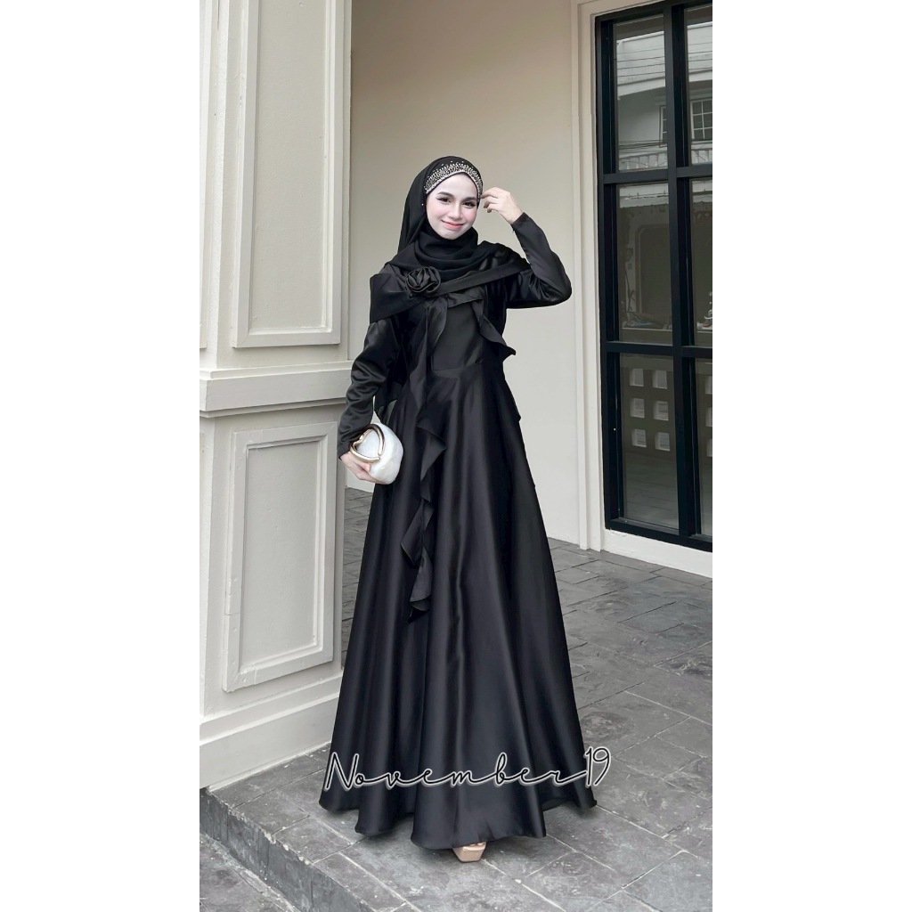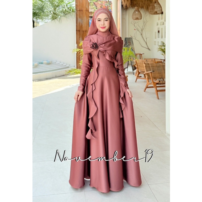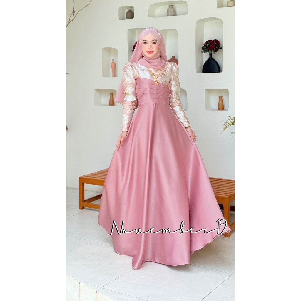 ชุดอิสลามสวยๆใส่ออกงาน ชุดเดรสมุสลิม รุ่นกุหลาบทรงบาน ชุดใส่รายอ ชุดใส่นิกะห์ ชุดเจ้าสาวอิสลาม