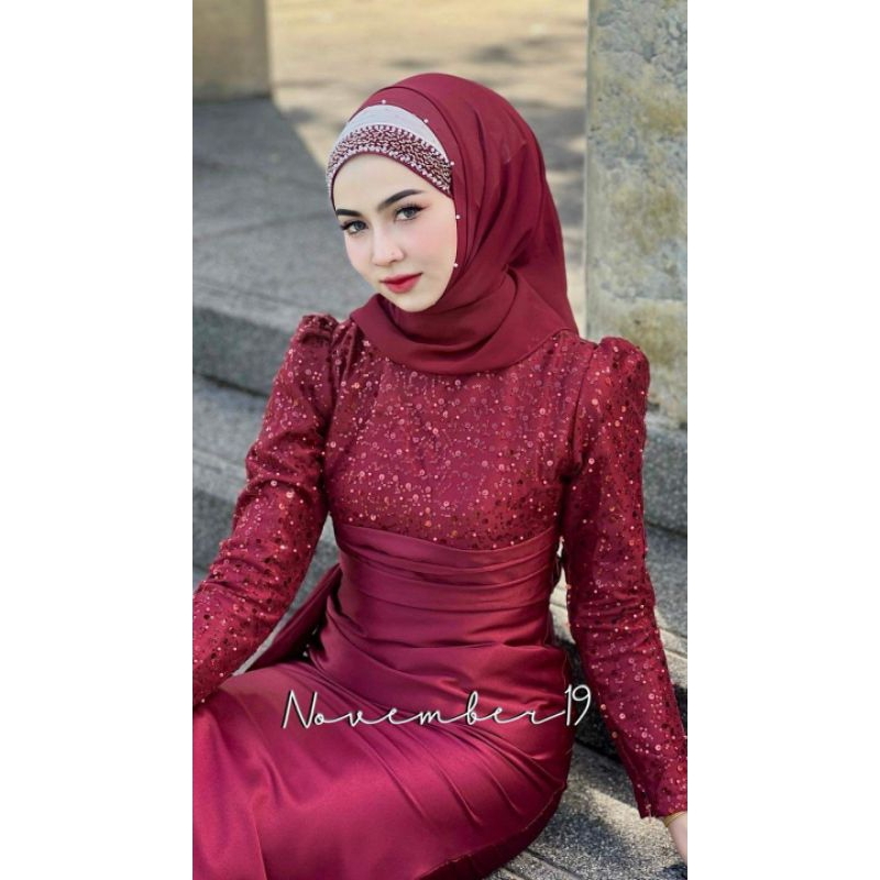 ?ส่งฟรี+โค้ดลดสุดคุ้ม✅✅มีพร้อมส่งครบสี?? ชุดเดรสอิสลามชุดเดรสมุสลิม เฮเลน กลิตเตอร์มุก?