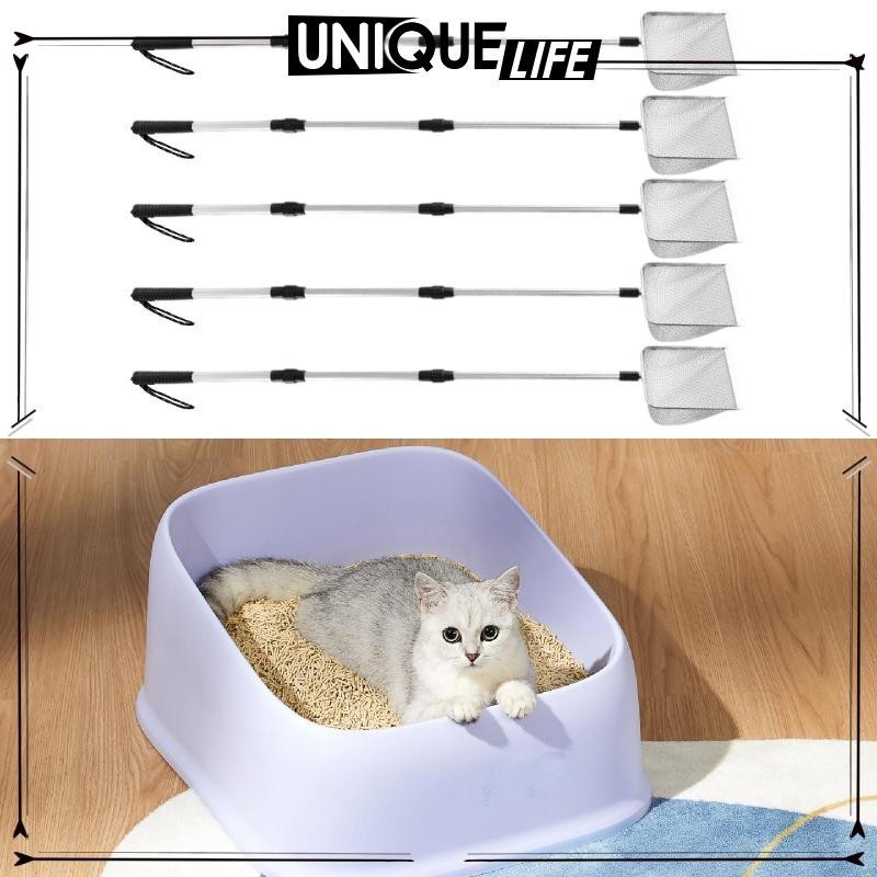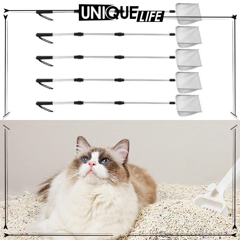 [Shiwaki4] ที่ตักทรายแมวแบบยืดได้, อลูมิเนียมอัลลอยด์ Sifter, ด้ามยาวไม่มีดัดกลับ Heavy Duty Cat Litter Scooper