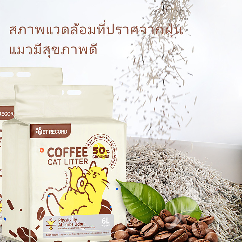 [6L] ทรายแมว ทรายแมวกาแฟ กากกาแฟและครายแมวเต้าหู้ ดับกลิ่นและยับยั้งแบคทีเรีย – จับตัวเร็ว – เท้ารู้สึกสบาย