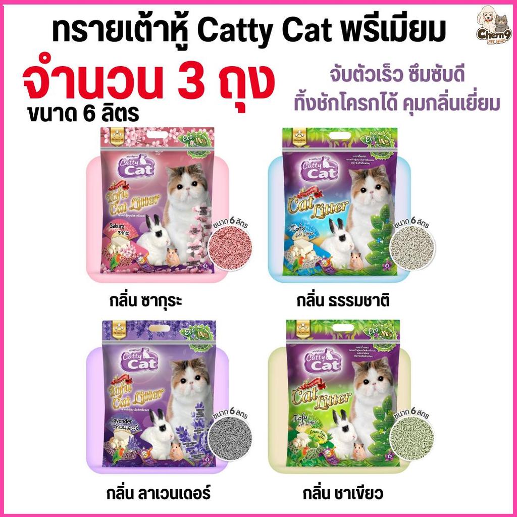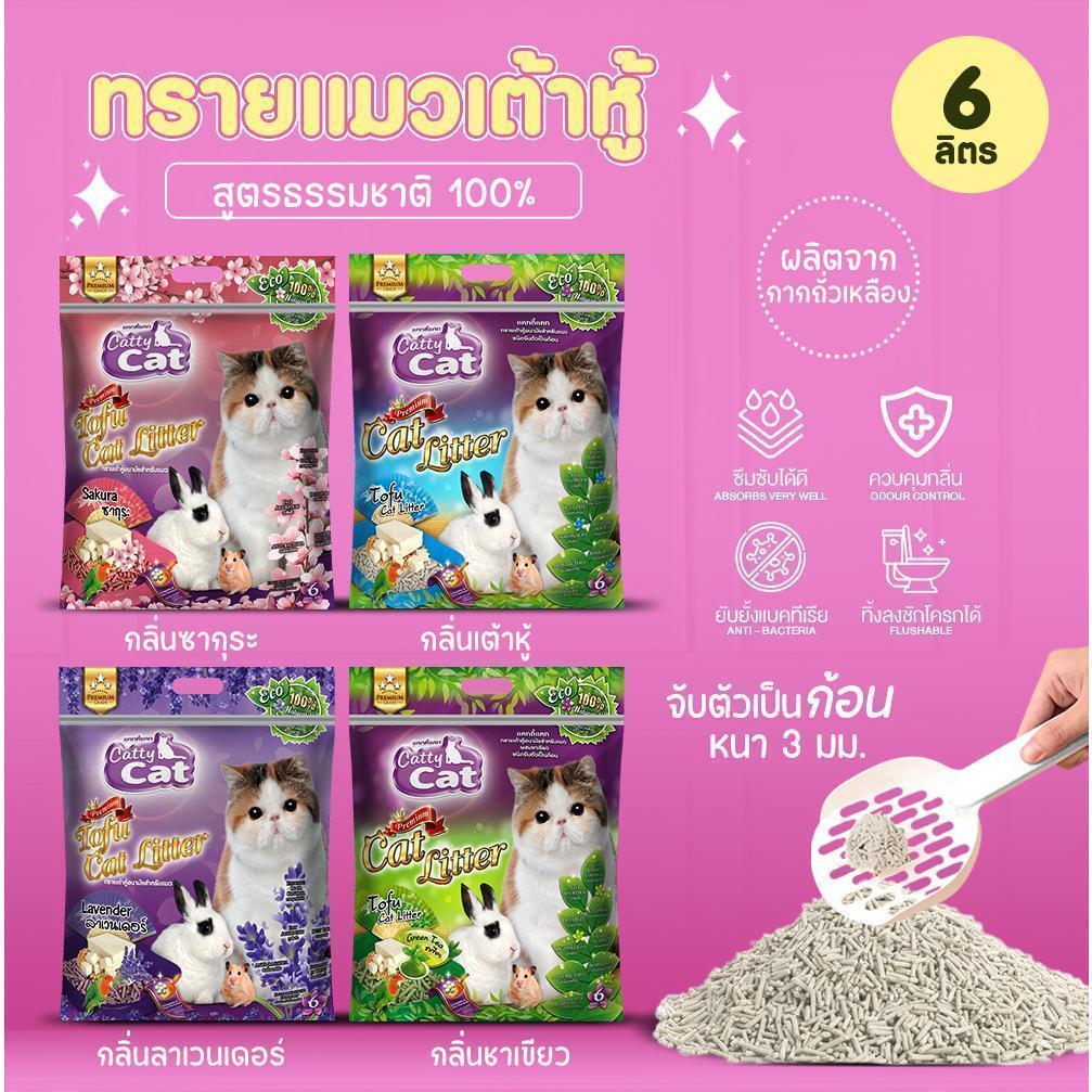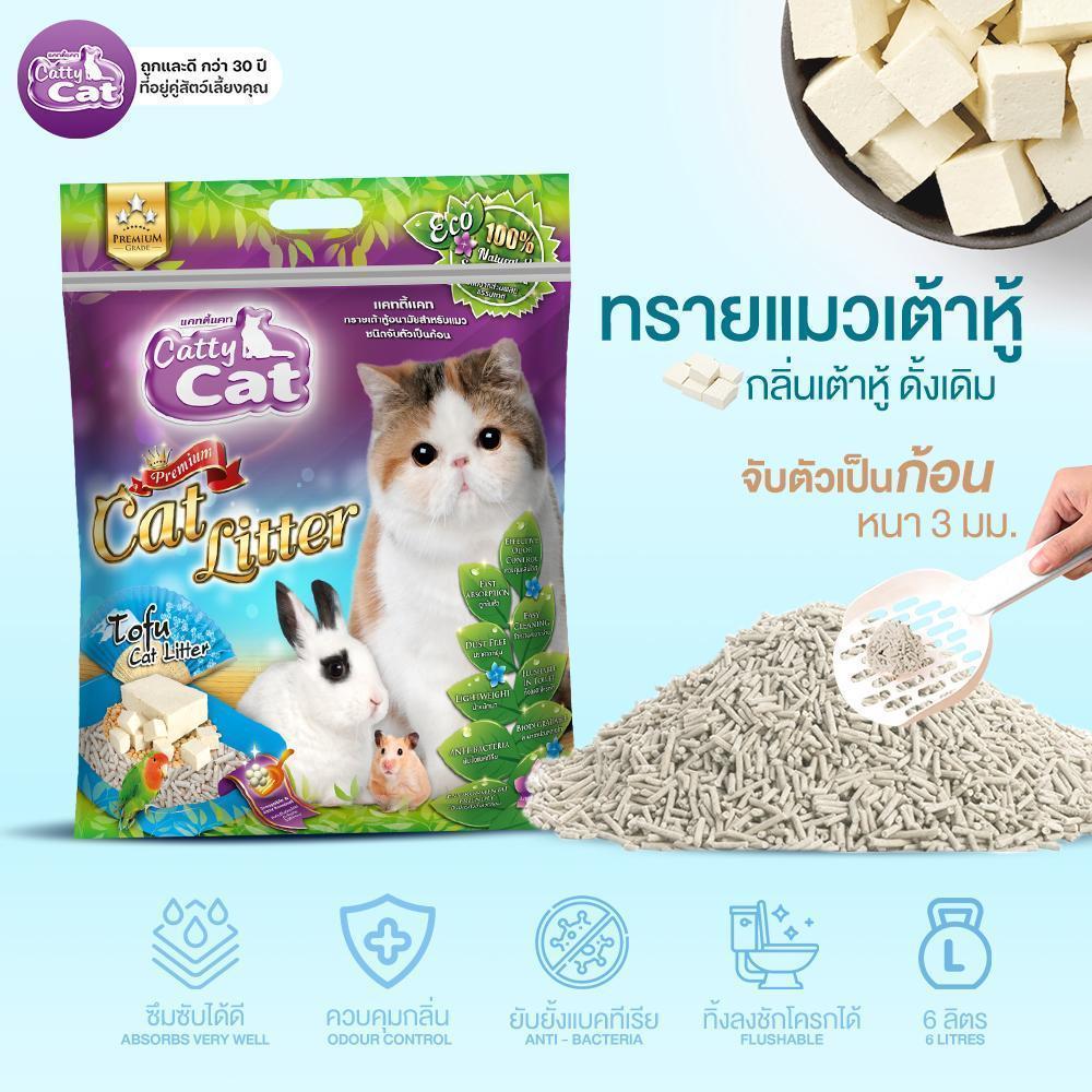 [[ขนาด 6 ลิตร >> จำนวน 3 ถุง]] ทรายแมวเต้าหู้พรีเมียม Catty Cat ทิ้งชักโครกได้ จับตัวเร็ว ปลอดภัย