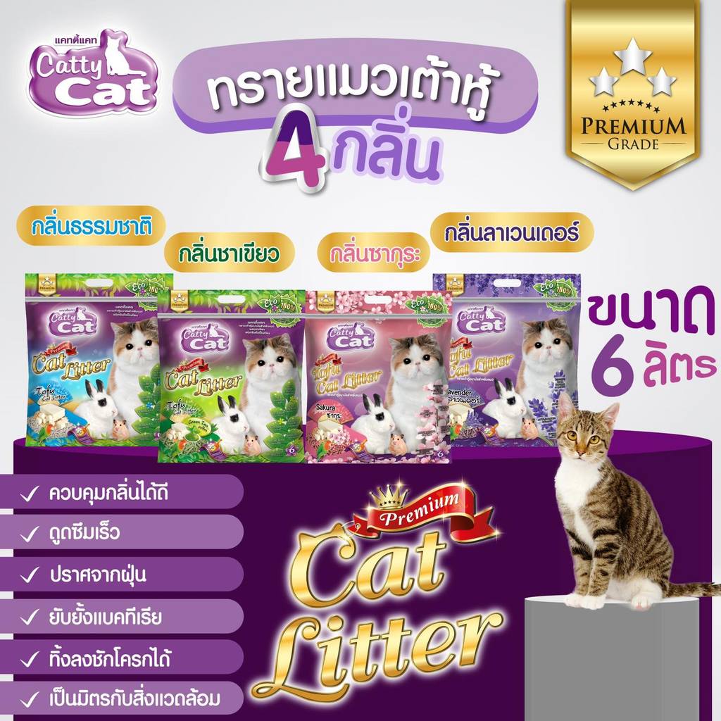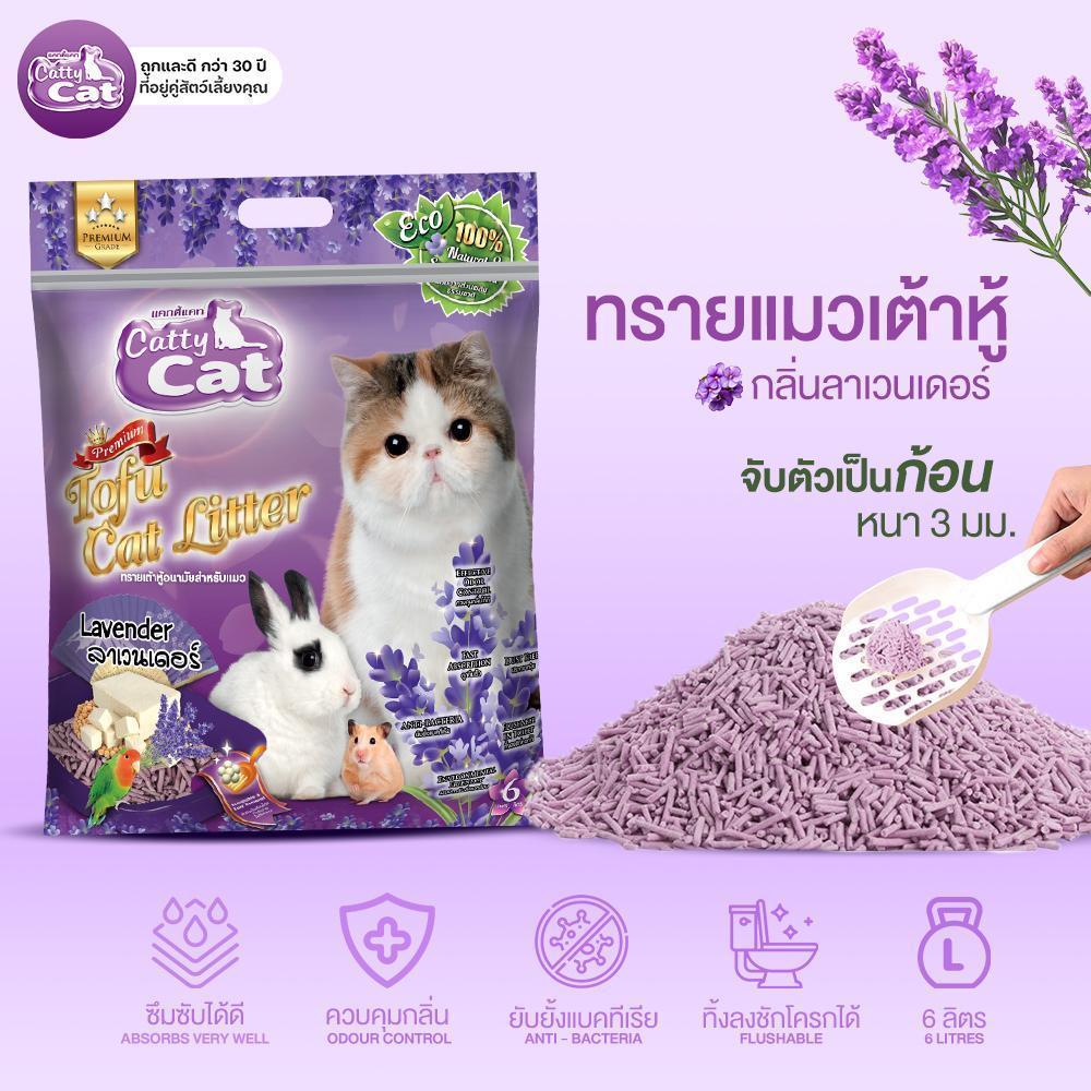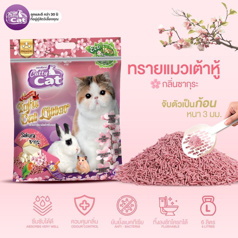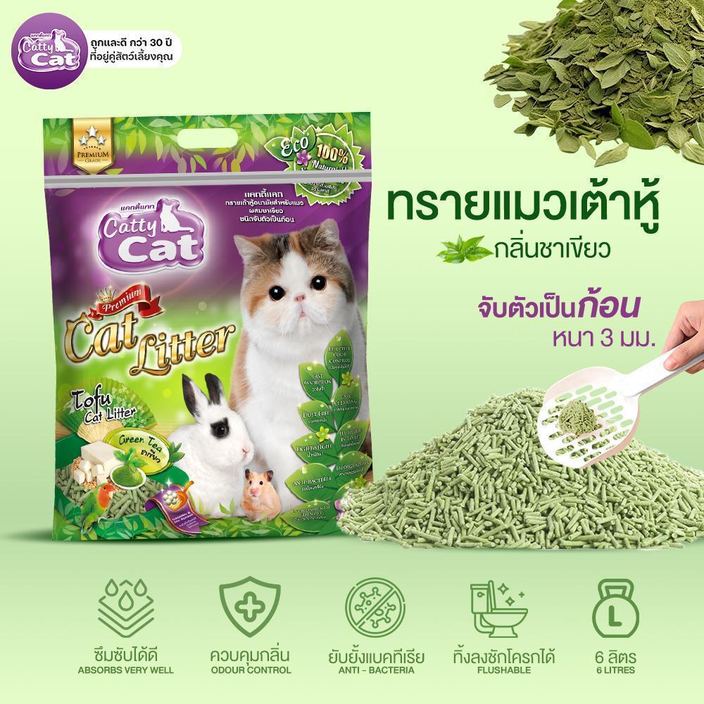 [[ขนาด 6 ลิตร >> จำนวน 3 ถุง]] ทรายแมวเต้าหู้พรีเมียม Catty Cat ทิ้งชักโครกได้ จับตัวเร็ว ปลอดภัย