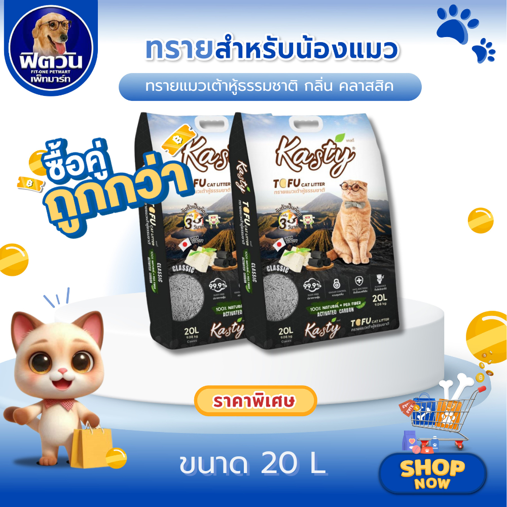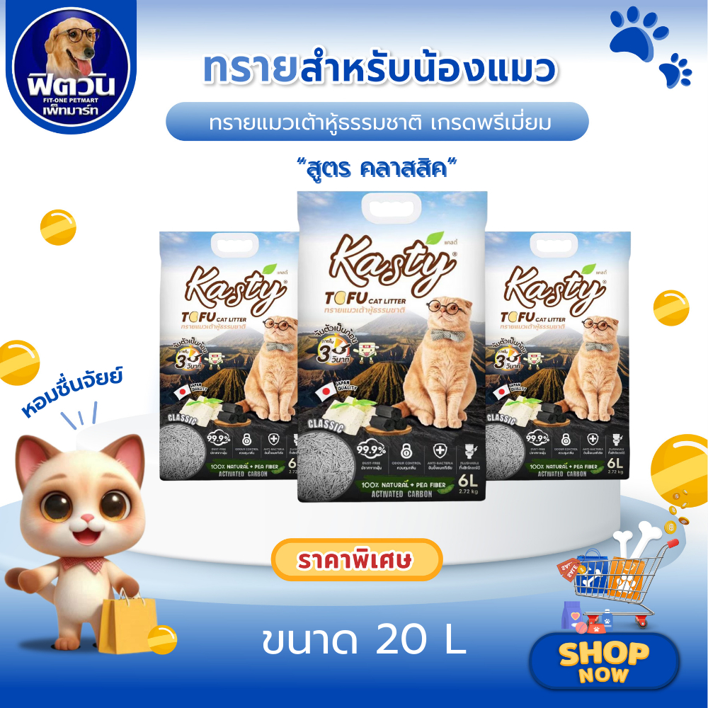 [X1ถุง] Kasty Tofu Litter 20L ทรายแมวเต้าหู้ธรรมชาติ สูตรคลาสสิค (20ลิตร){ทรายแมว}